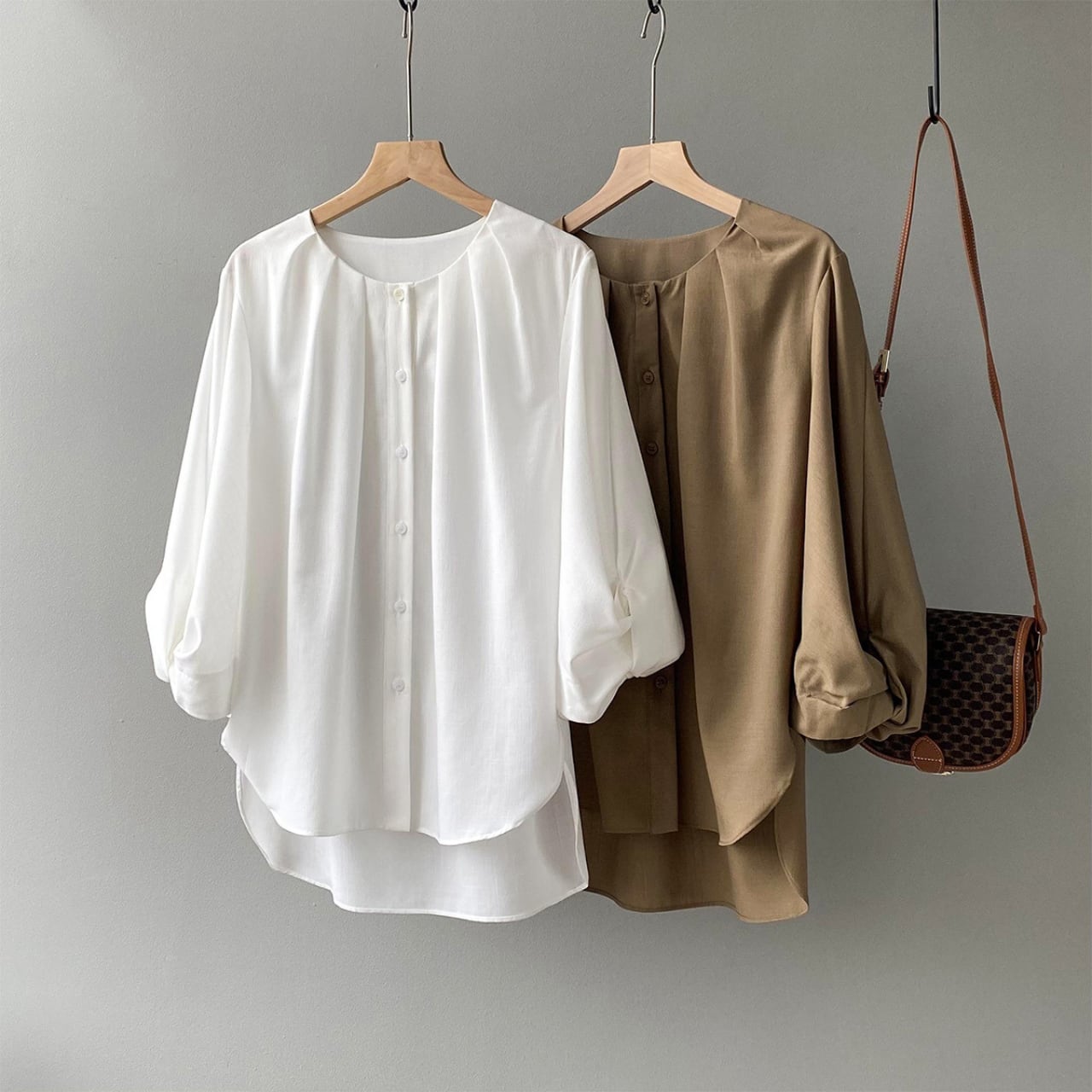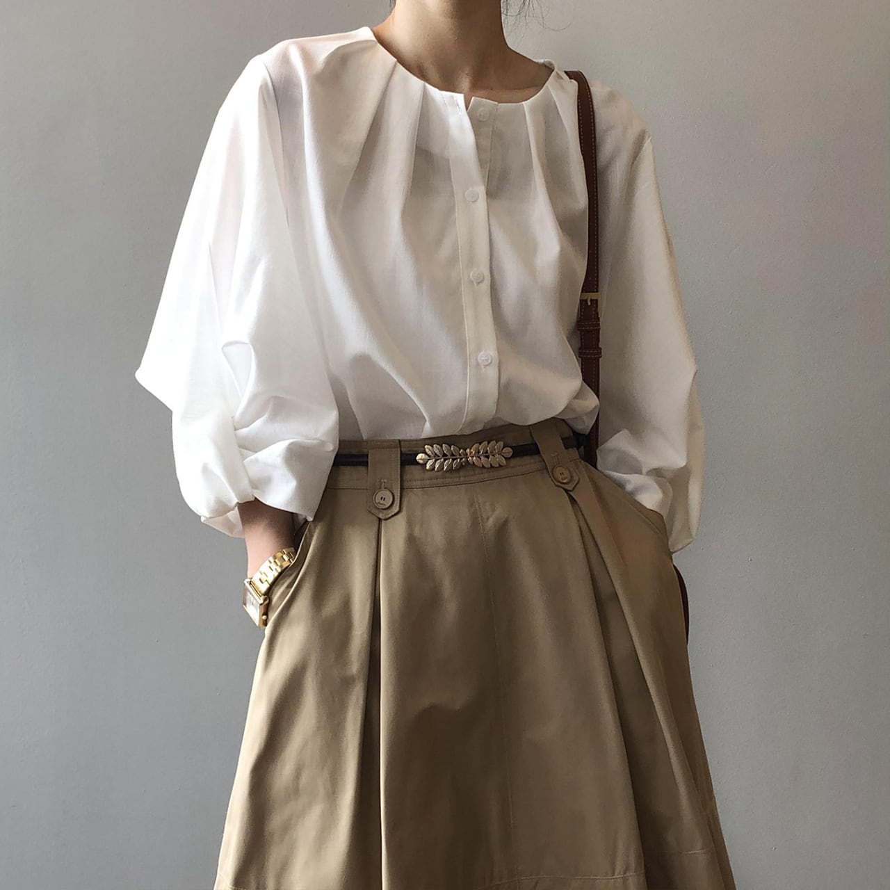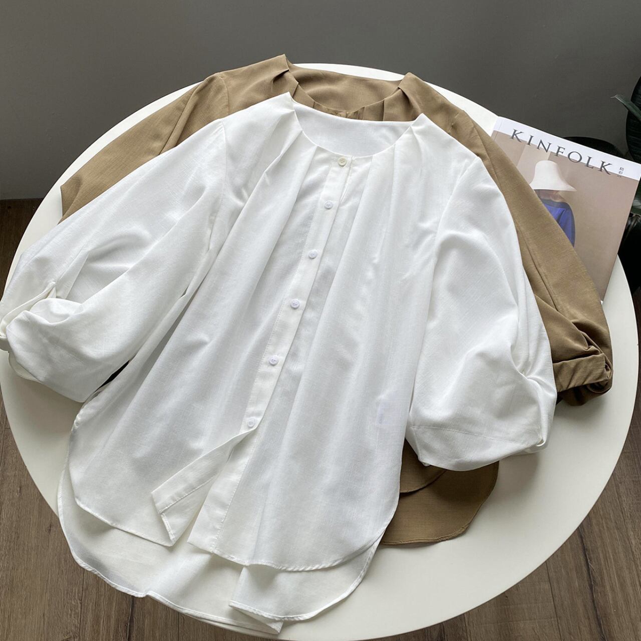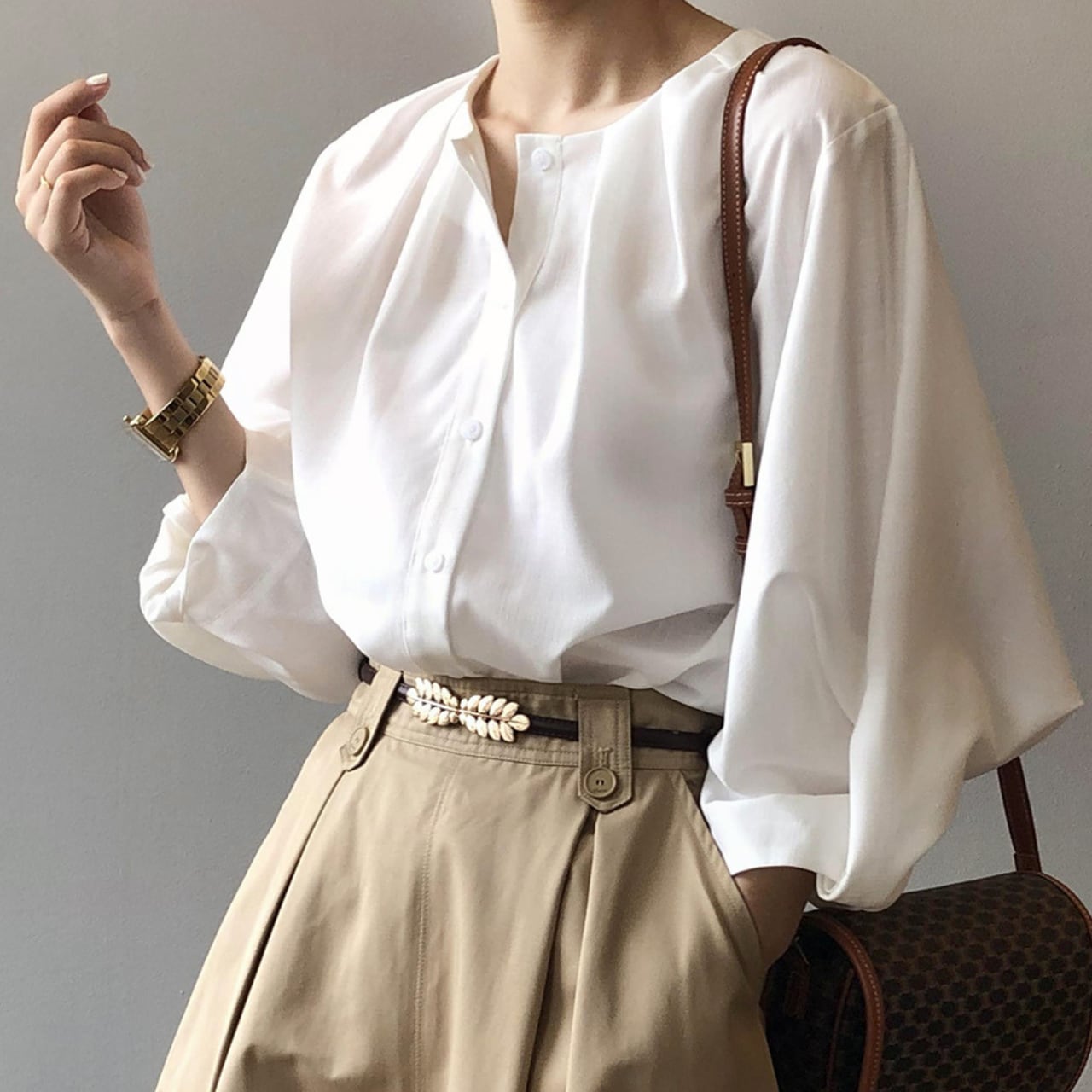 ボリュームスリーブが上品な七分袖シャツ。