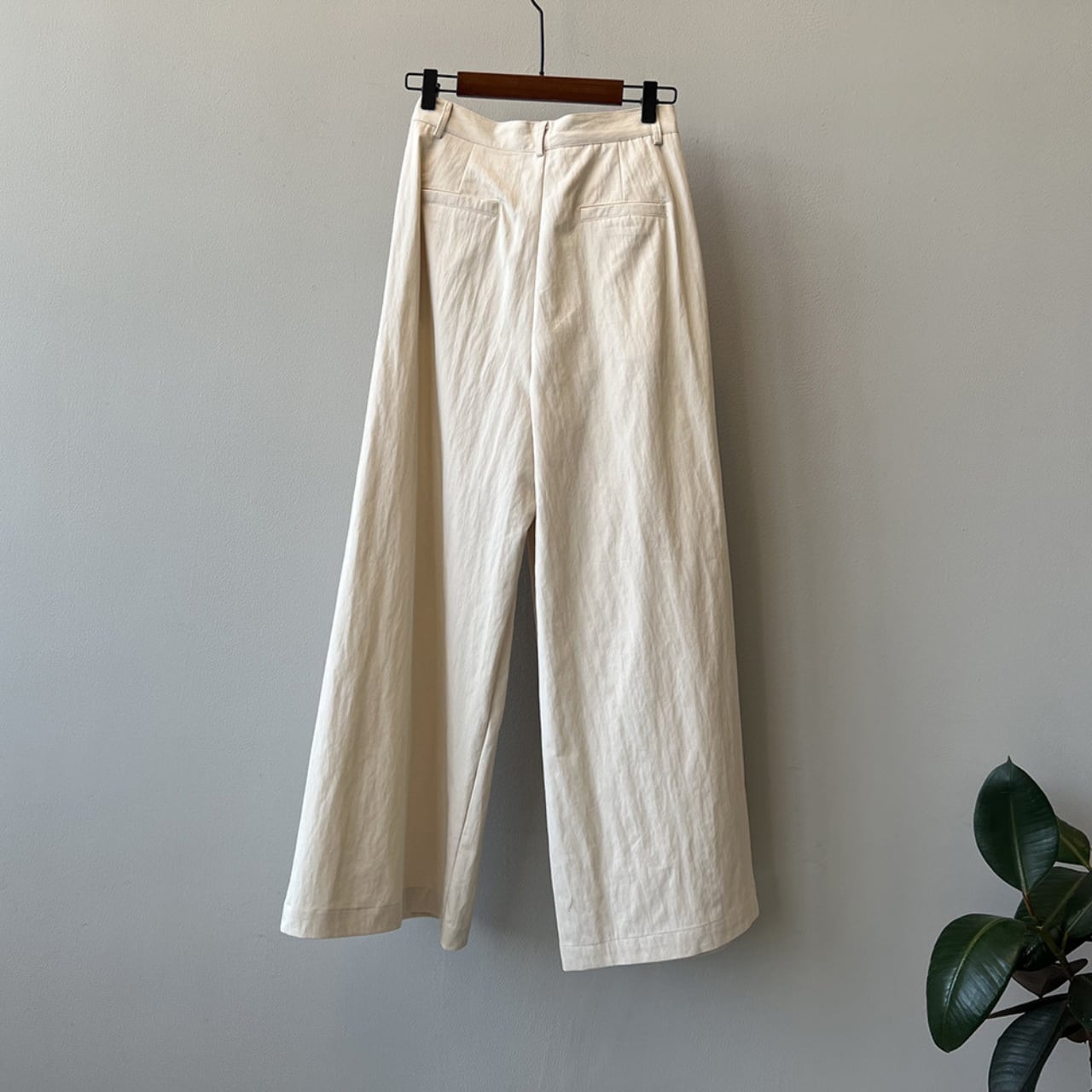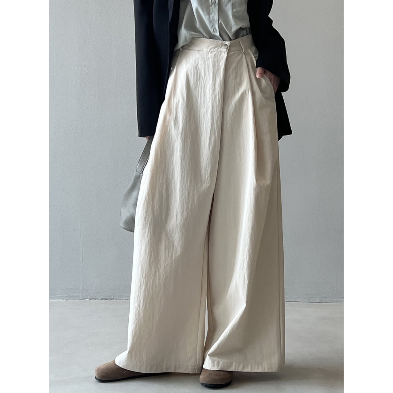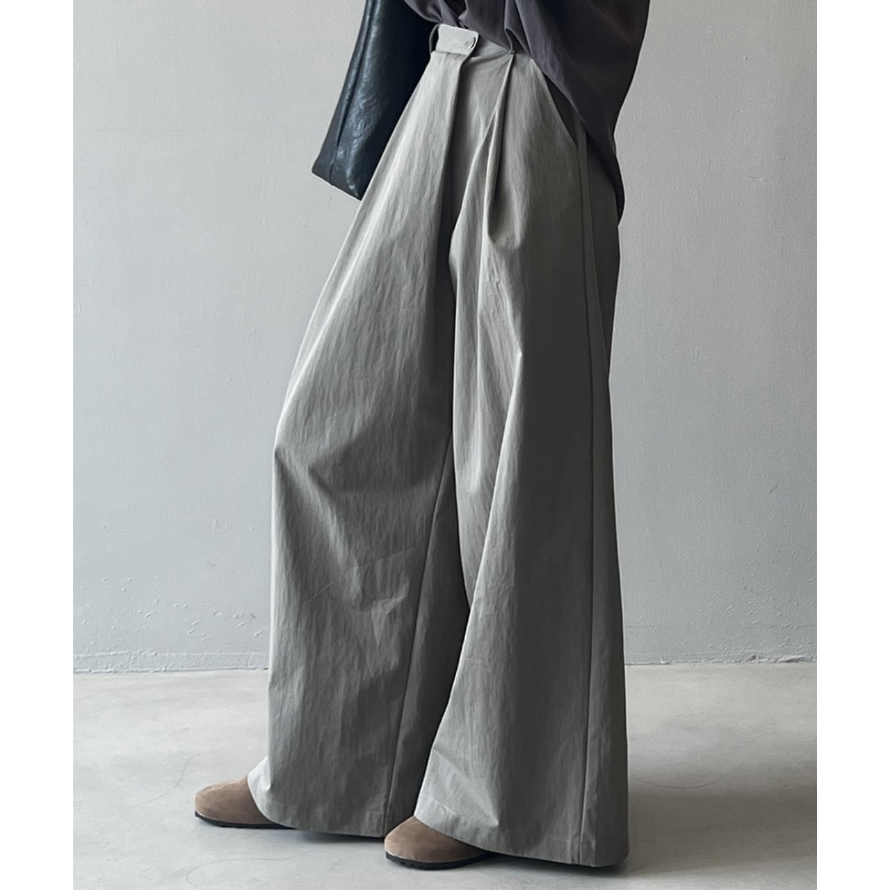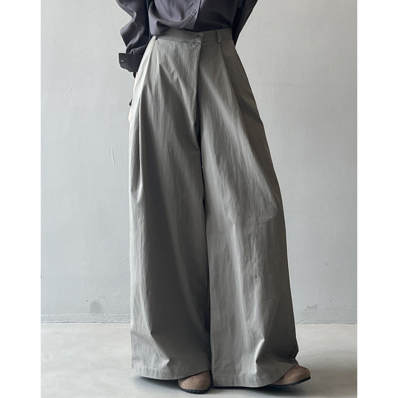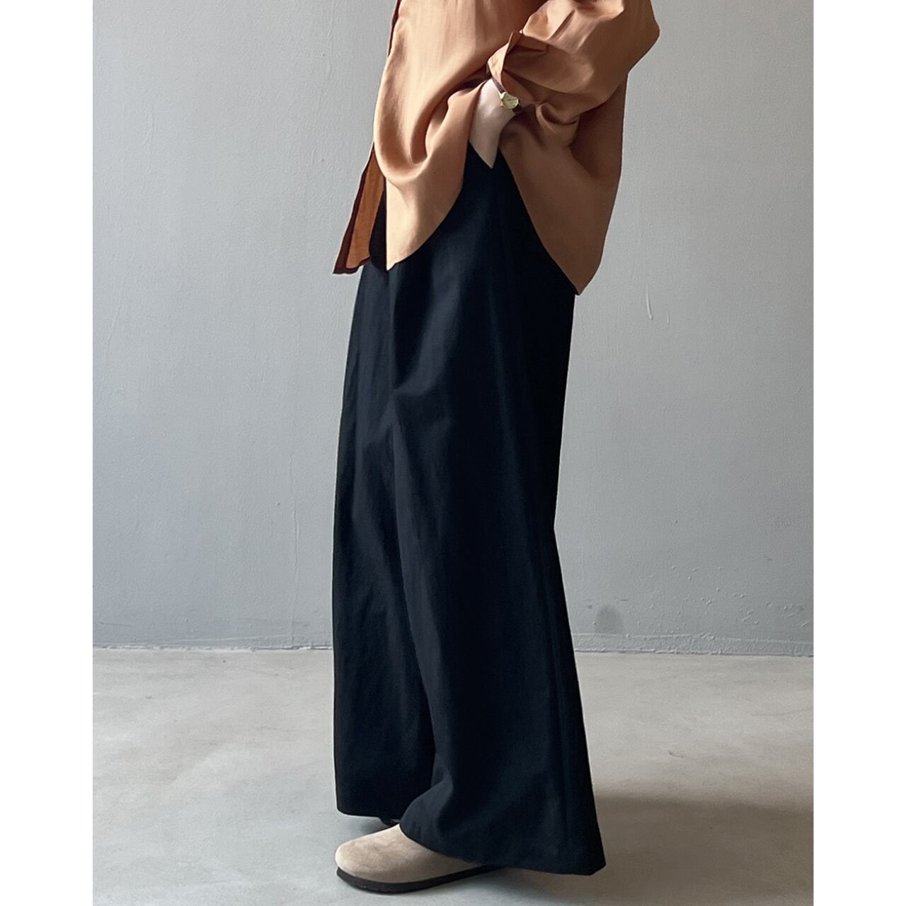 ゆったりとしたワイドレッグシルエットは、リラックス感と女性らしさを演出します。
