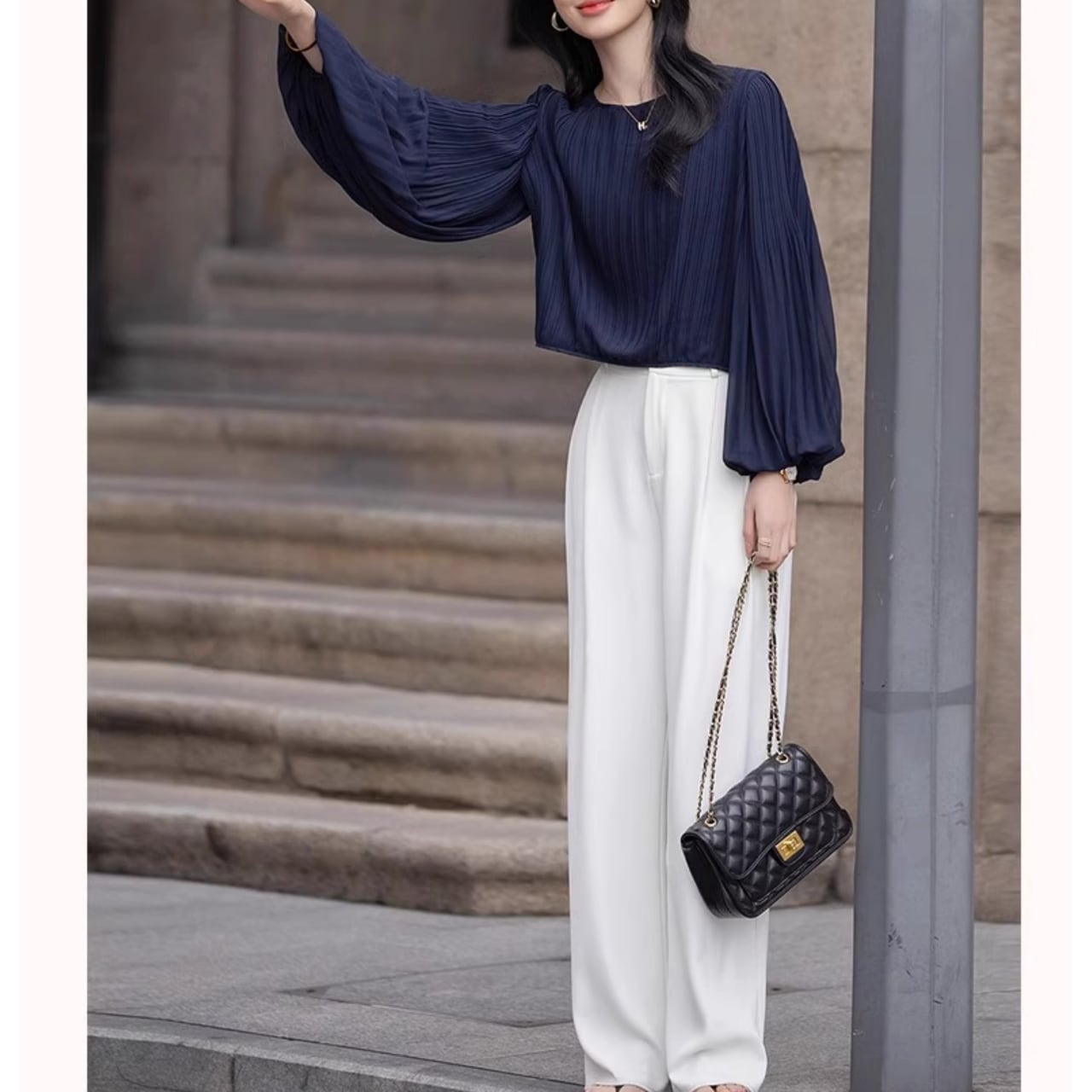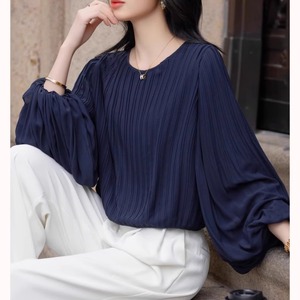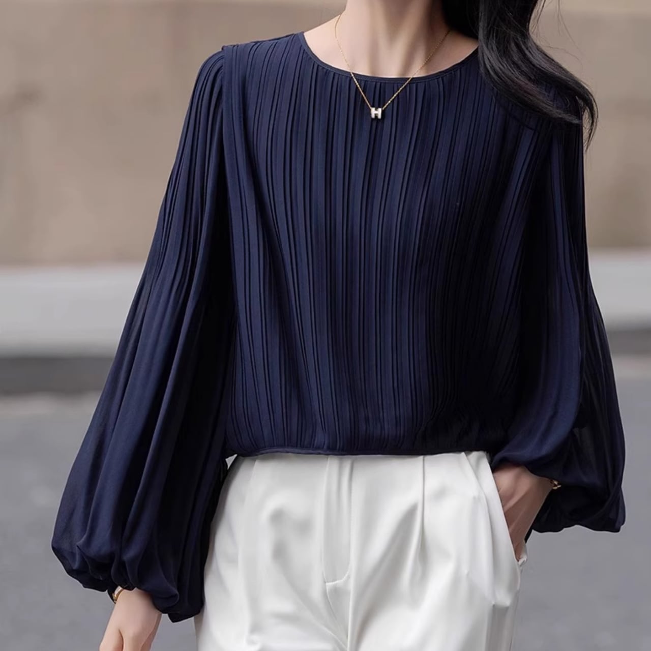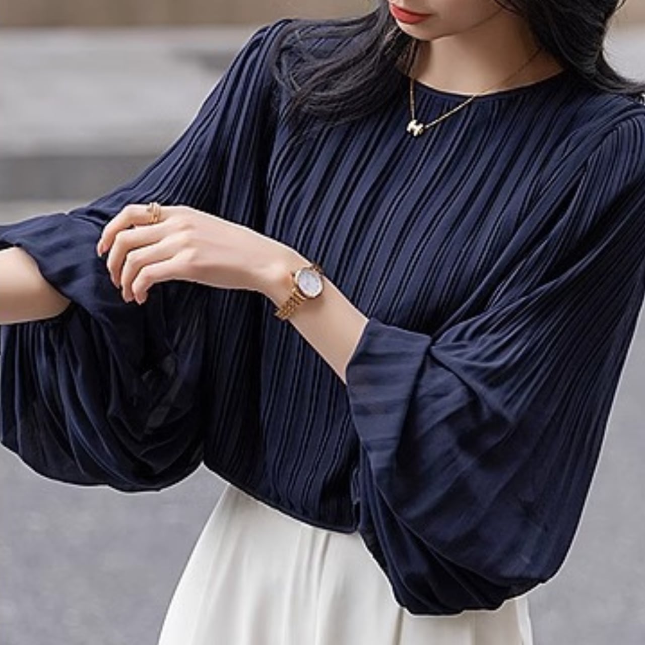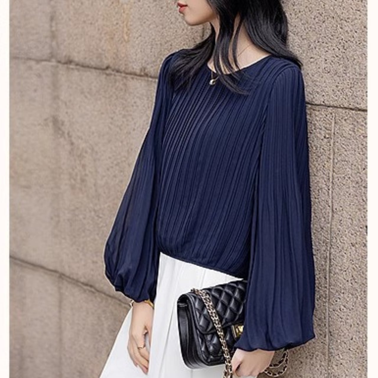 繊細なプリーツが美しい、バルーンスリーブブラウス。