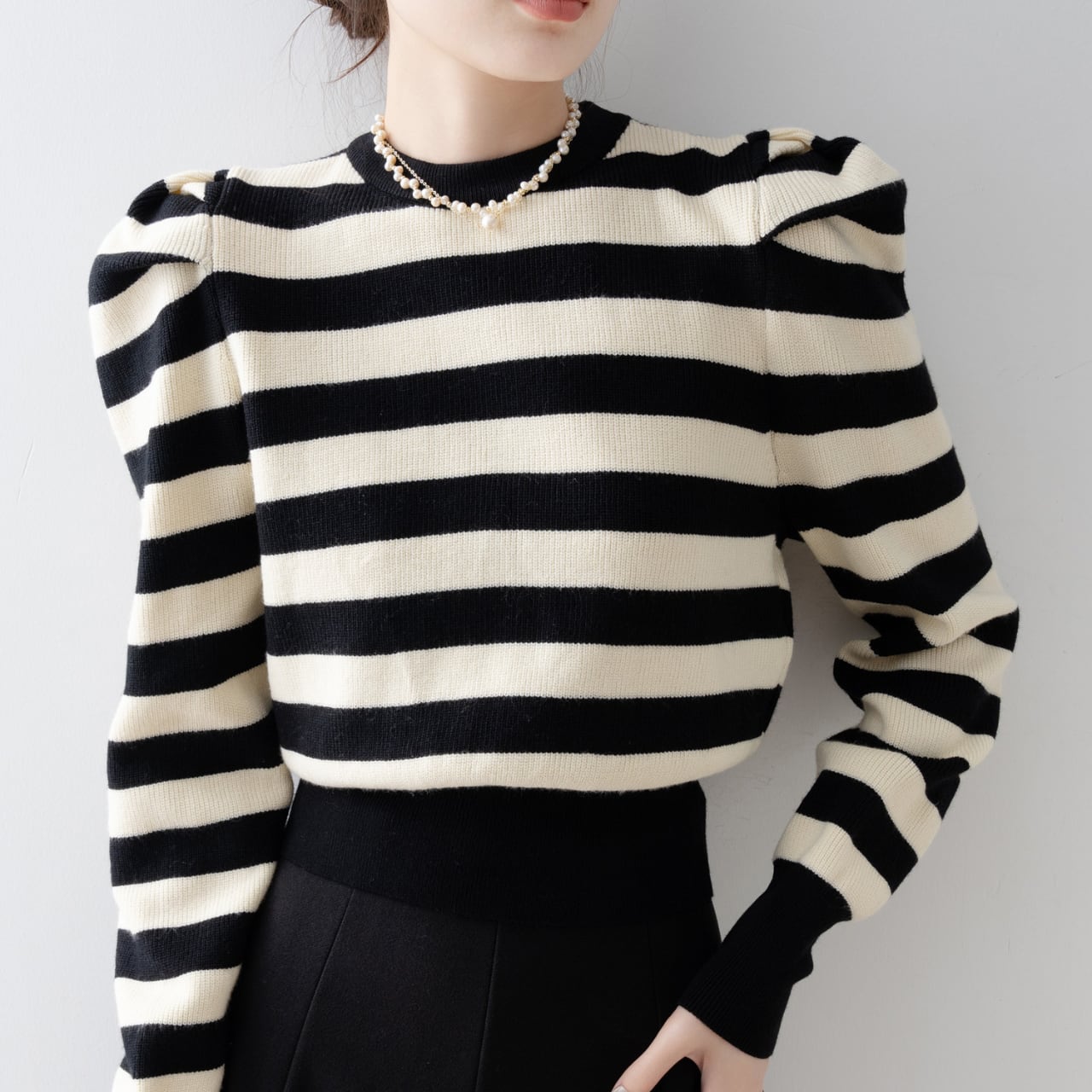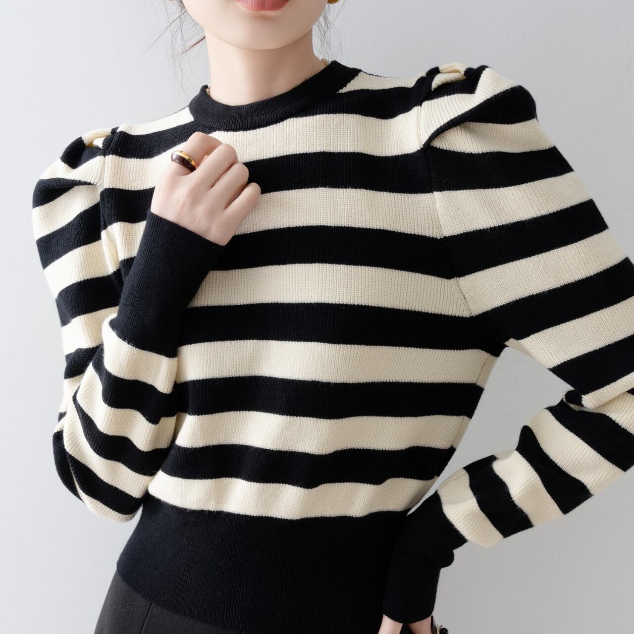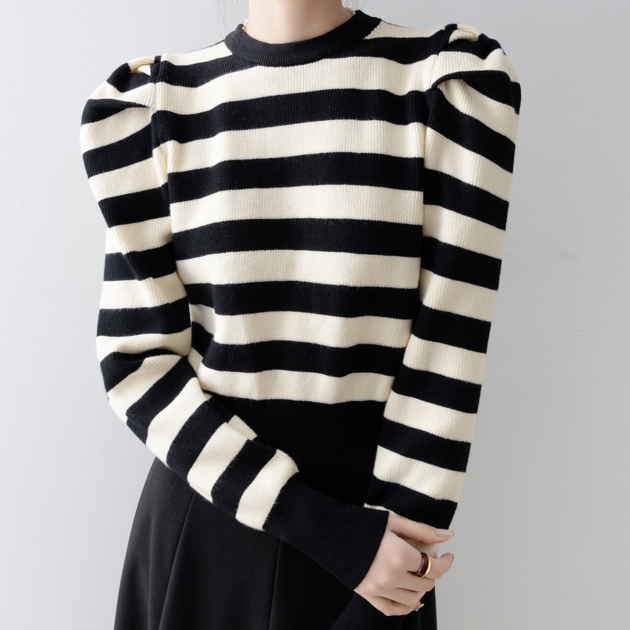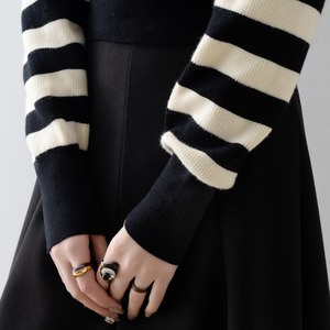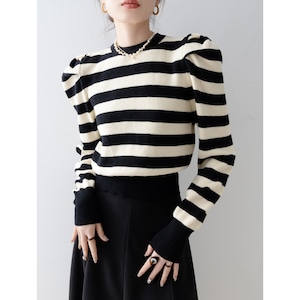 ボーダー柄パフスリーブニット N00051