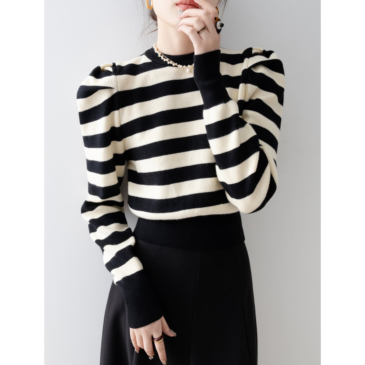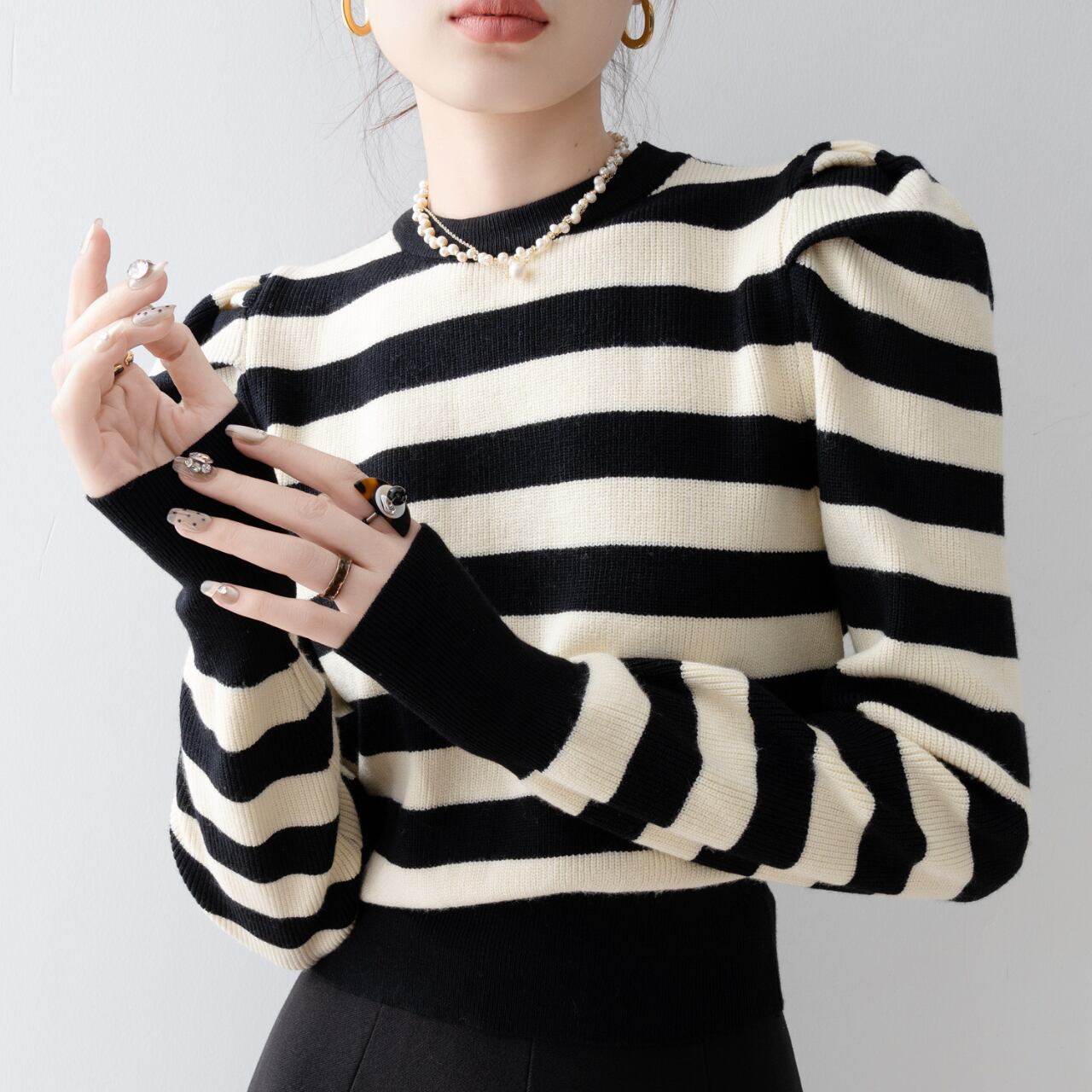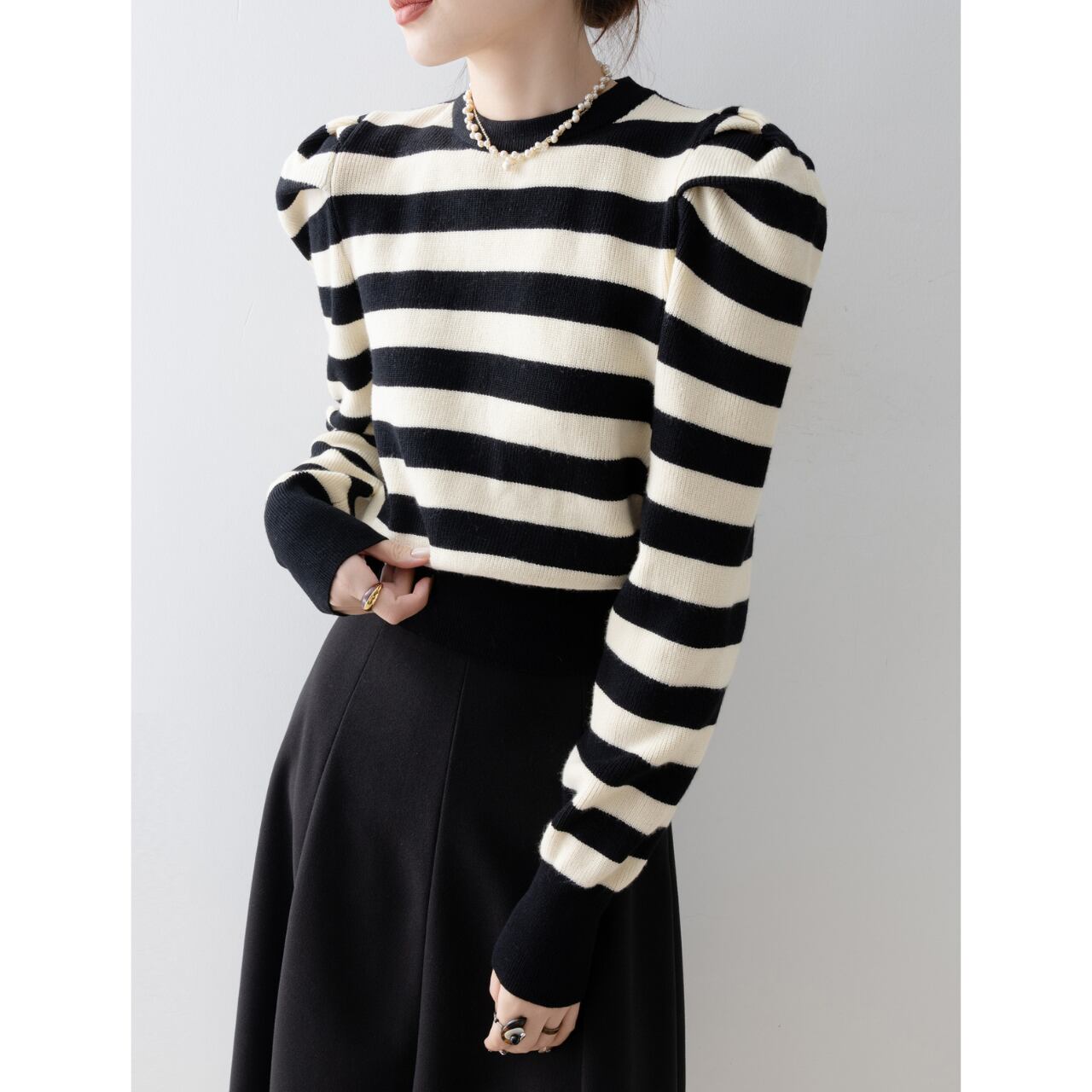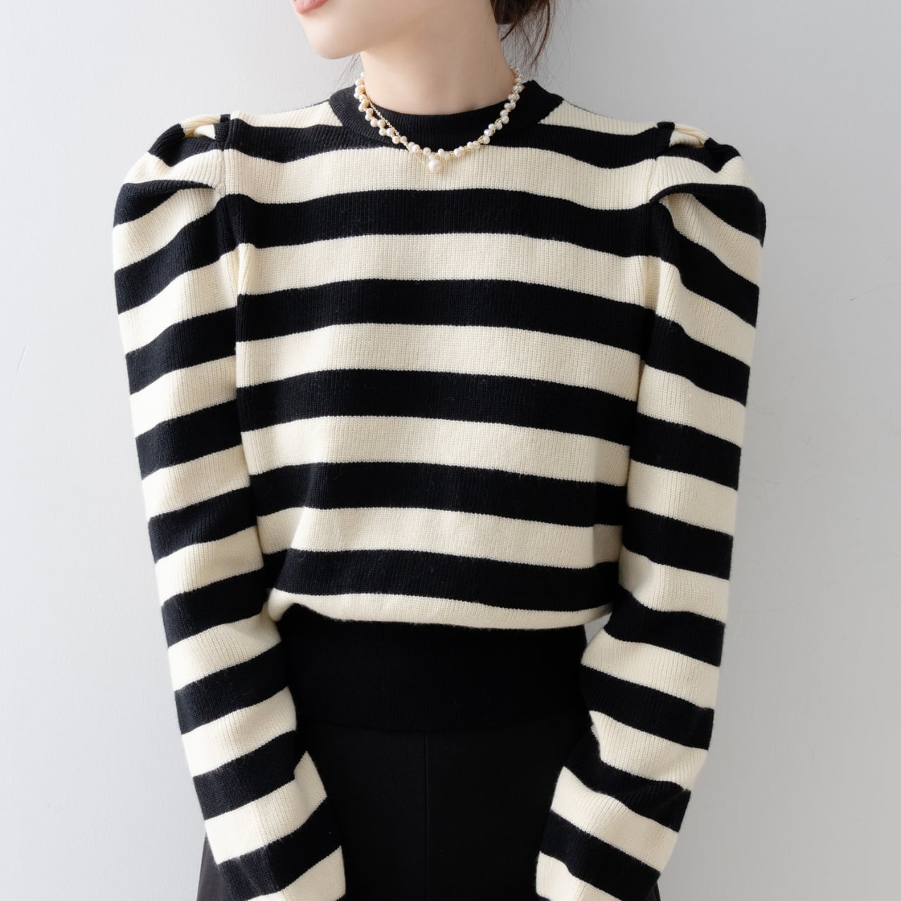 ボーダー柄パフスリーブニット N00051