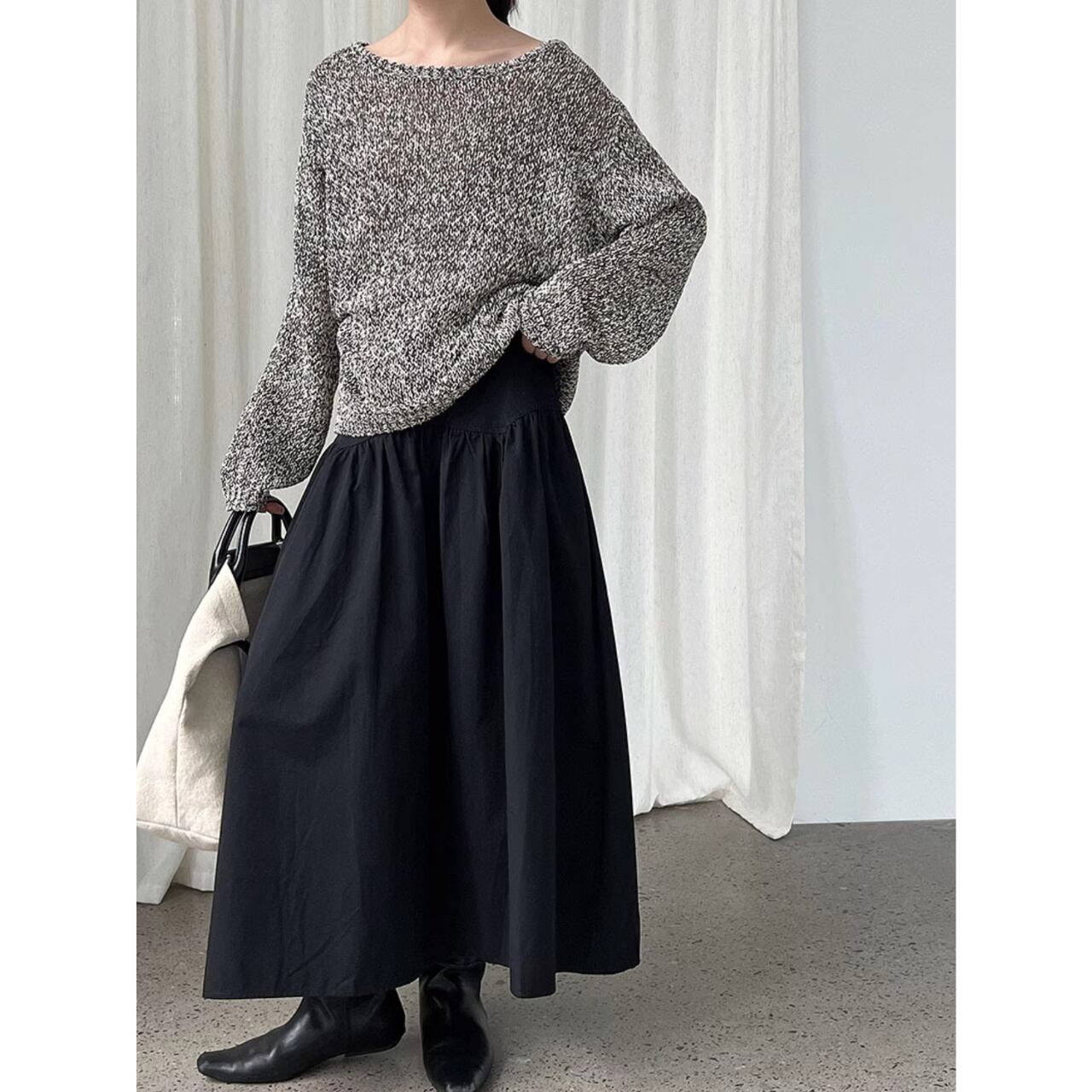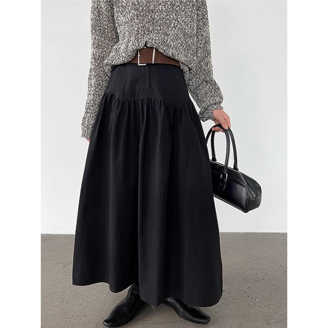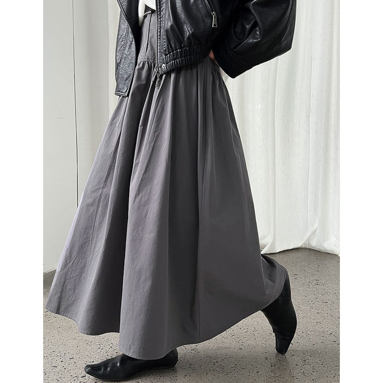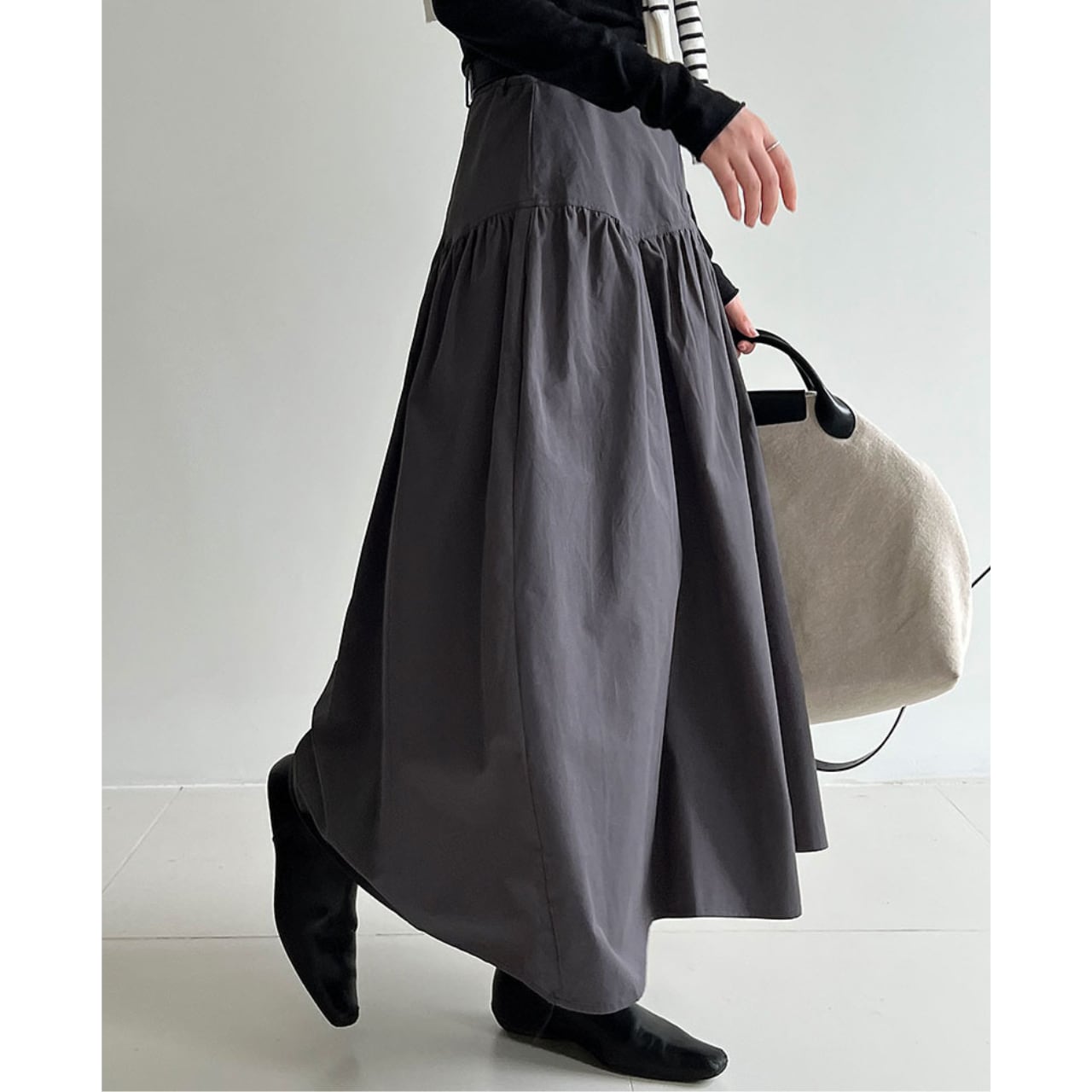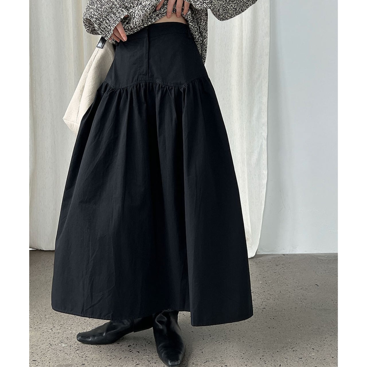 ハイウエストのデザインとギャザーが美しいスカート。
