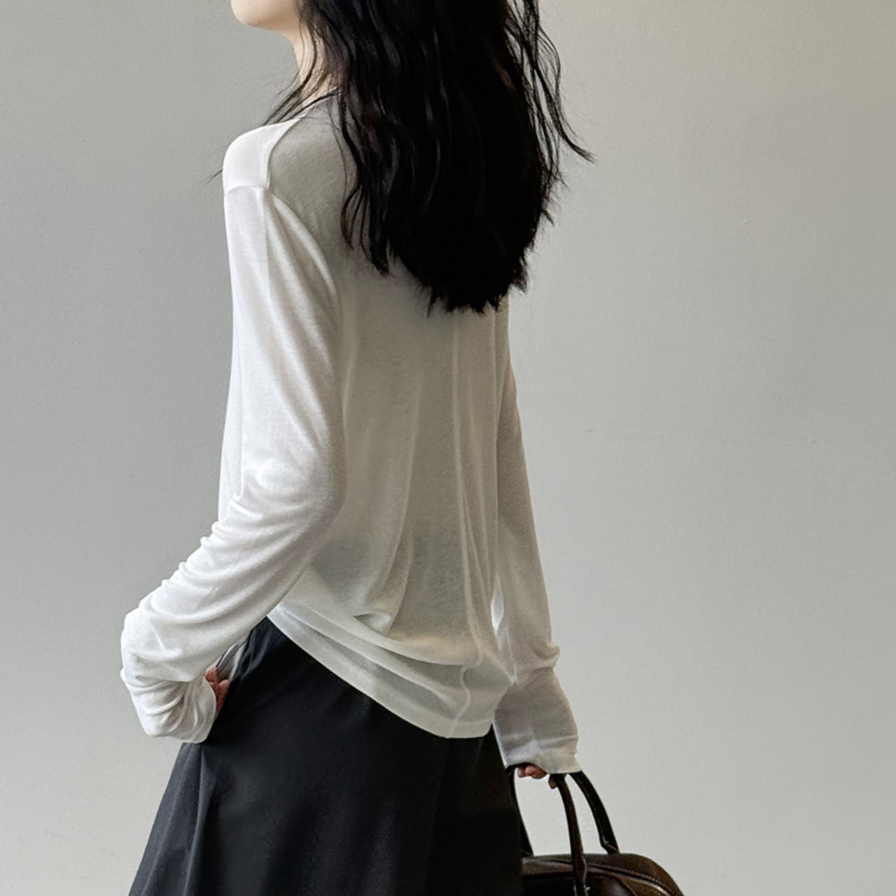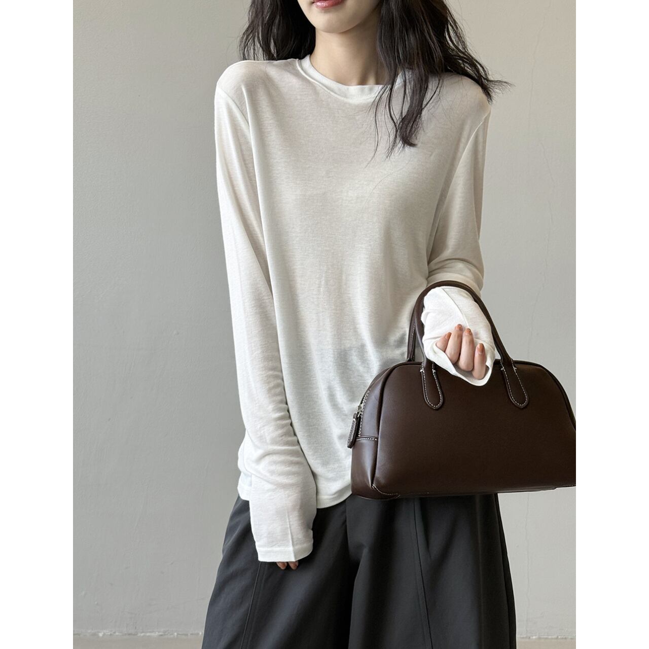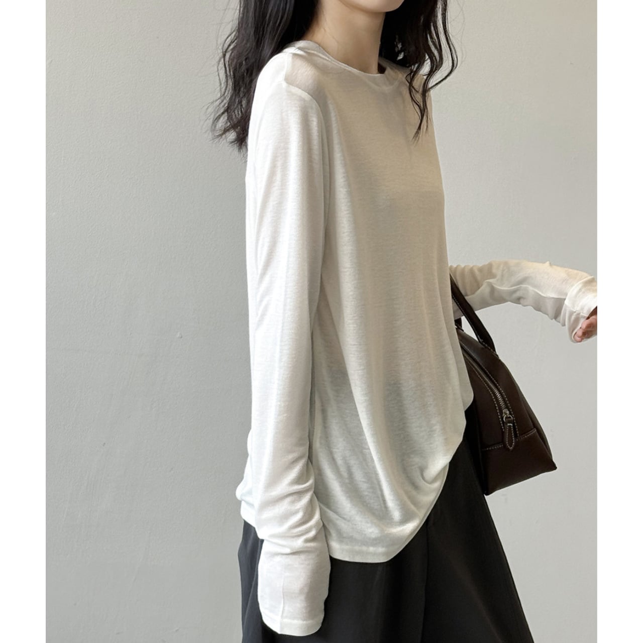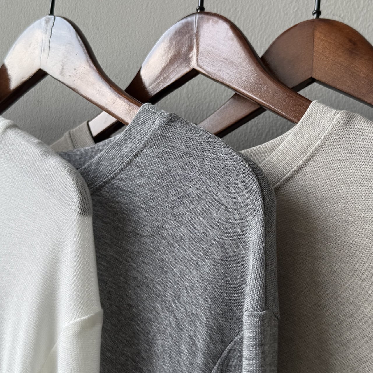 一枚で着こなすのはもちろん、ジャケットやカーディガンのインナーとしても活躍し、季節を問わず長く愛用いただけます。
