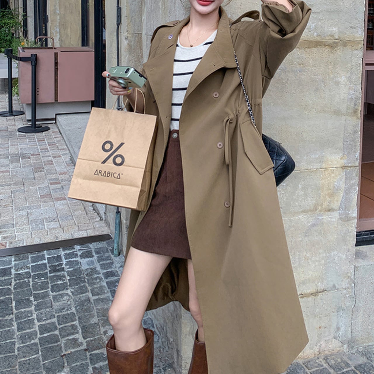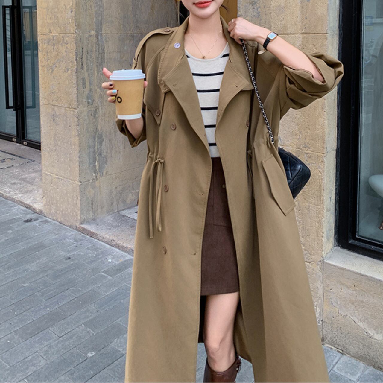 ドローストリングでウエストを絞れば、フェミニンなシルエットに。