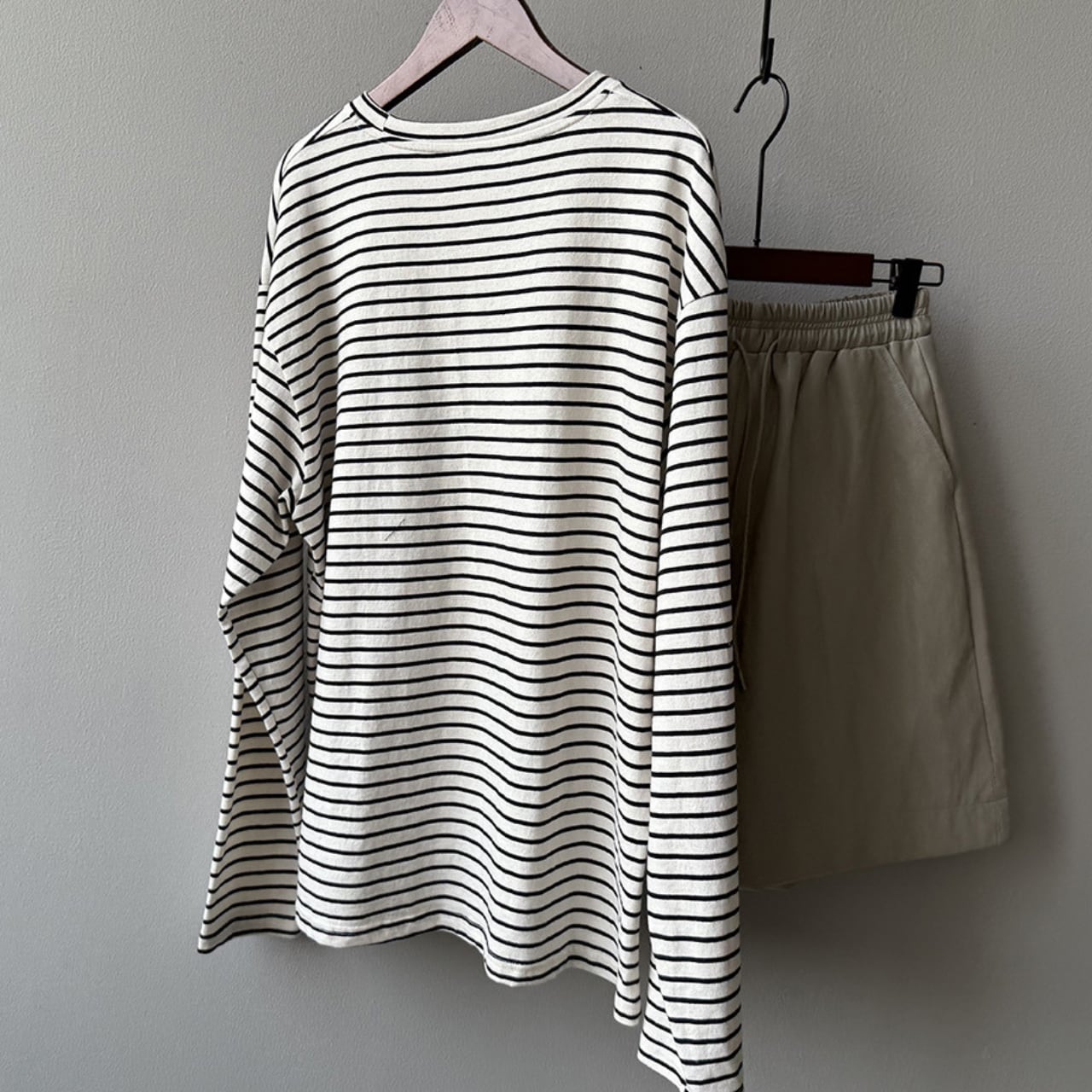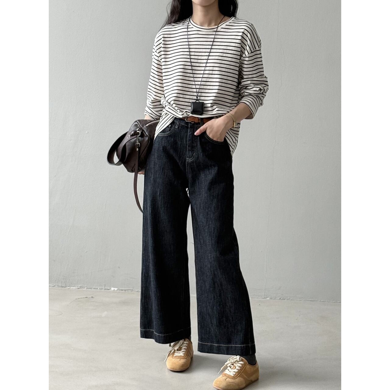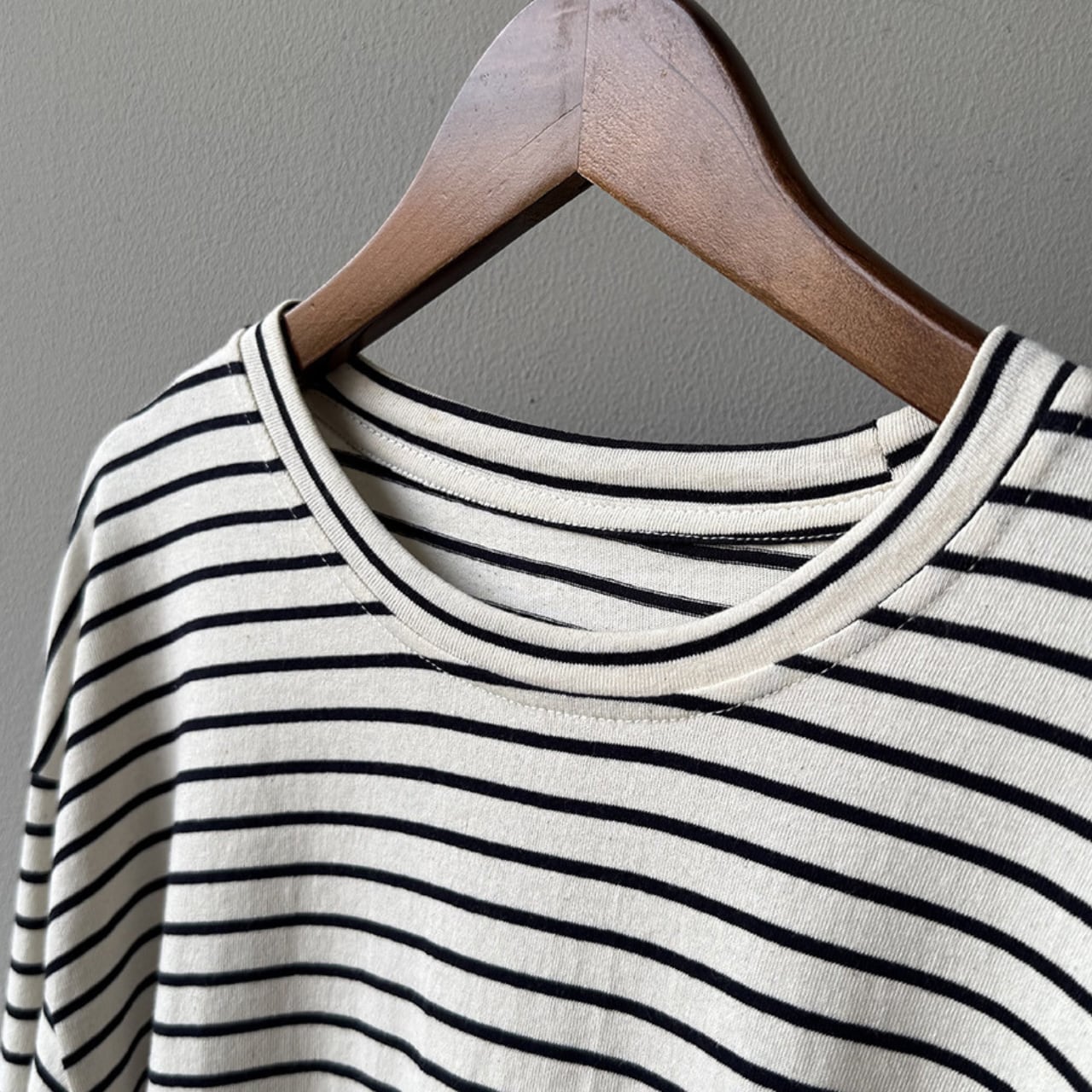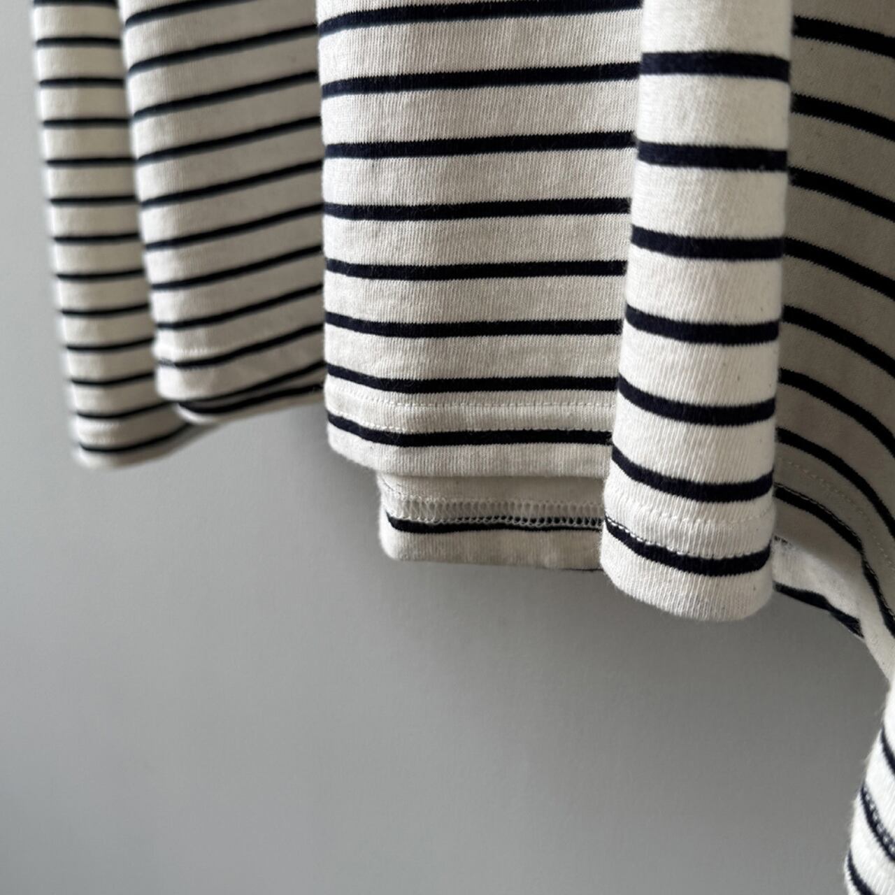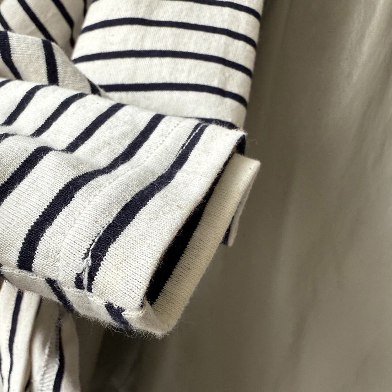 シンプルながらも存在感を放つ、ボーダー柄の長袖Tシャツ。