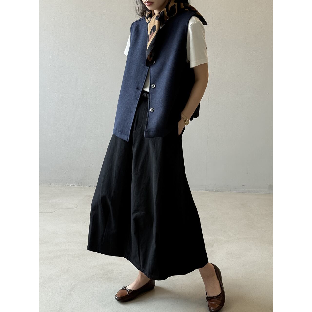 シンプルながらも上品な印象を与え、コーディネートの幅を広げます。