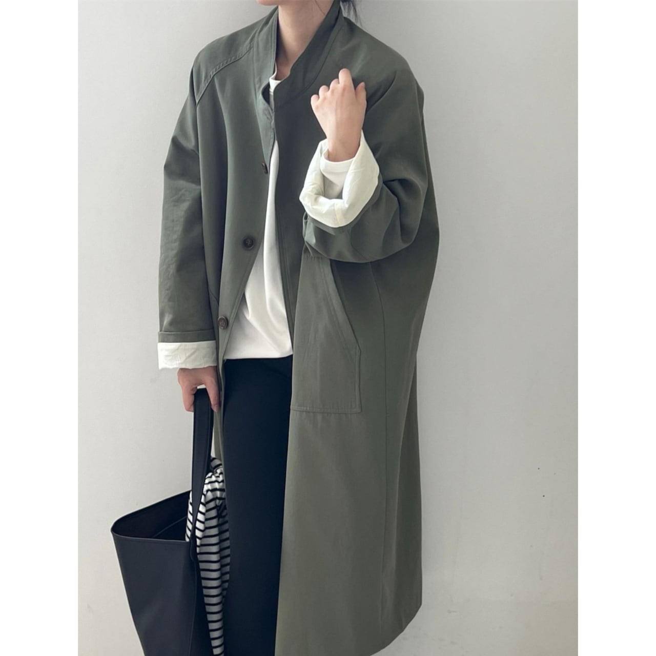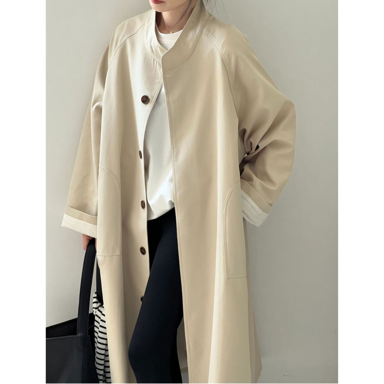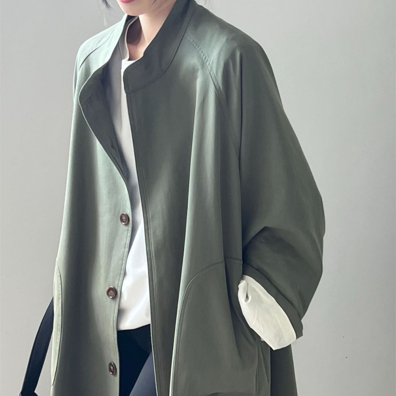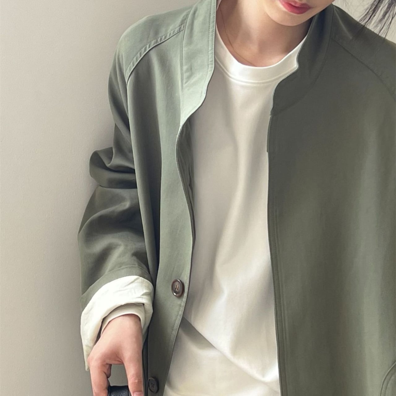 ノーカラーのデザインは、どんなインナーにも合わせやすく、コーディネートの幅を広げます。