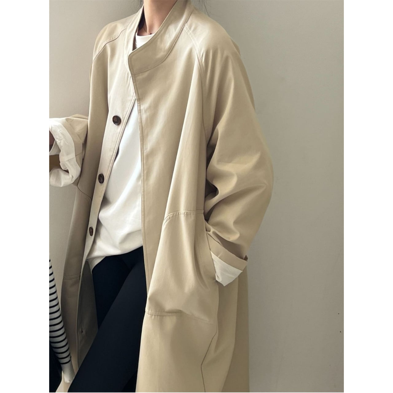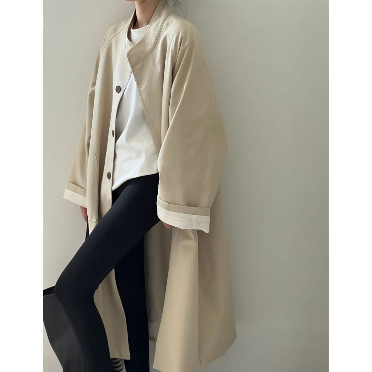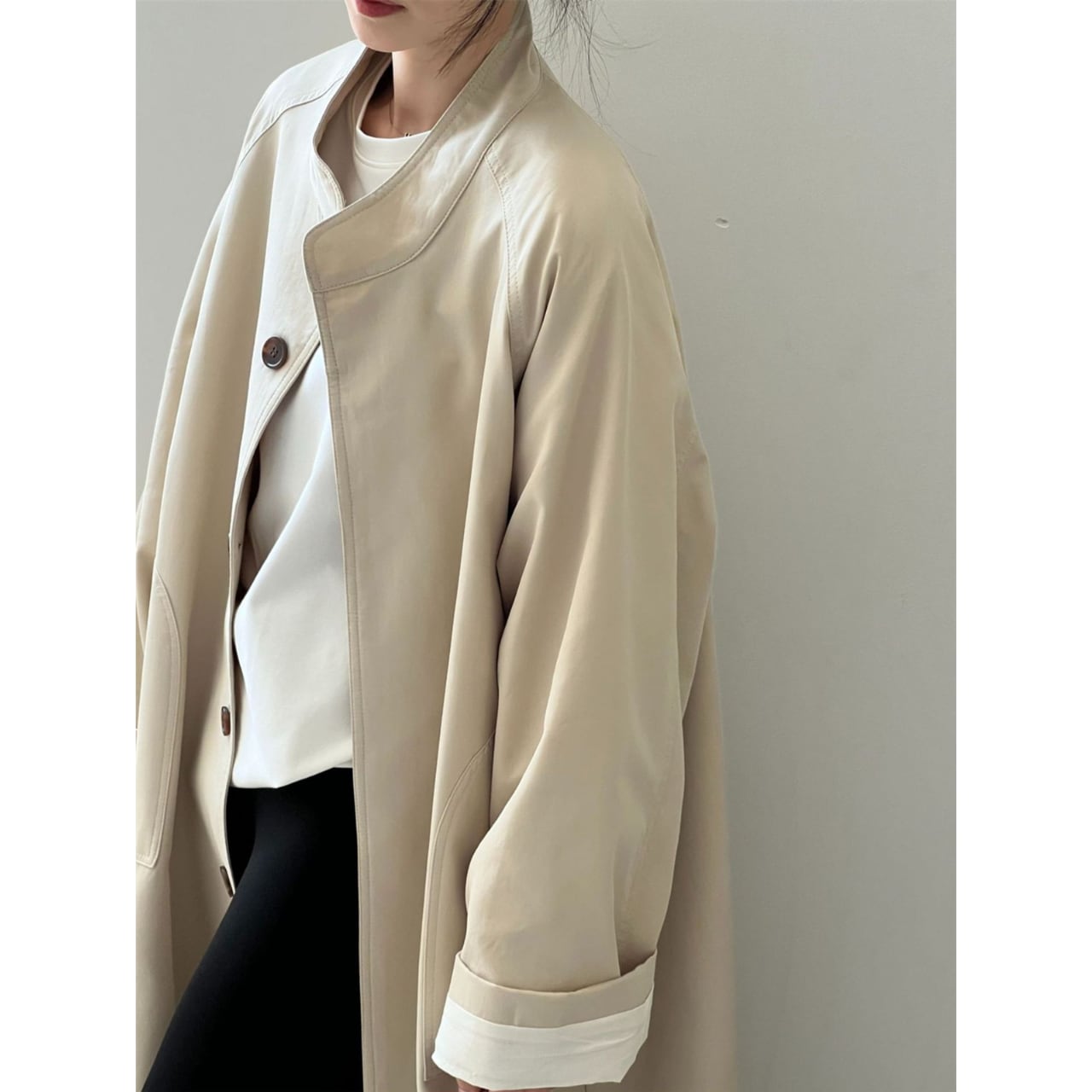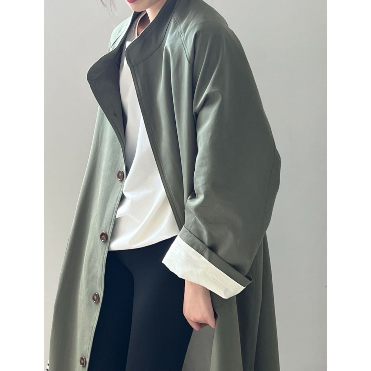 ノーカラーのデザインは、どんなインナーにも合わせやすく、コーディネートの幅を広げます。