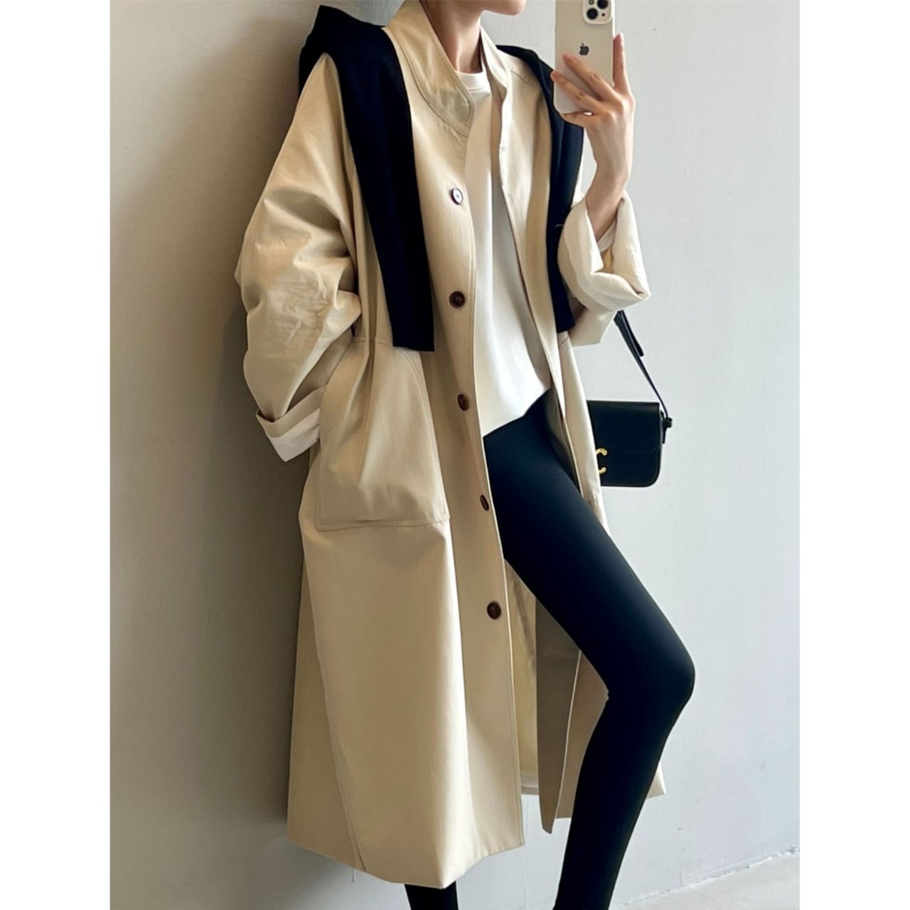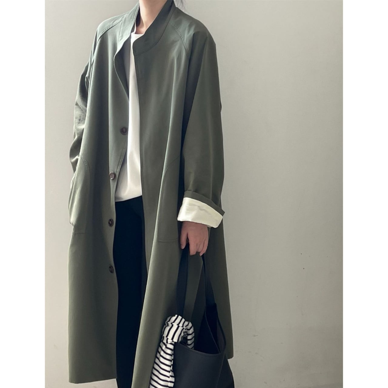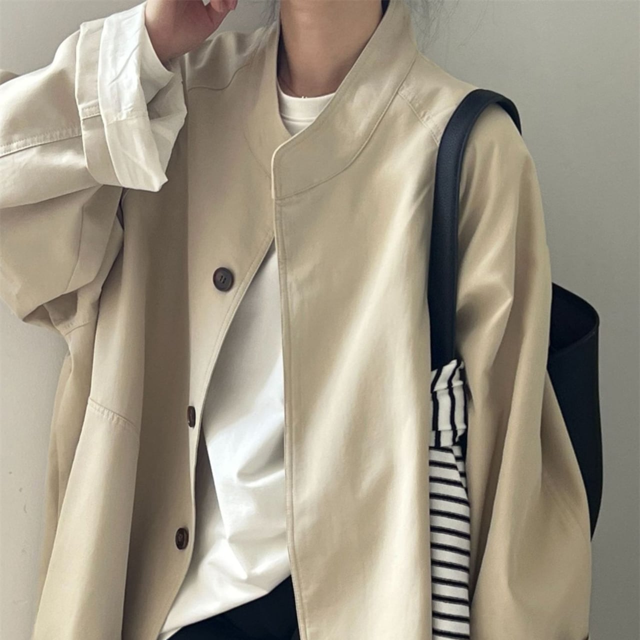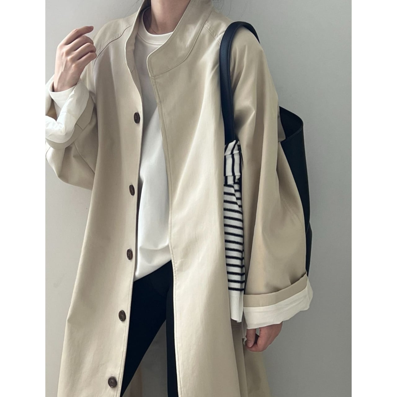 ノーカラーのデザインは、どんなインナーにも合わせやすく、コーディネートの幅を広げます。