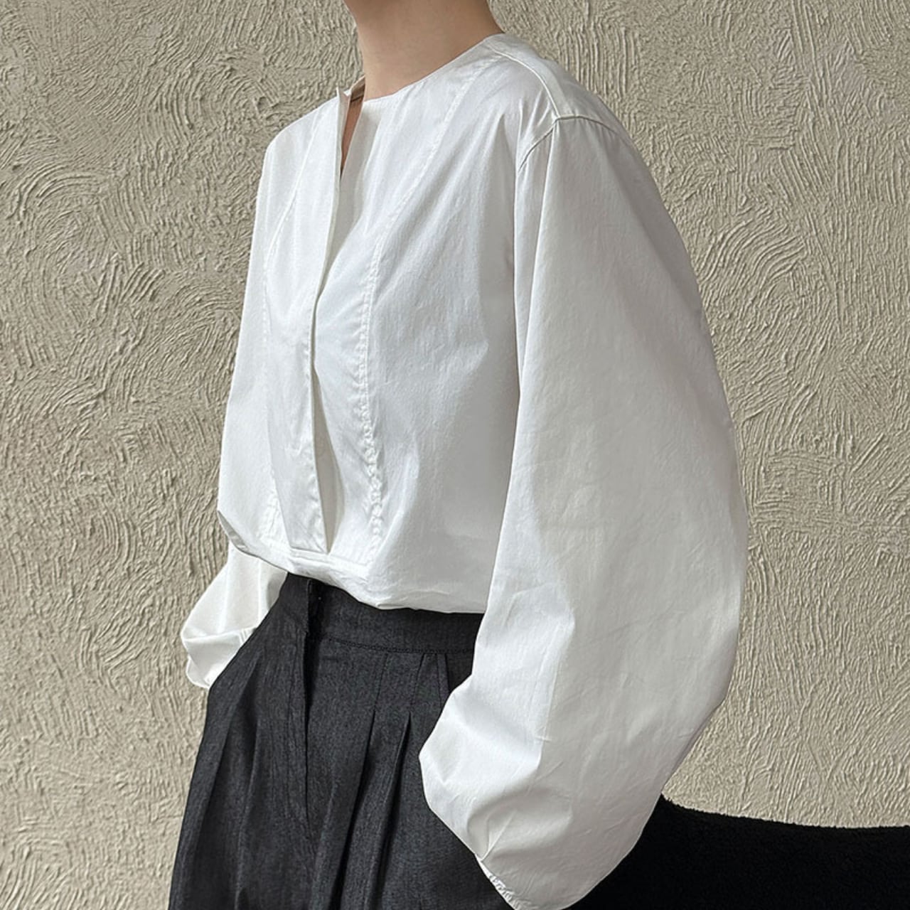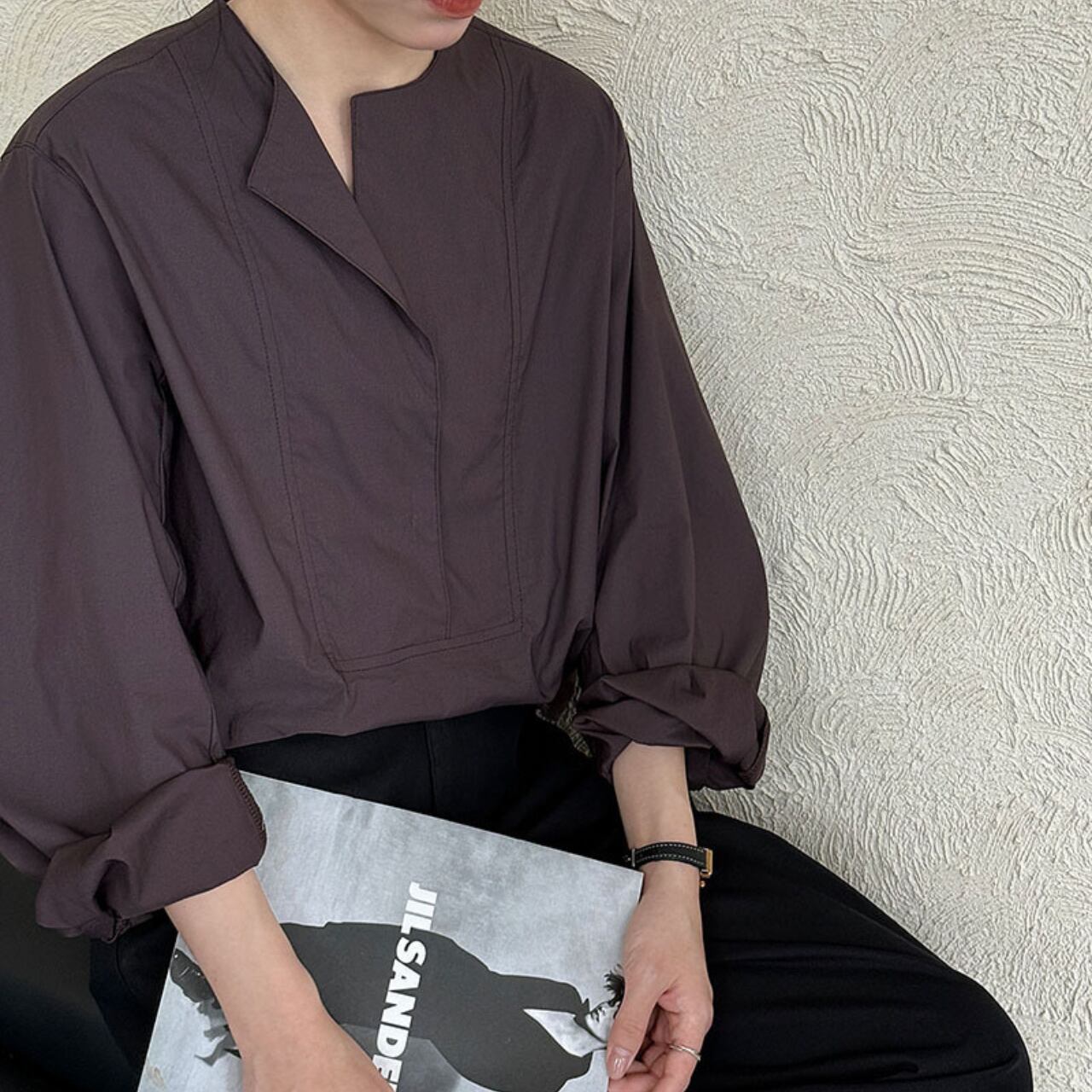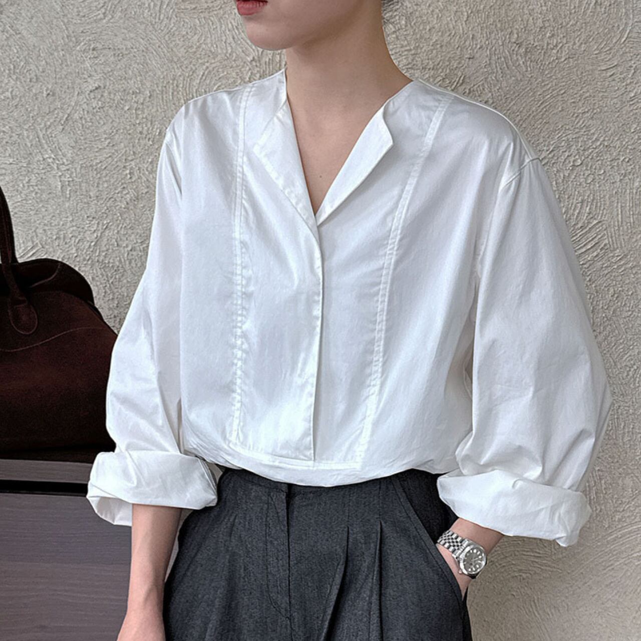 シンプルなデザインながらも、着回し力の高い長袖シャツ。