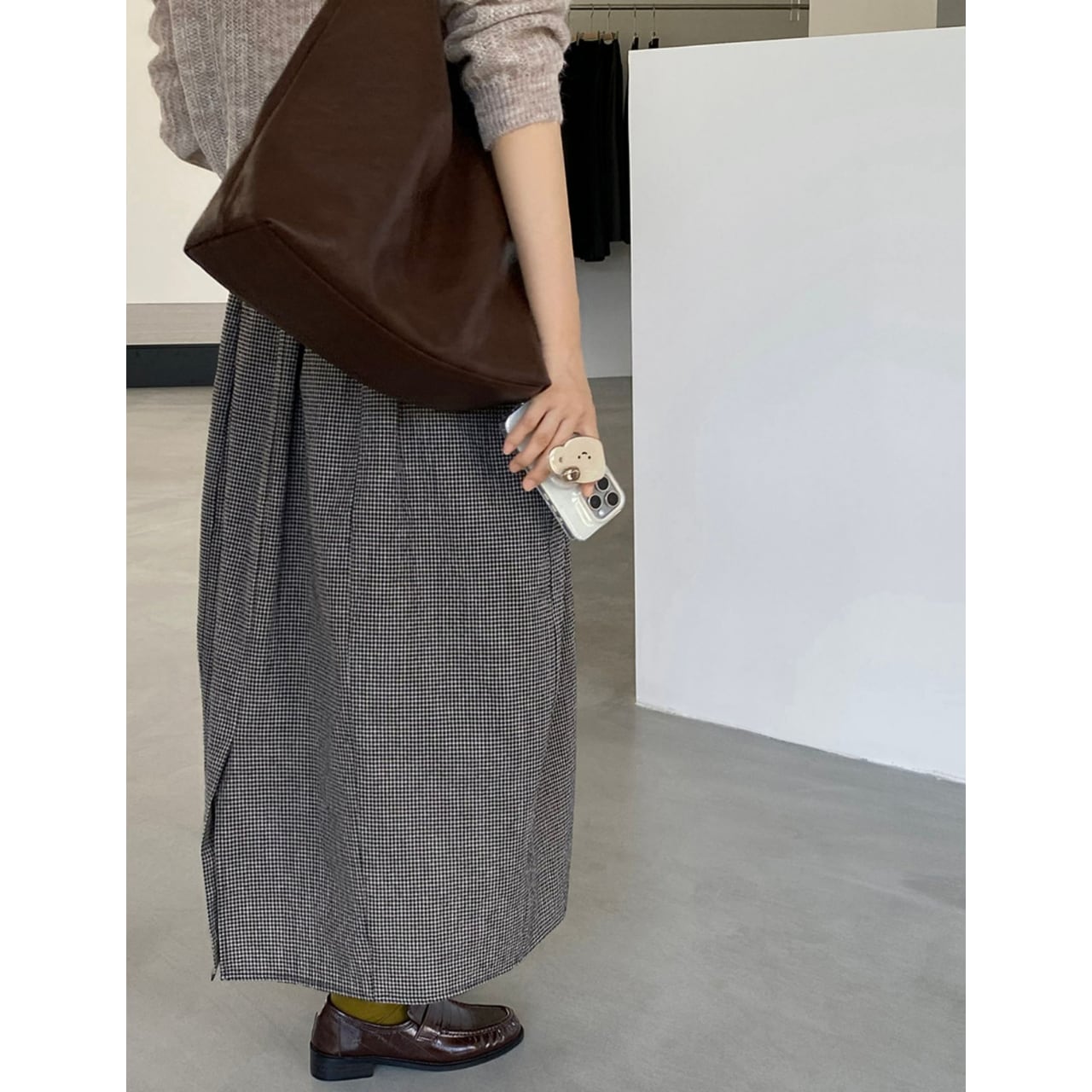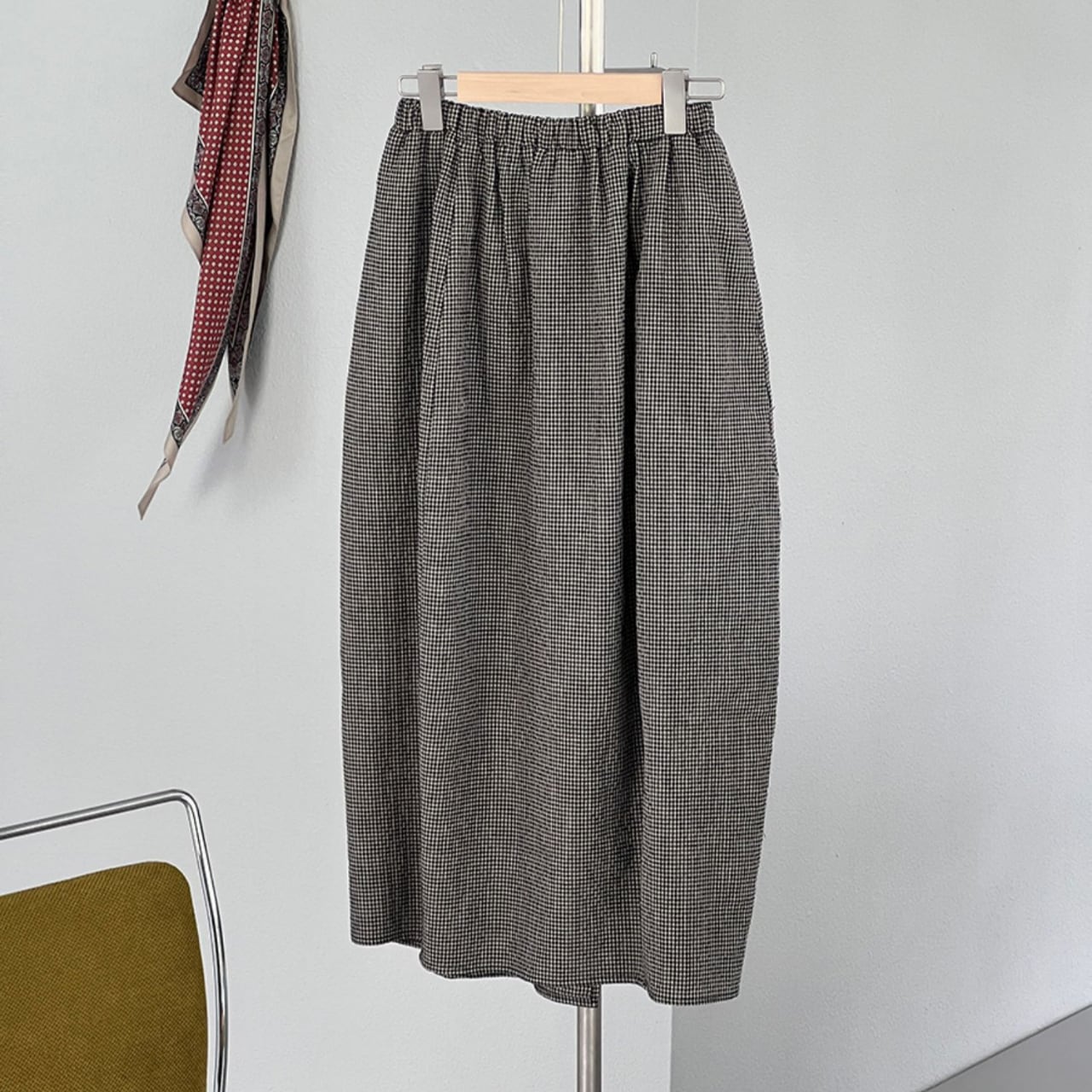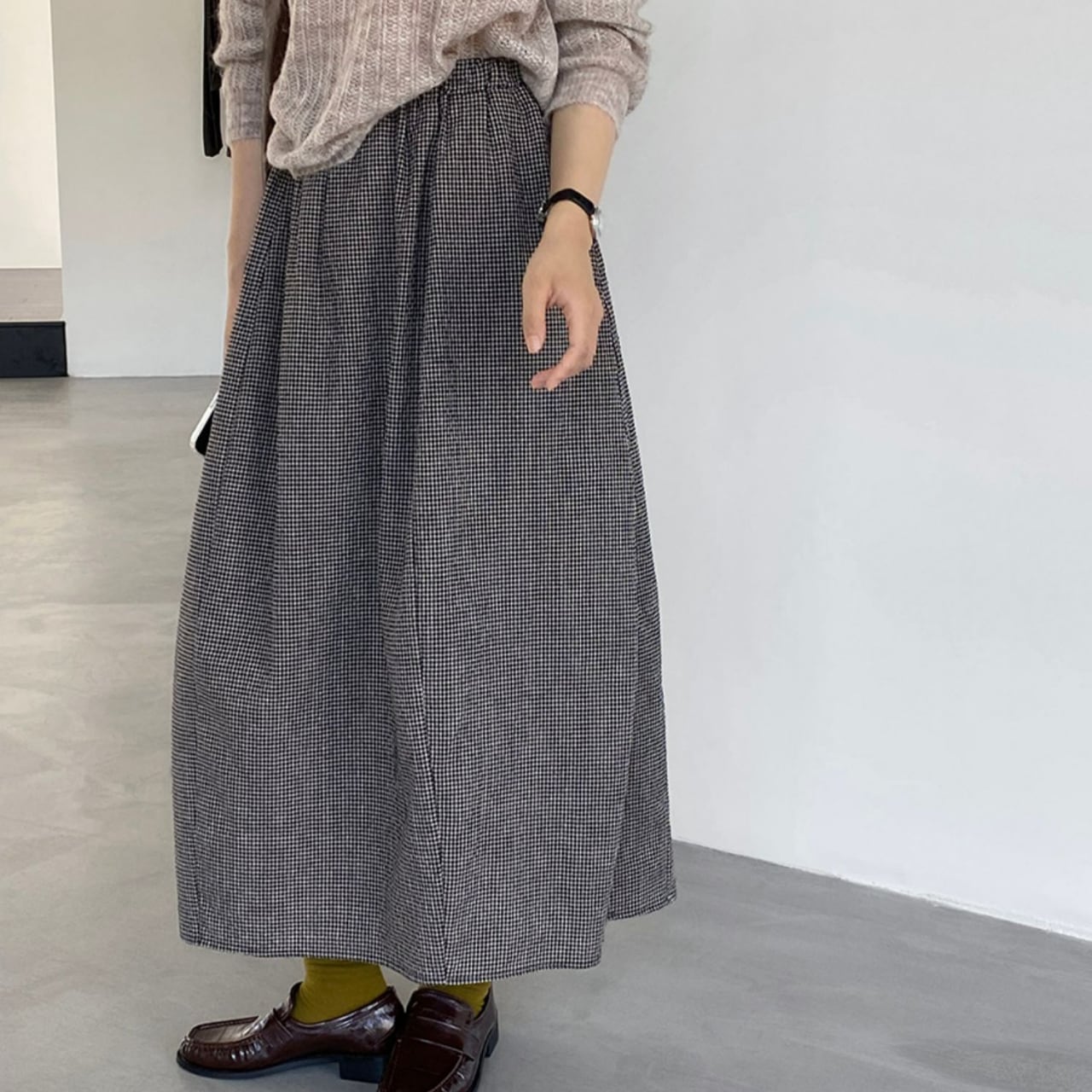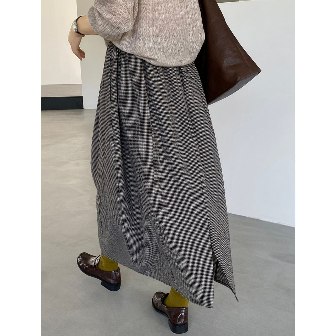 上品な丈感と、歩くたびに揺れるシルエットが女性らしさを演出するスカート。