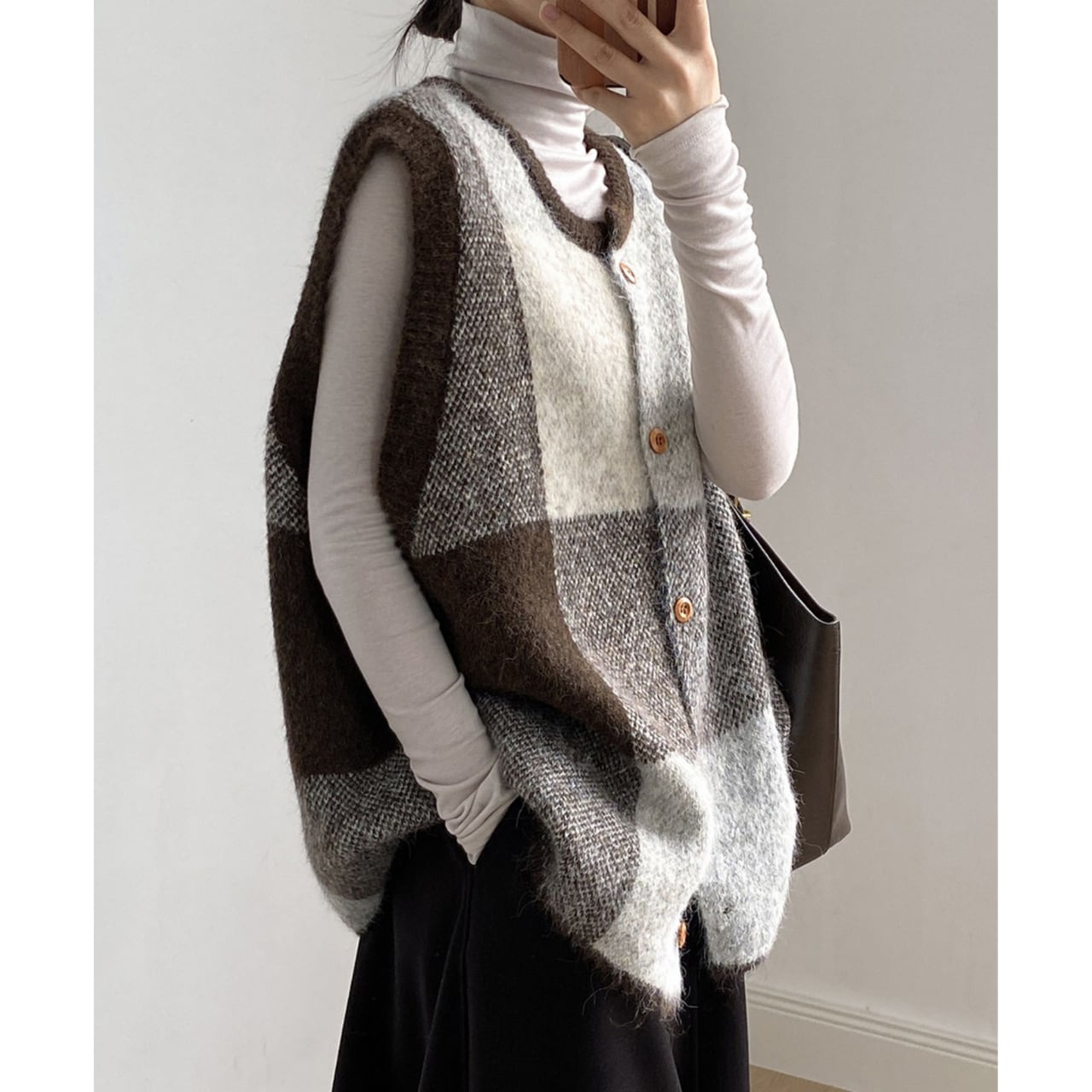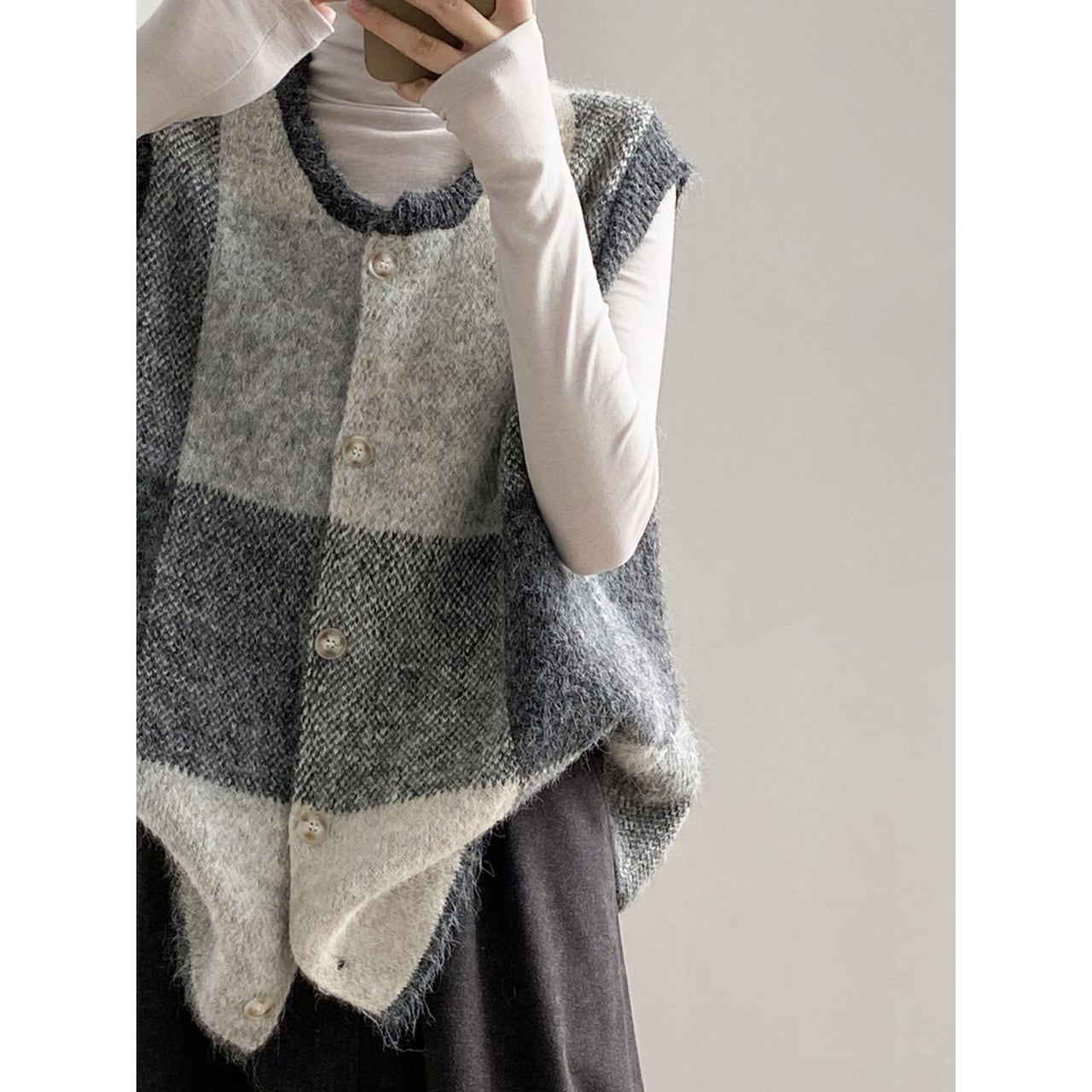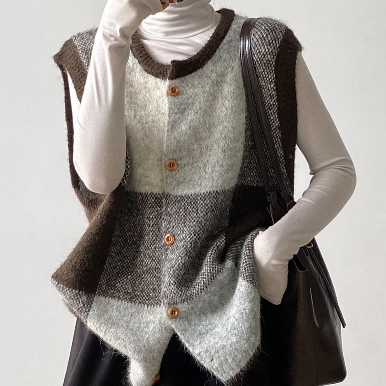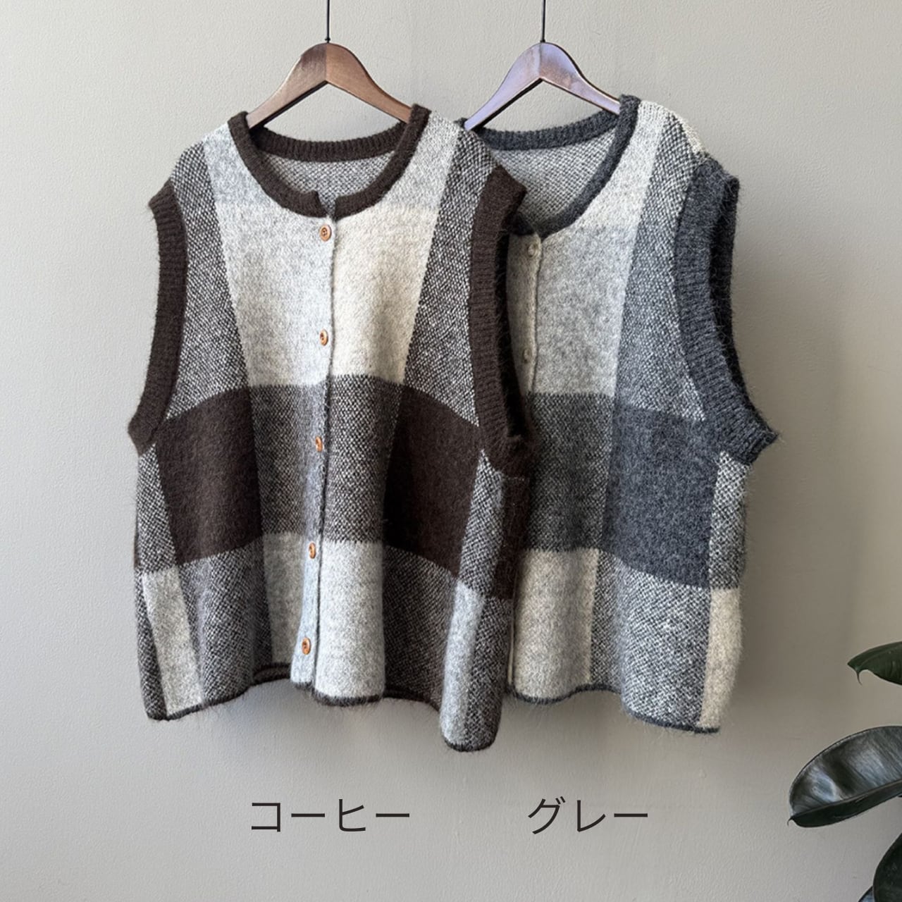 チェック柄が目を引く、ノースリーブニットベスト。