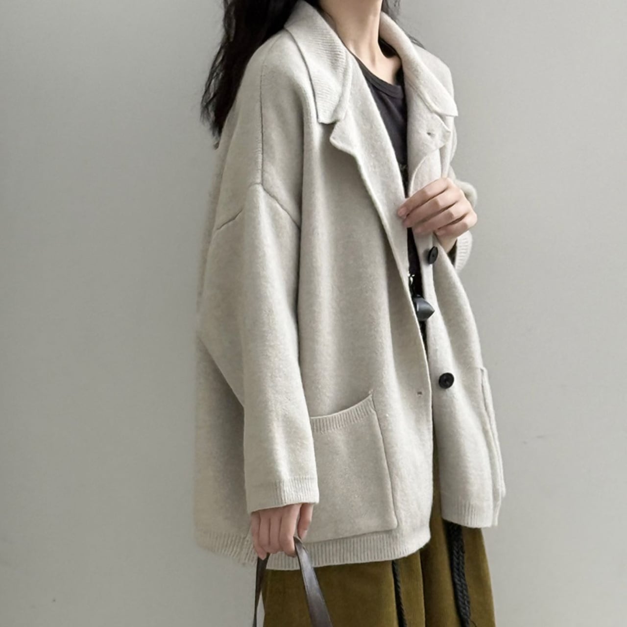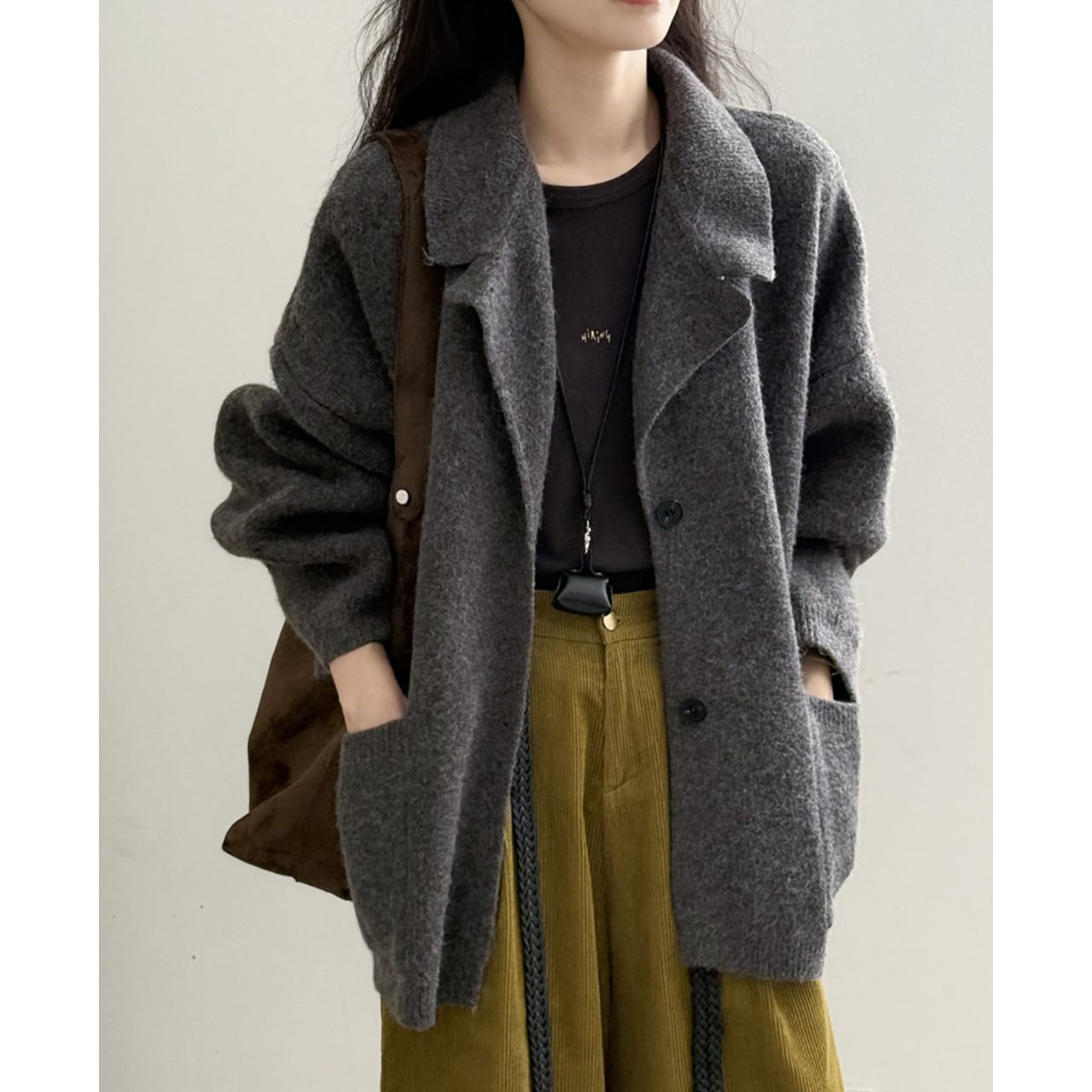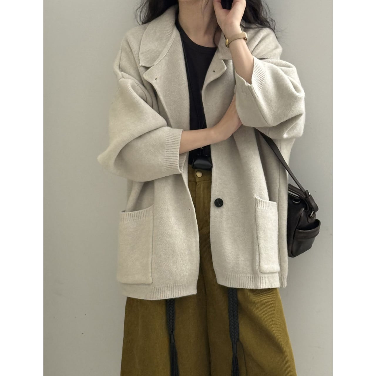 ボタンを留めてきちんと感を演出したり、前を開けてラフに羽織ったり、様々な着こなしが楽しめます。