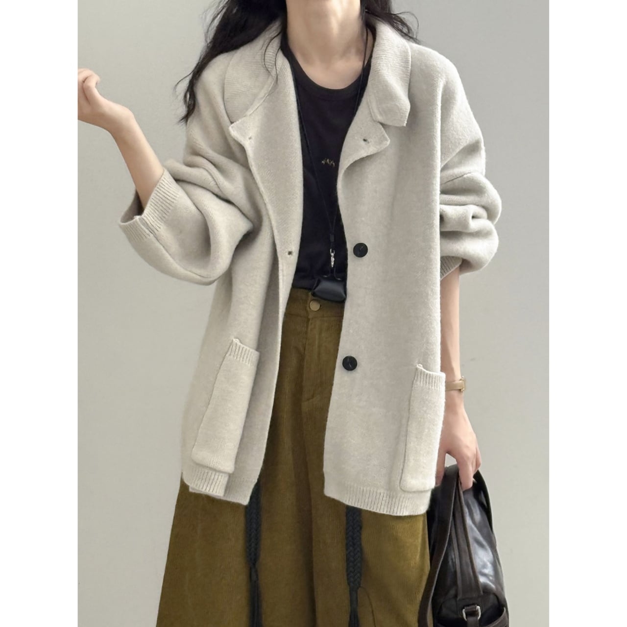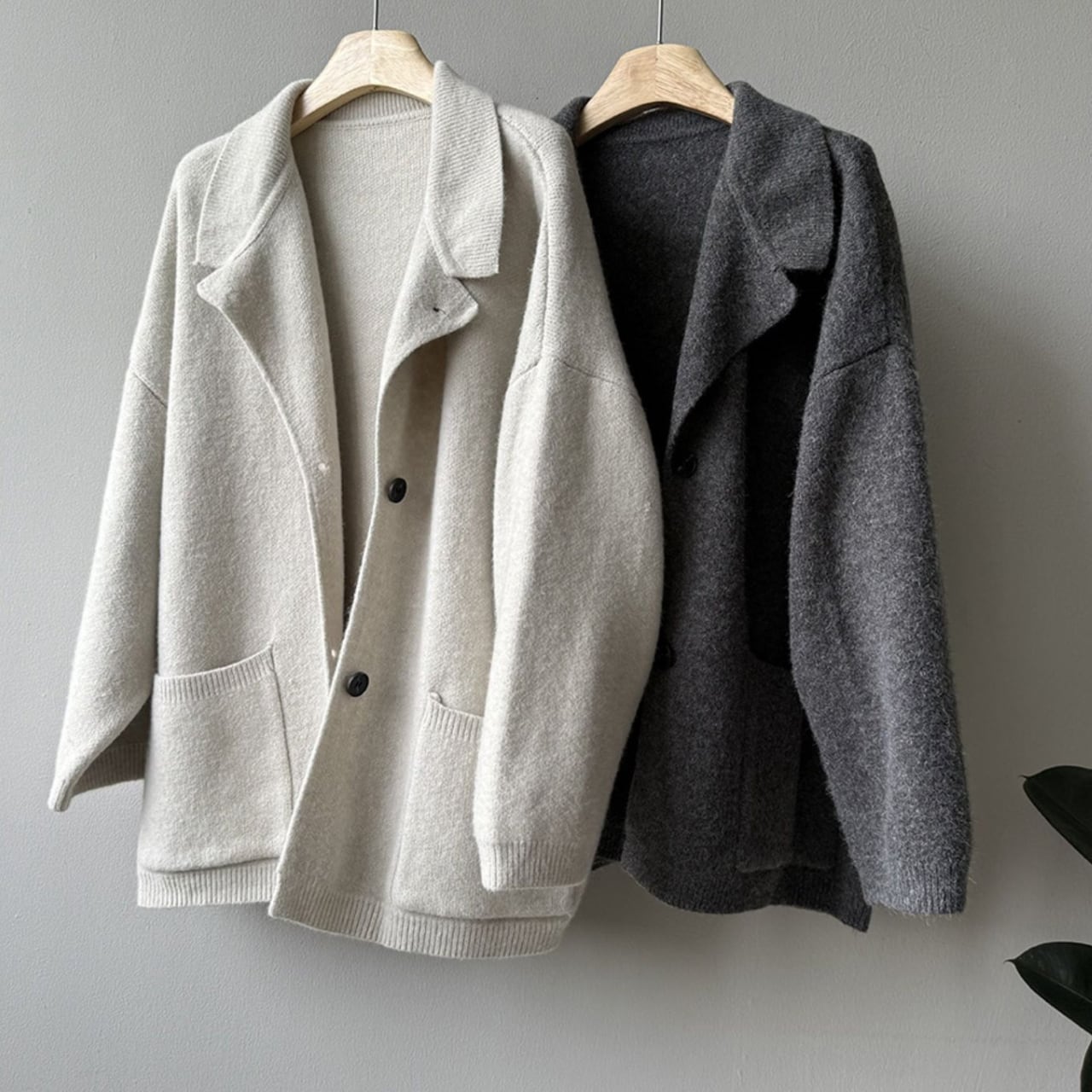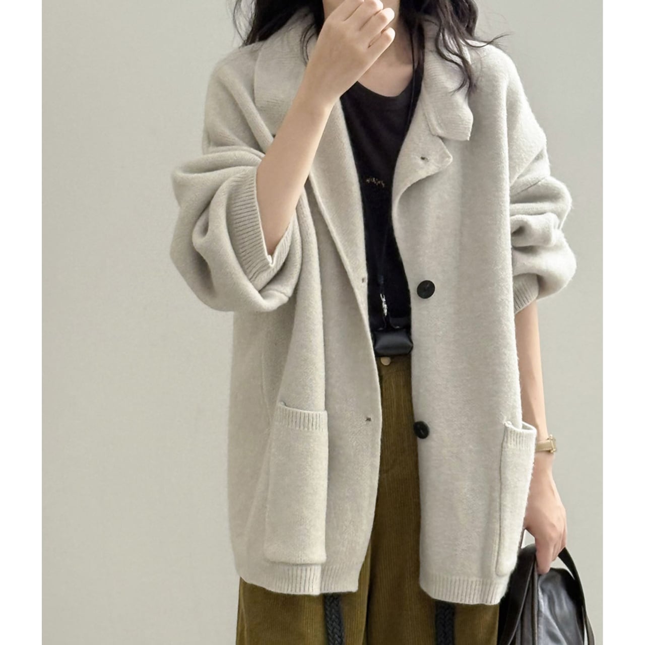 ボタンを留めてきちんと感を演出したり、前を開けてラフに羽織ったり、様々な着こなしが楽しめます。