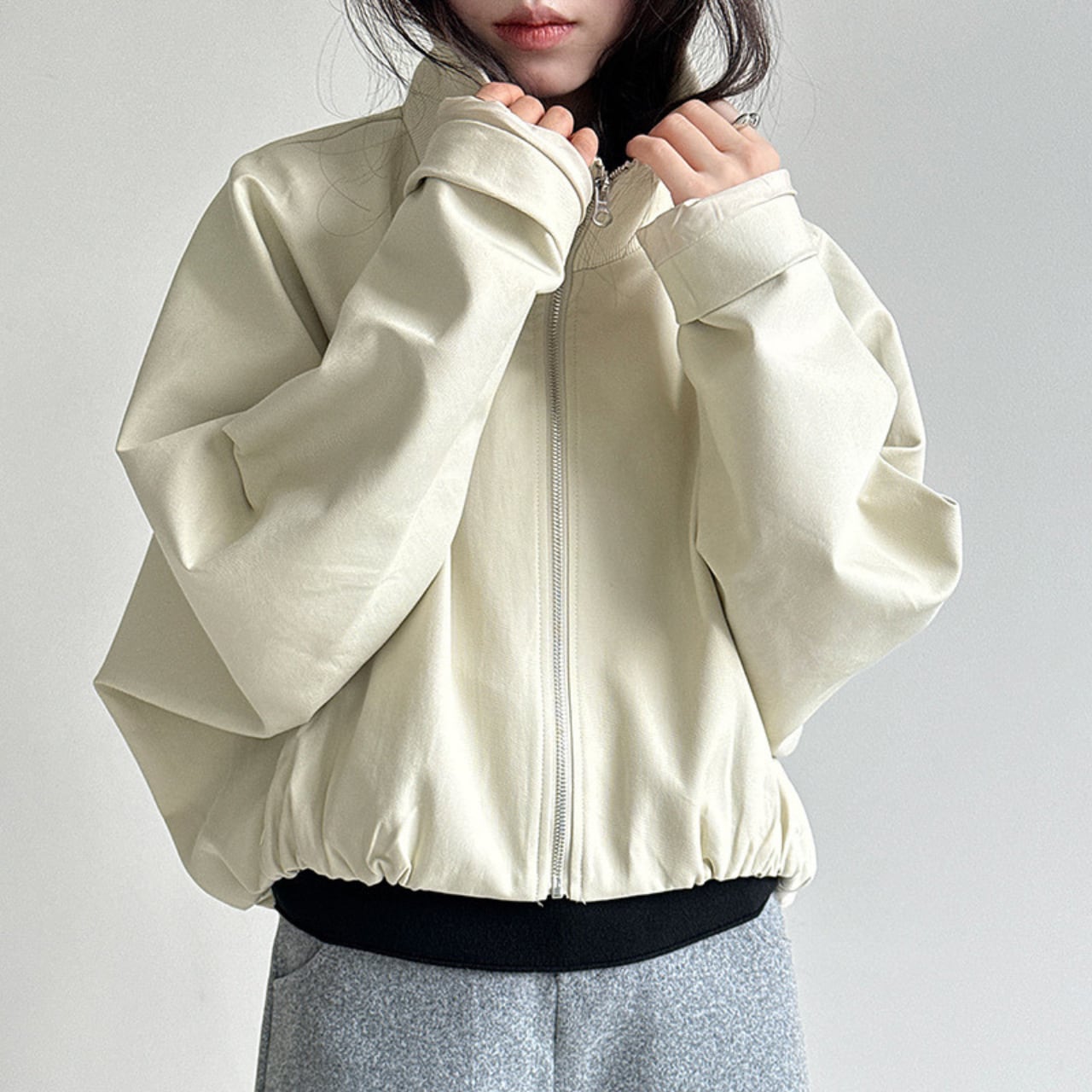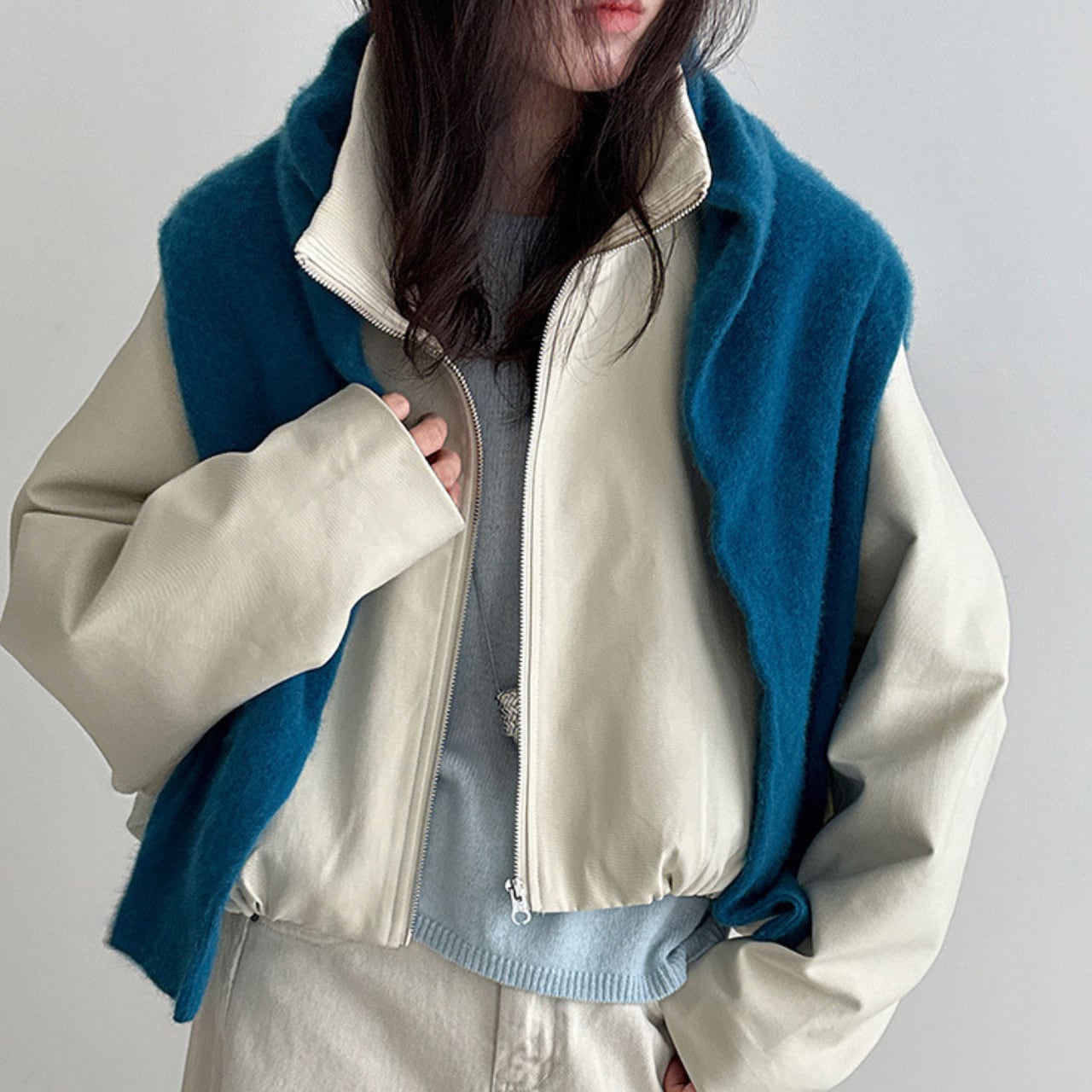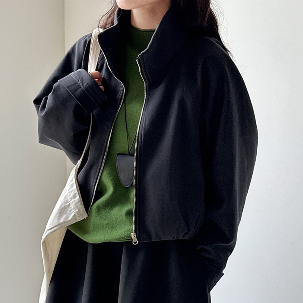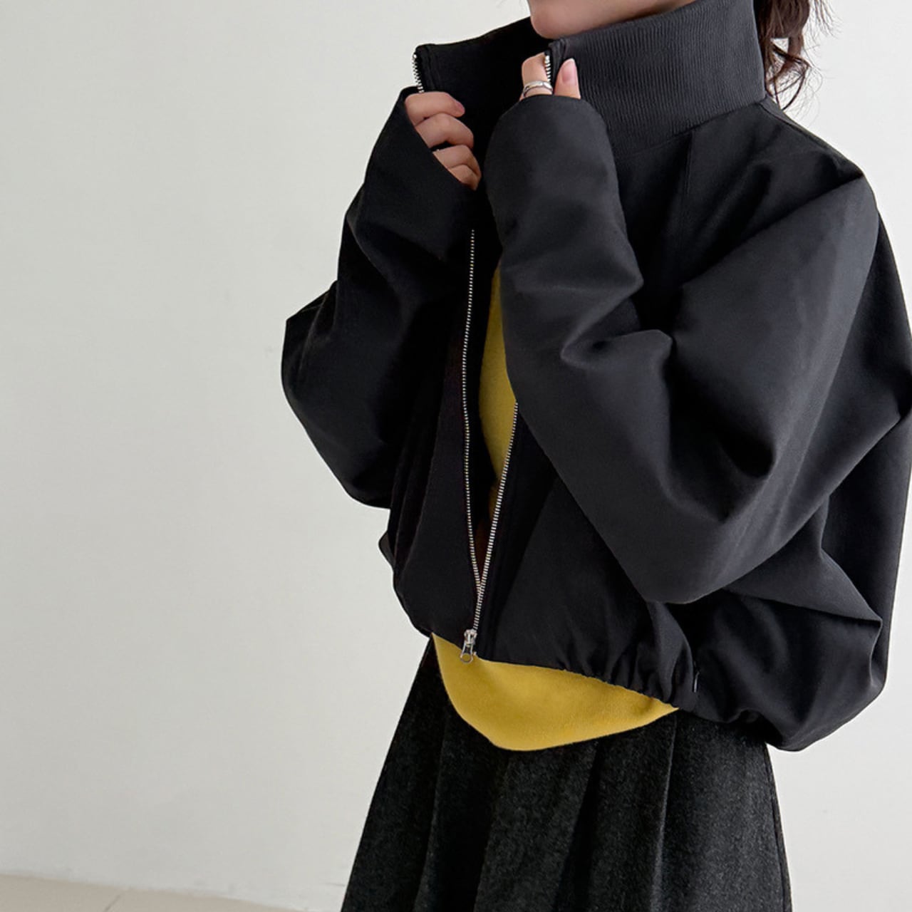 ジッパーを閉めてプルオーバー風に着こなすのもおすすめです。