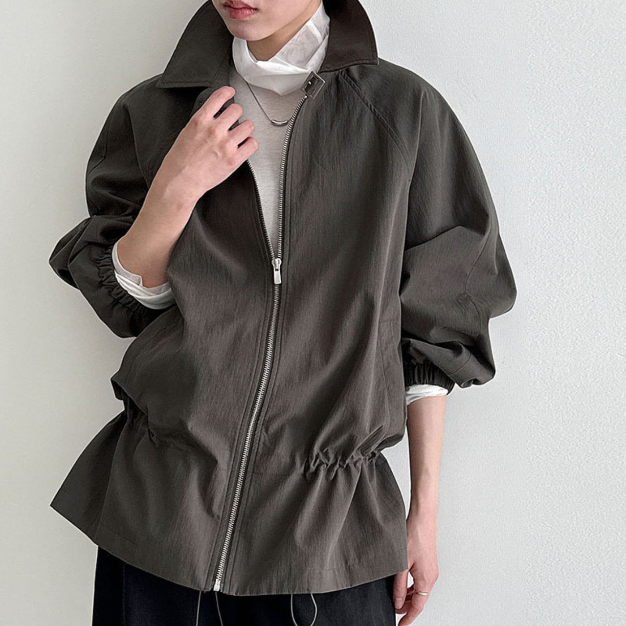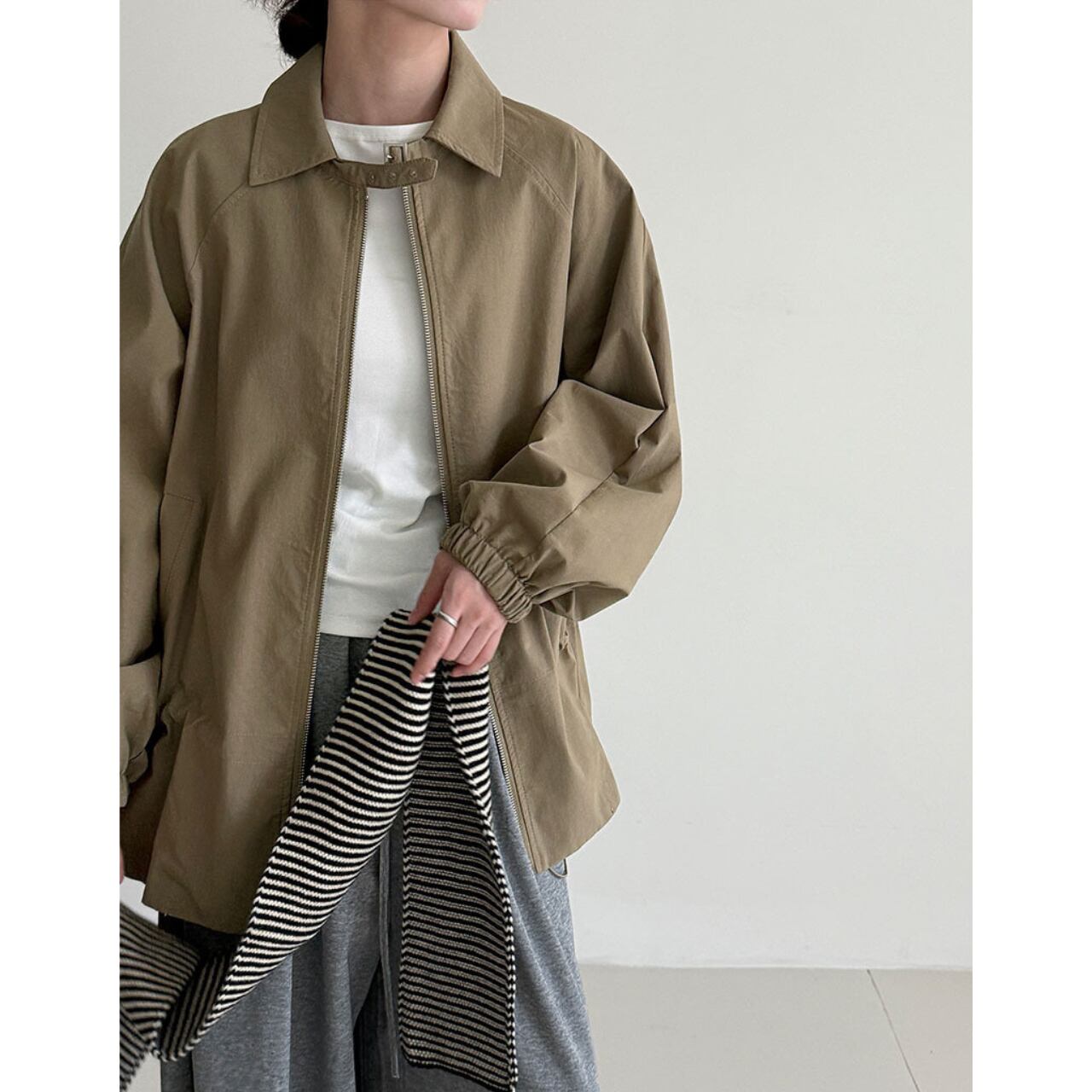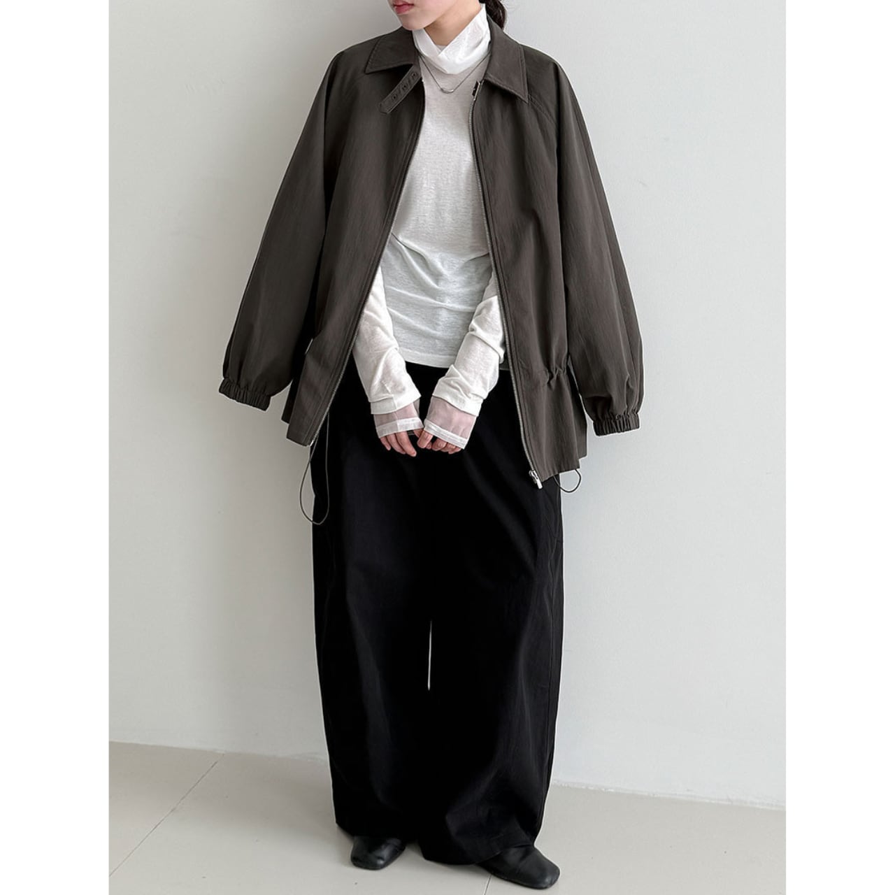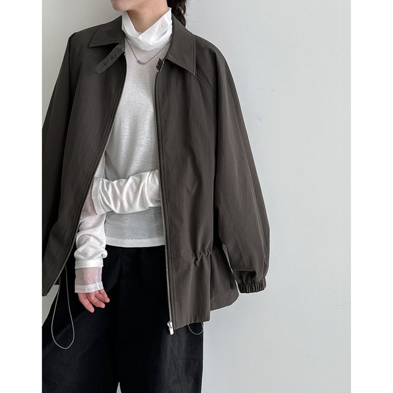 ジップを閉めてきちんと感を出すことも、あえて開けてラフに着こなすことも可能です。