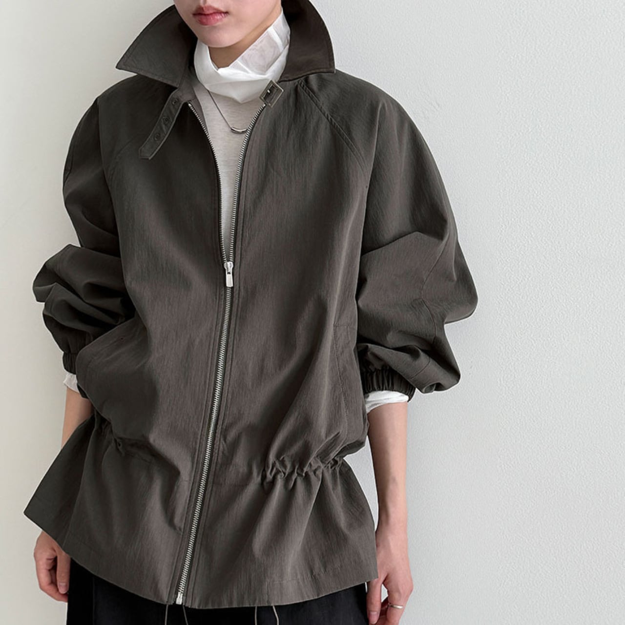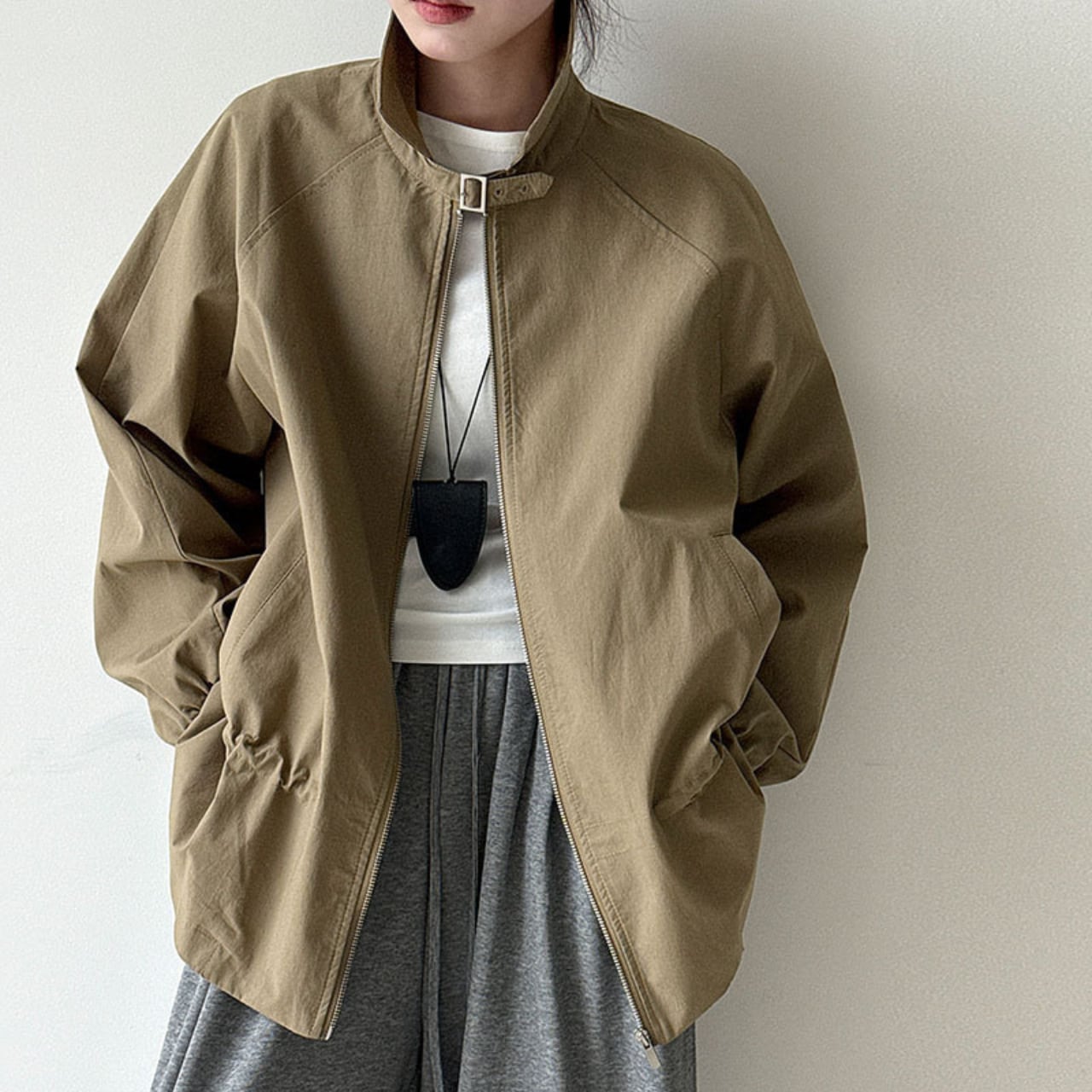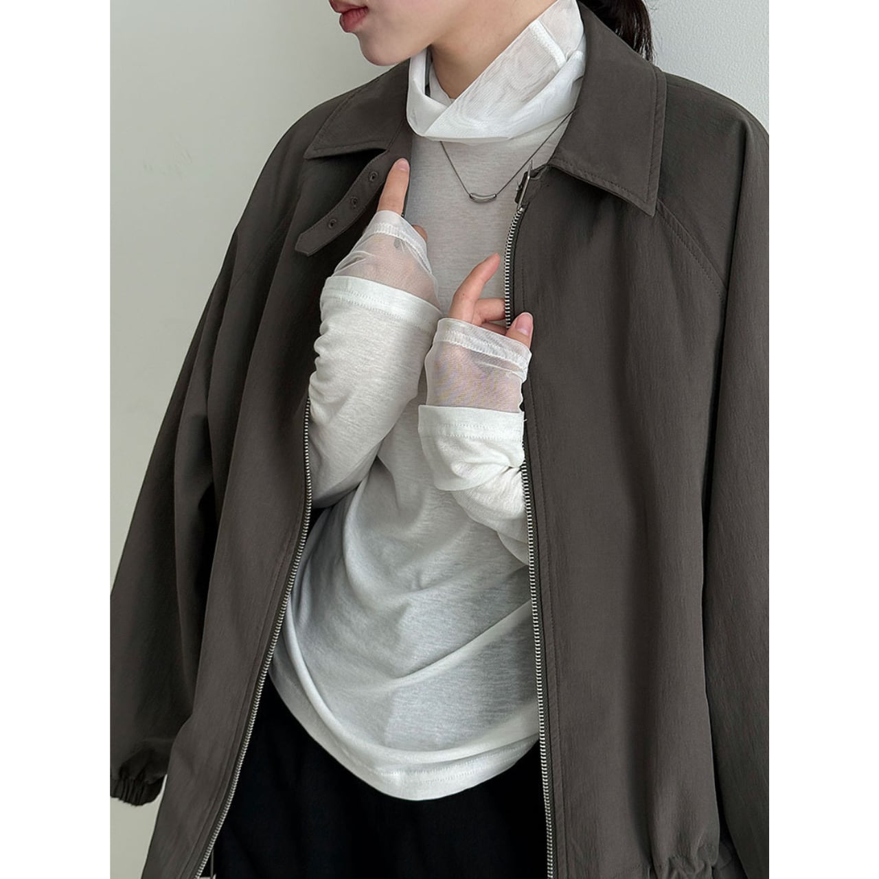 ジップを閉めてきちんと感を出すことも、あえて開けてラフに着こなすことも可能です。