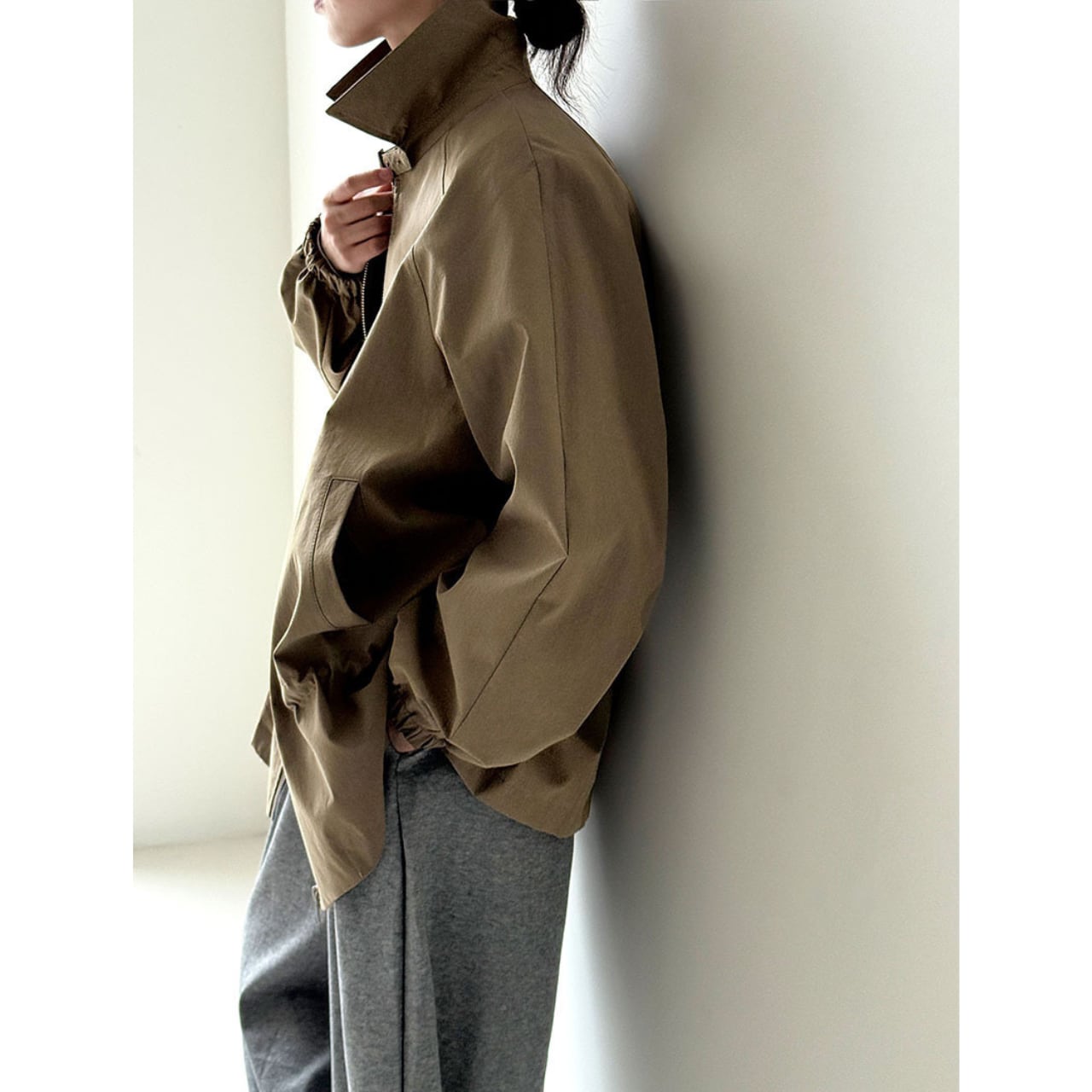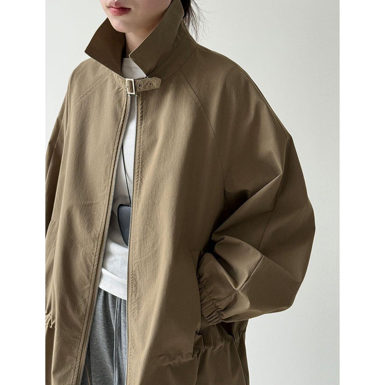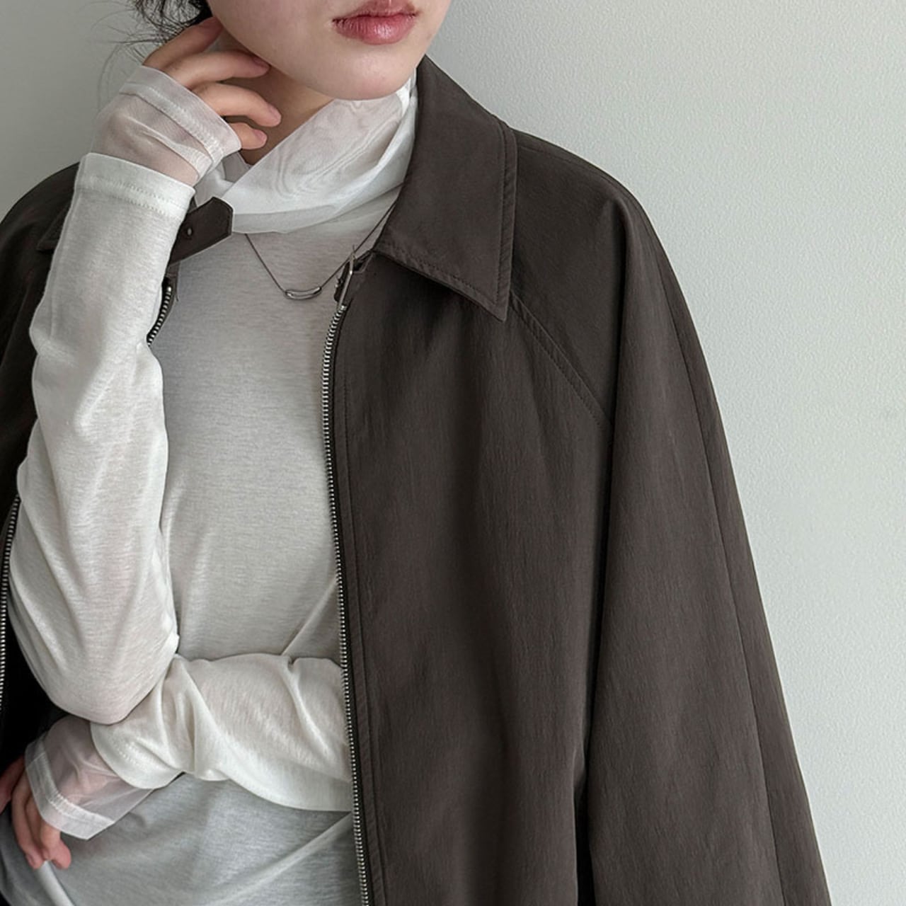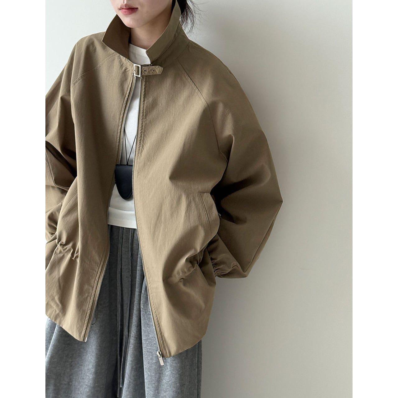 ジップを閉めてきちんと感を出すことも、あえて開けてラフに着こなすことも可能です。