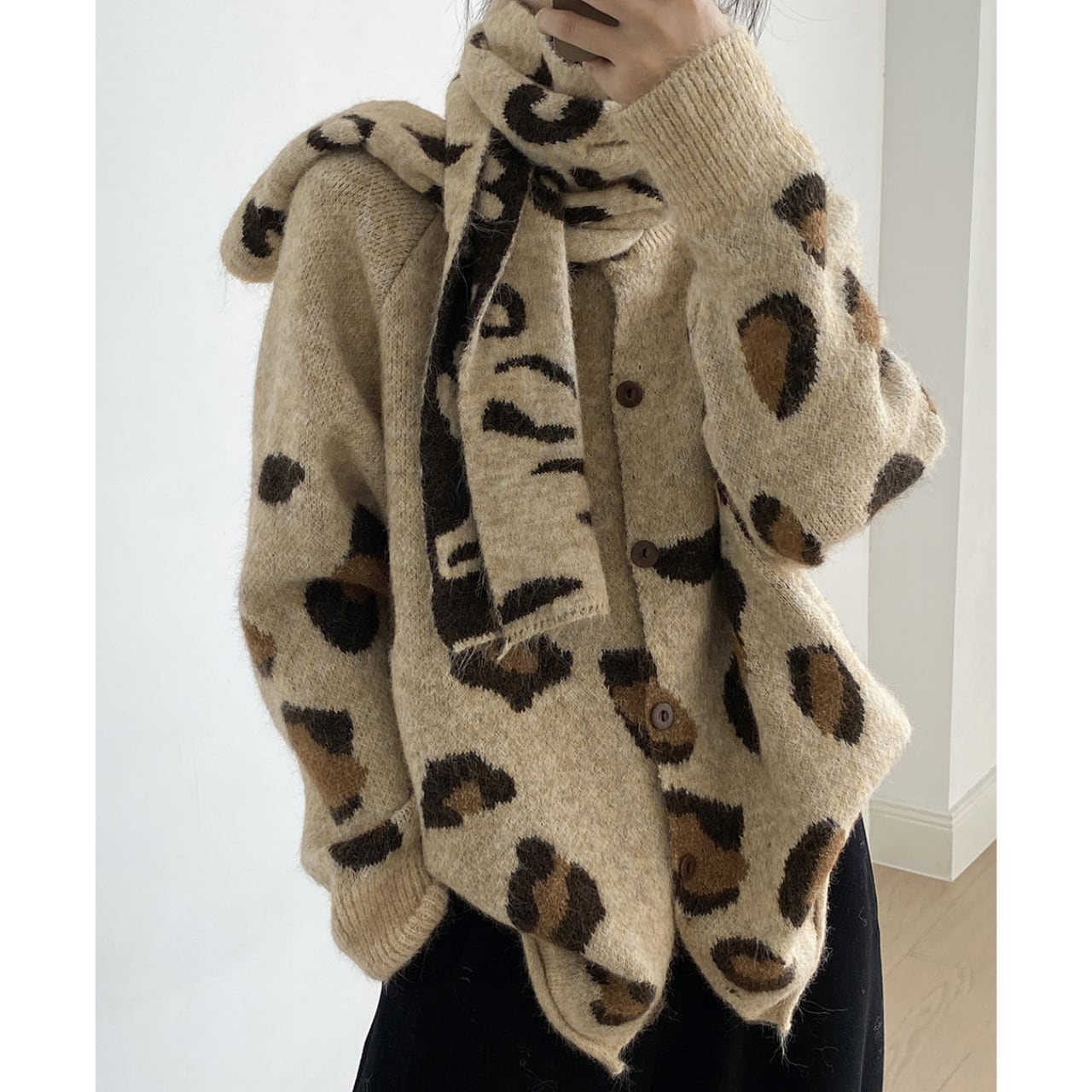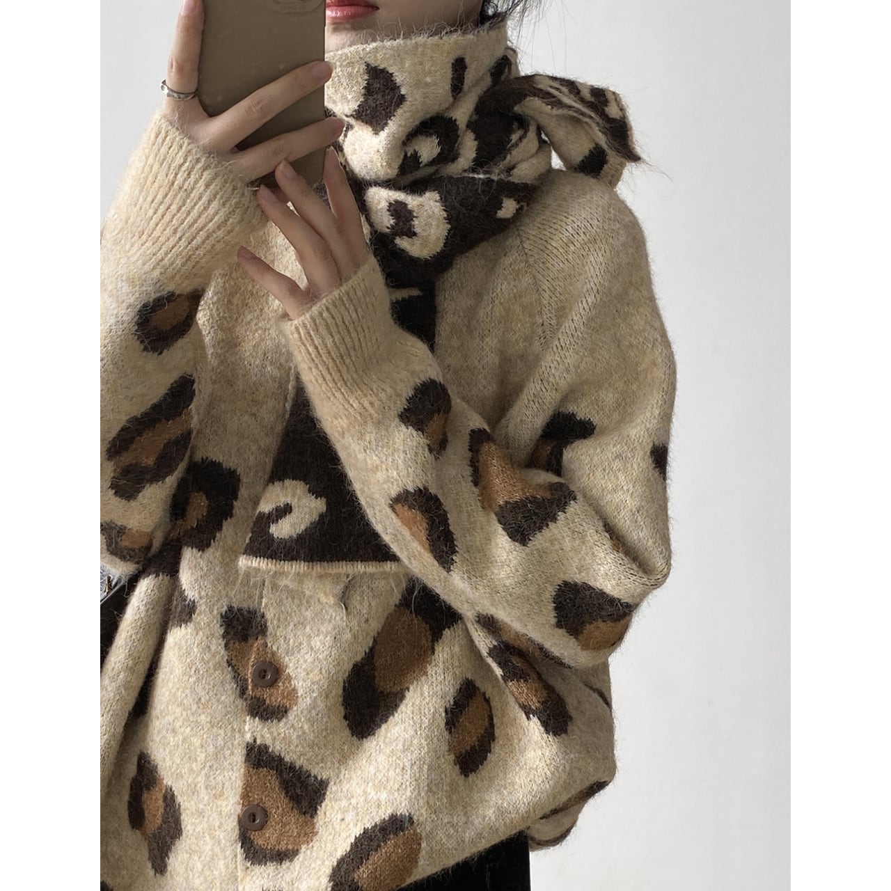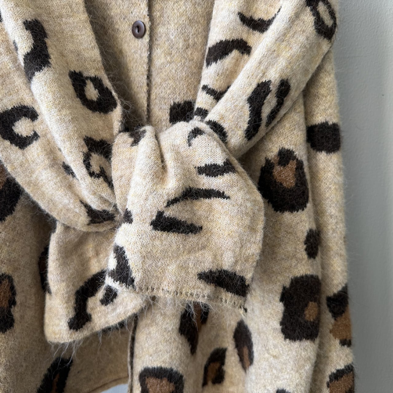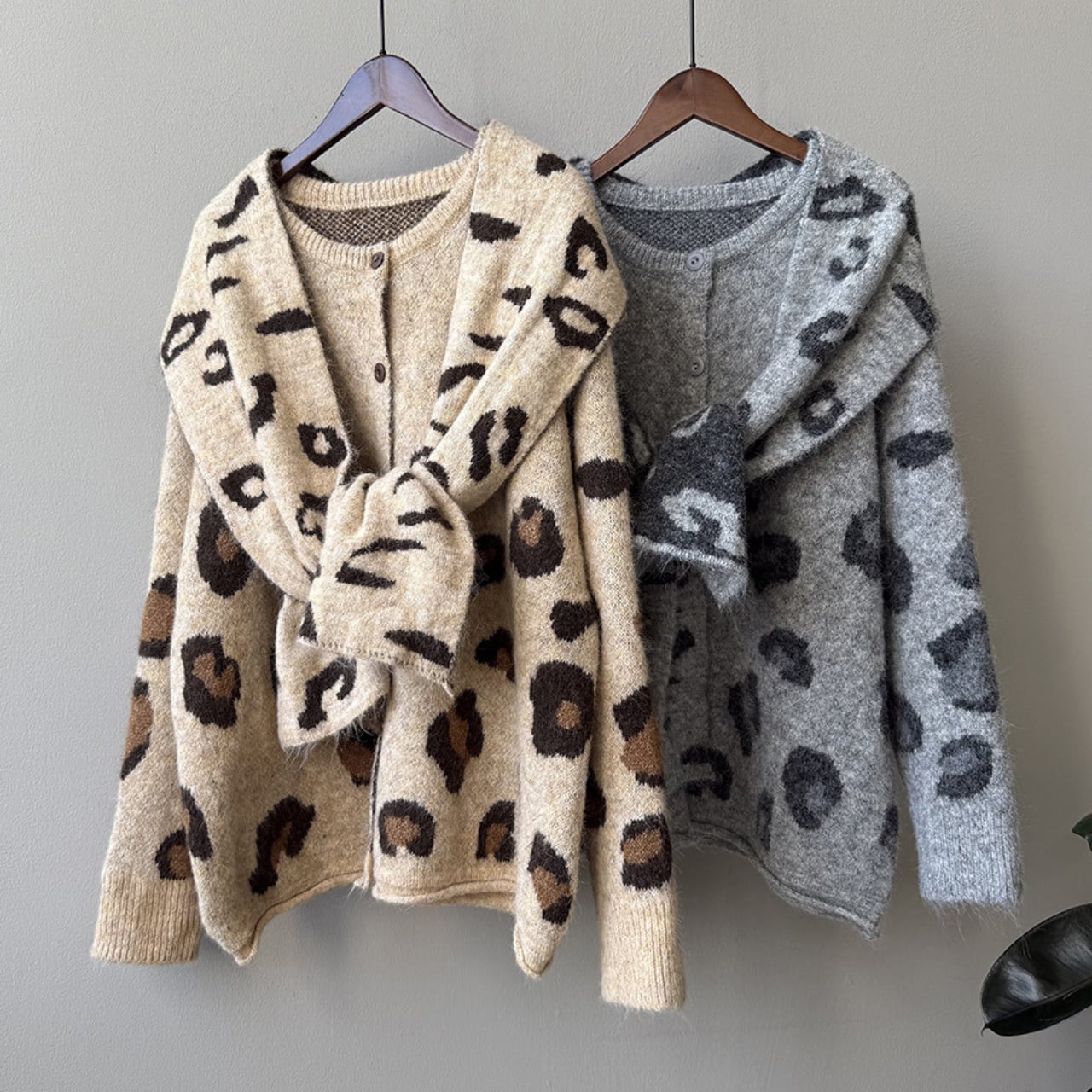 トレンドのレオパード柄が魅力的なニットカーディガン。