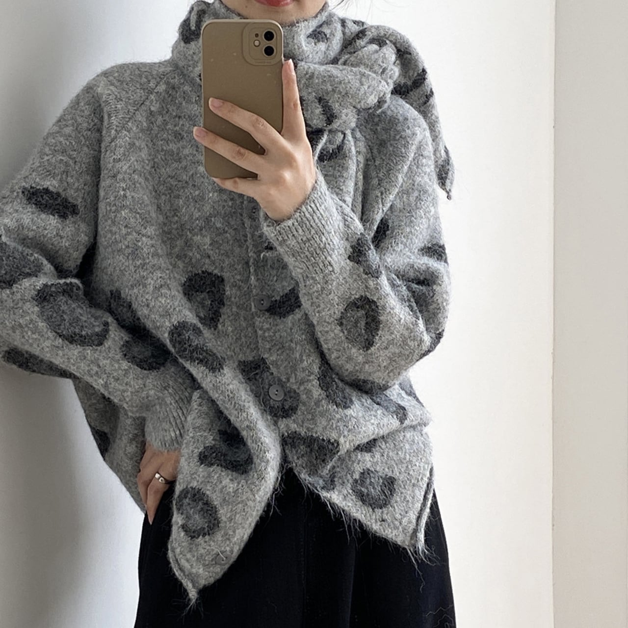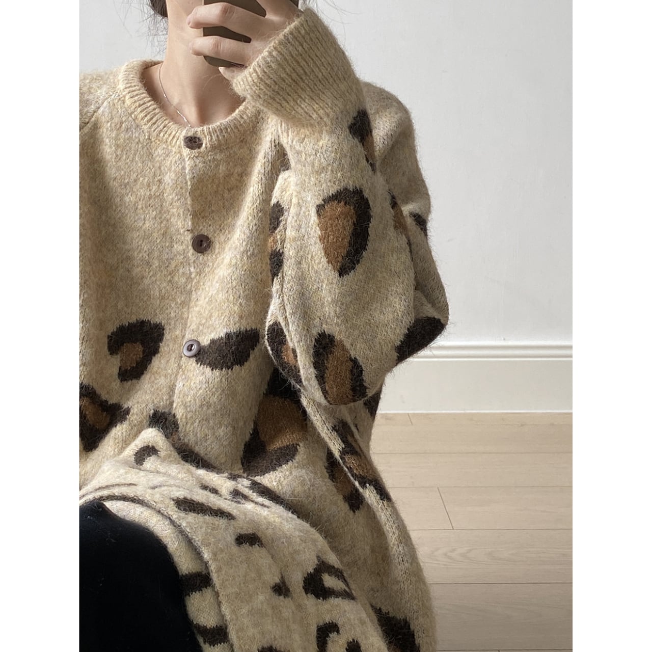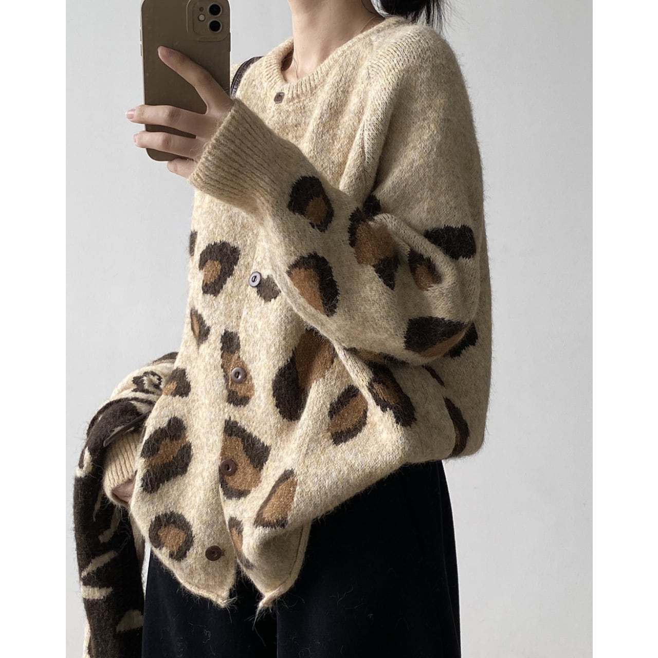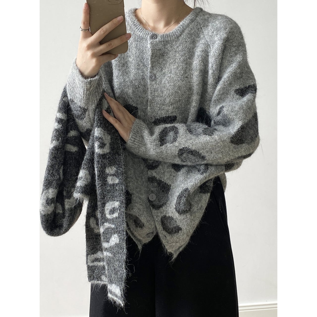 トレンドのレオパード柄が魅力的なニットカーディガン。