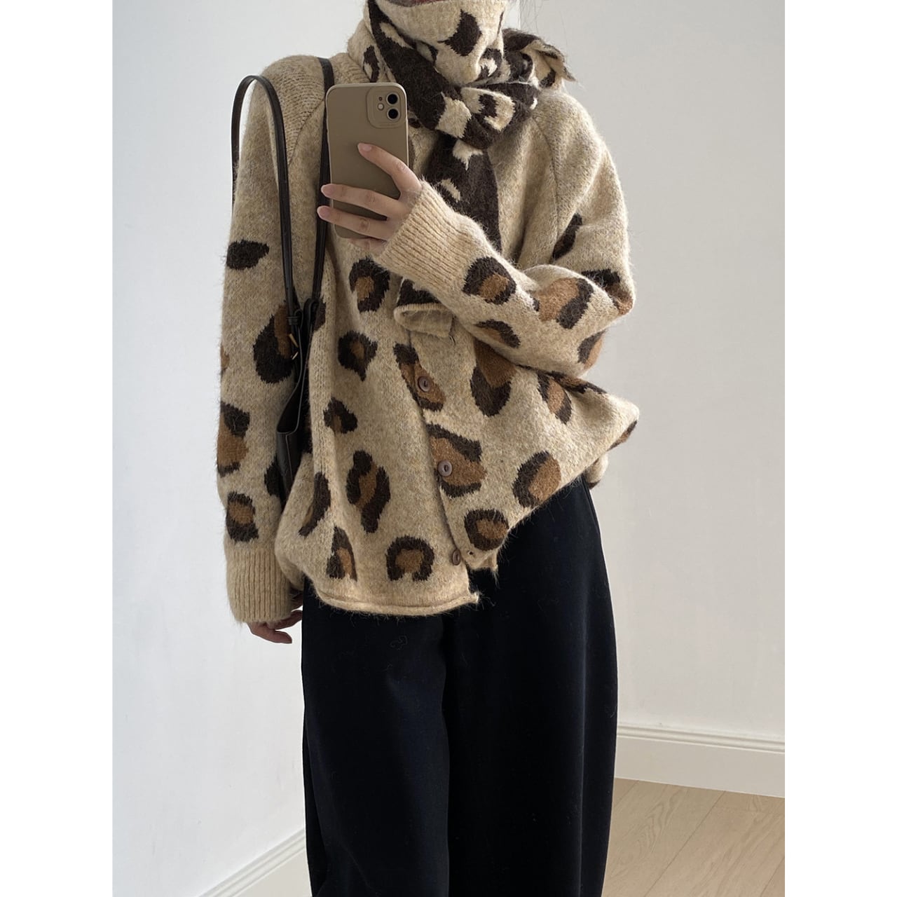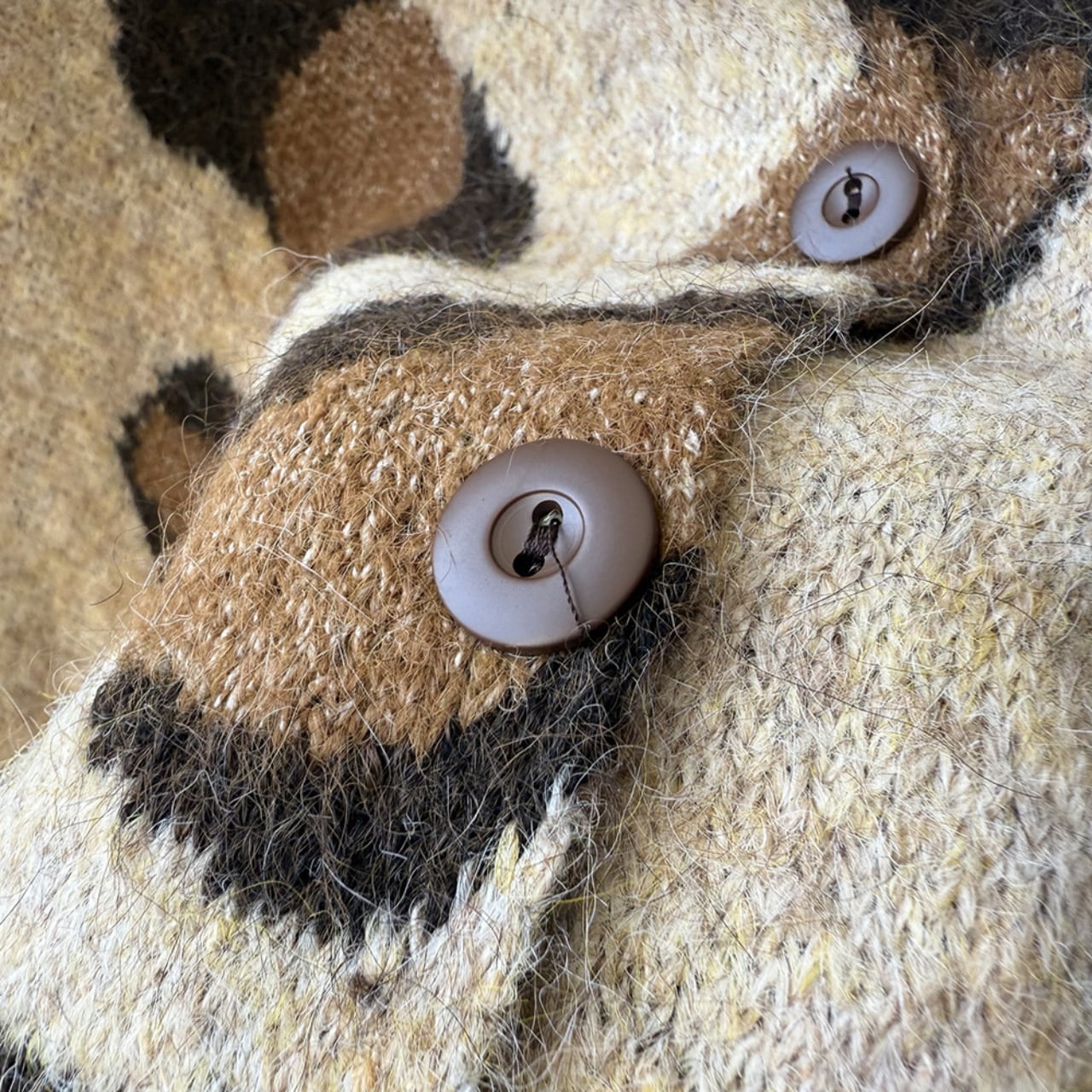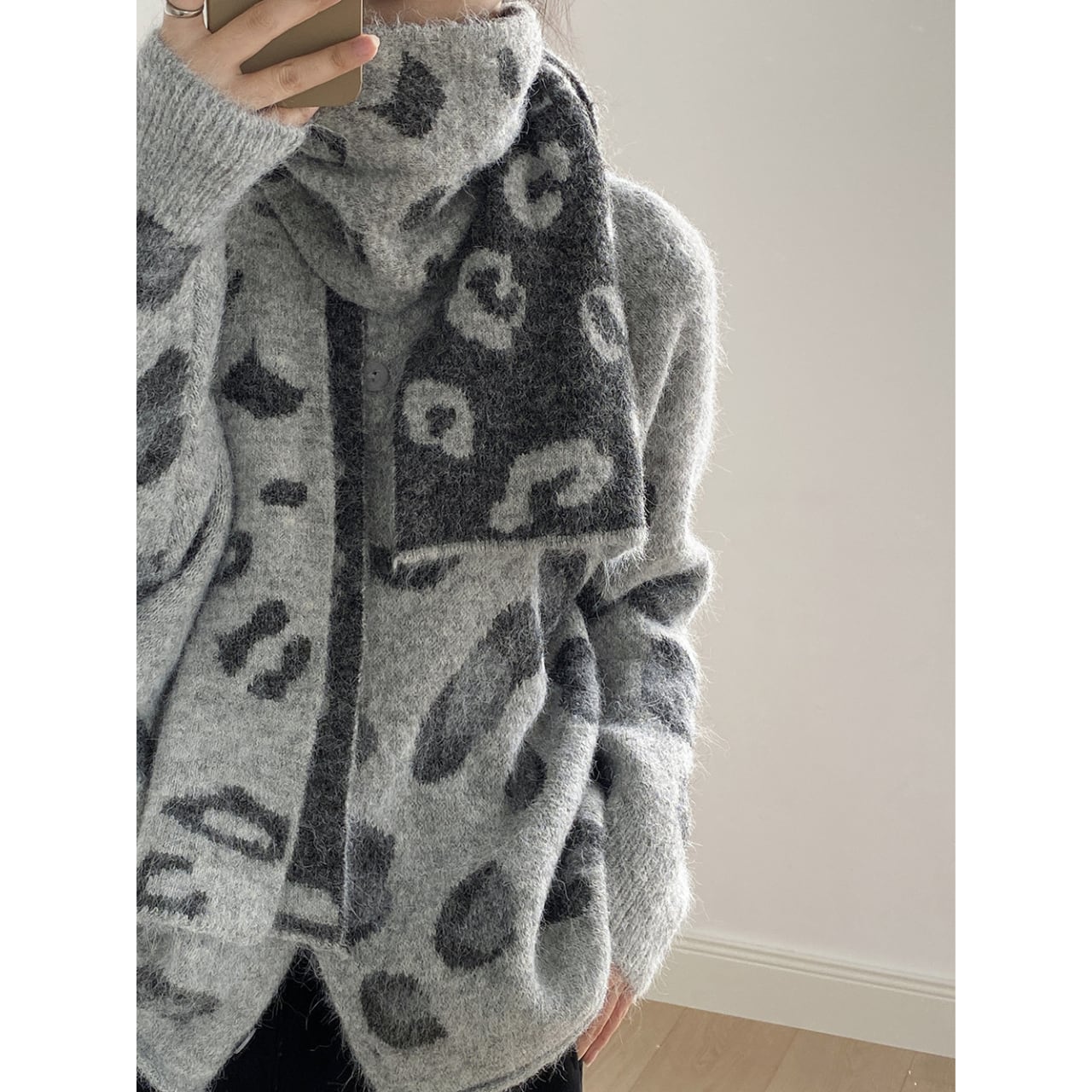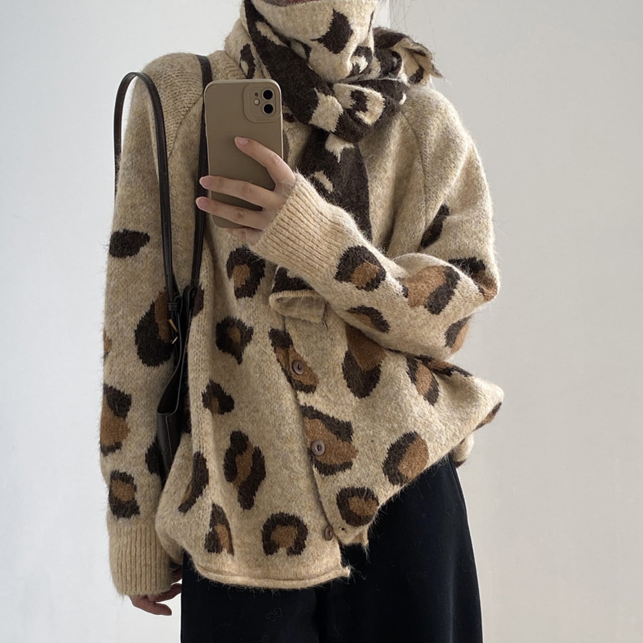 トレンドのレオパード柄が魅力的なニットカーディガン。