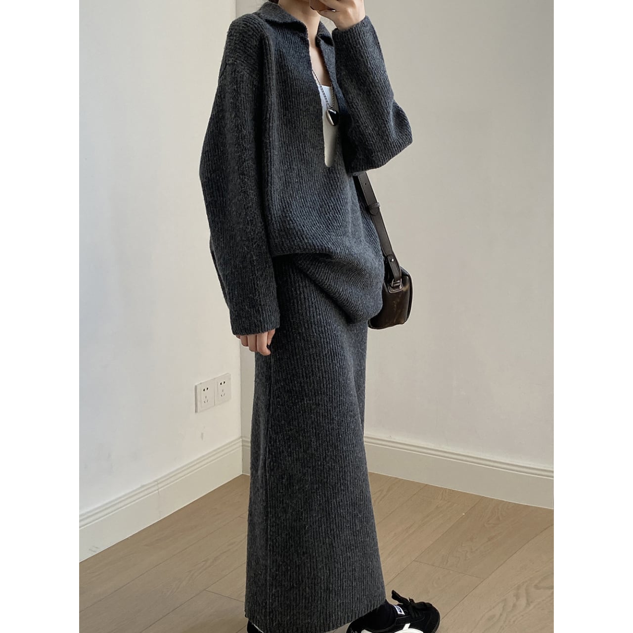 ミモレ丈のスカートと合わせることで、より女性らしいシルエットを演出できます。