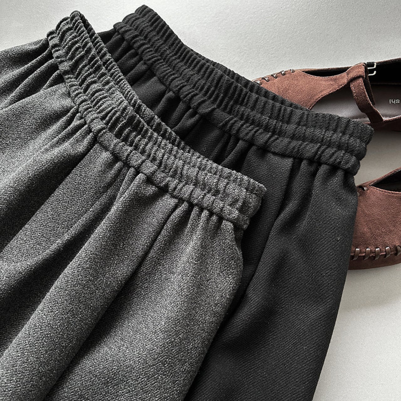 ウエストゴム仕様で、ストレスフリーな着心地を実現。