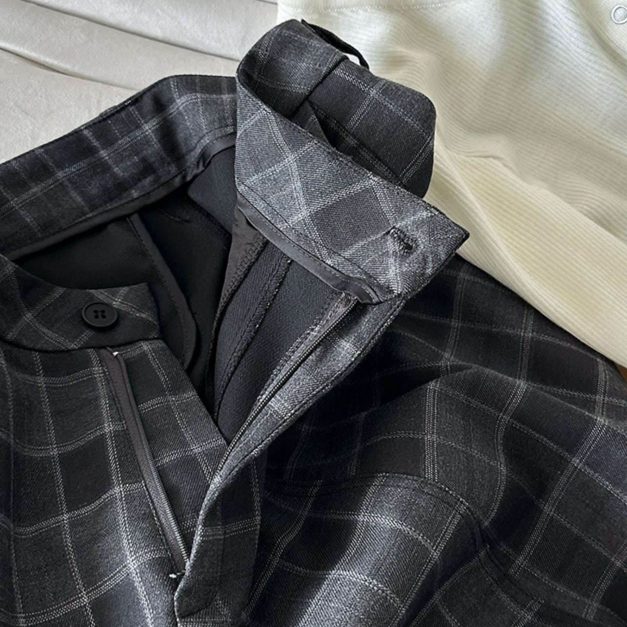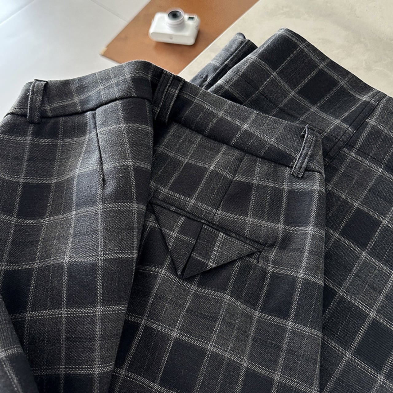 落ち着いた色合いのチェック柄が、大人の着こなしを格上げします。