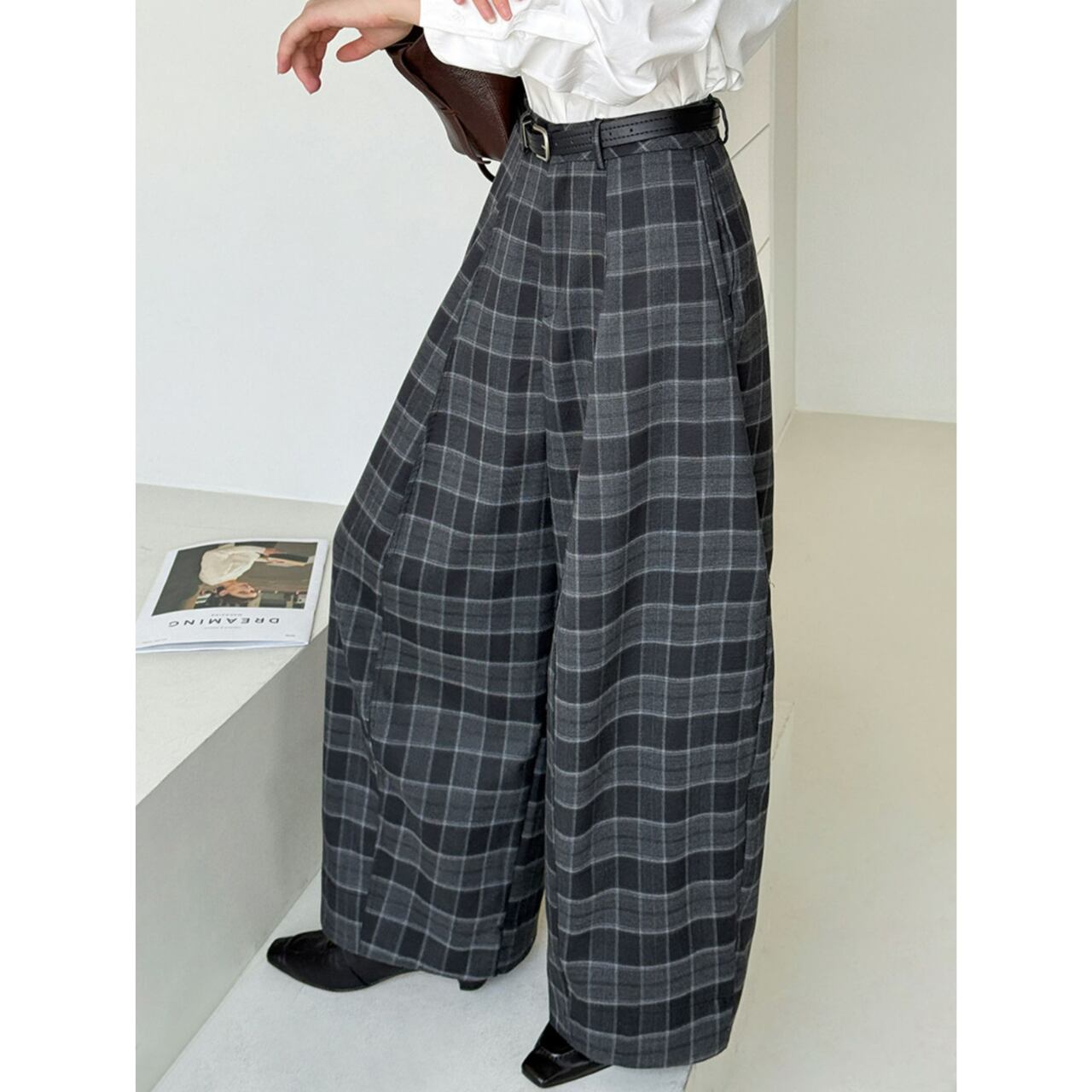 チェック柄ワイドパンツ N00151