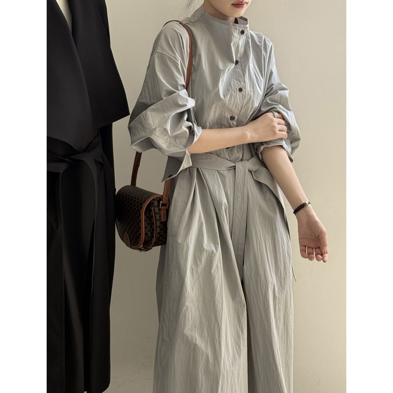 セットのベルトでウエストマークすれば、スタイルアップ効果も期待できます。