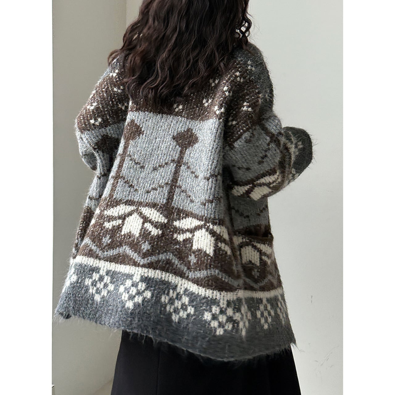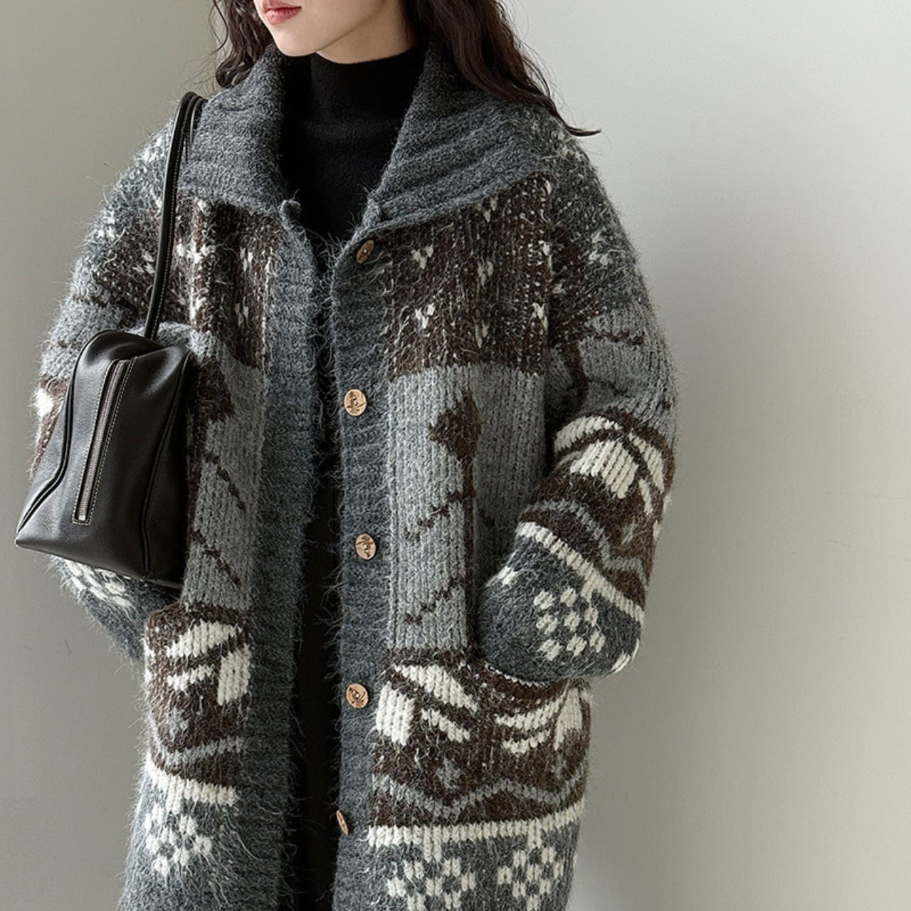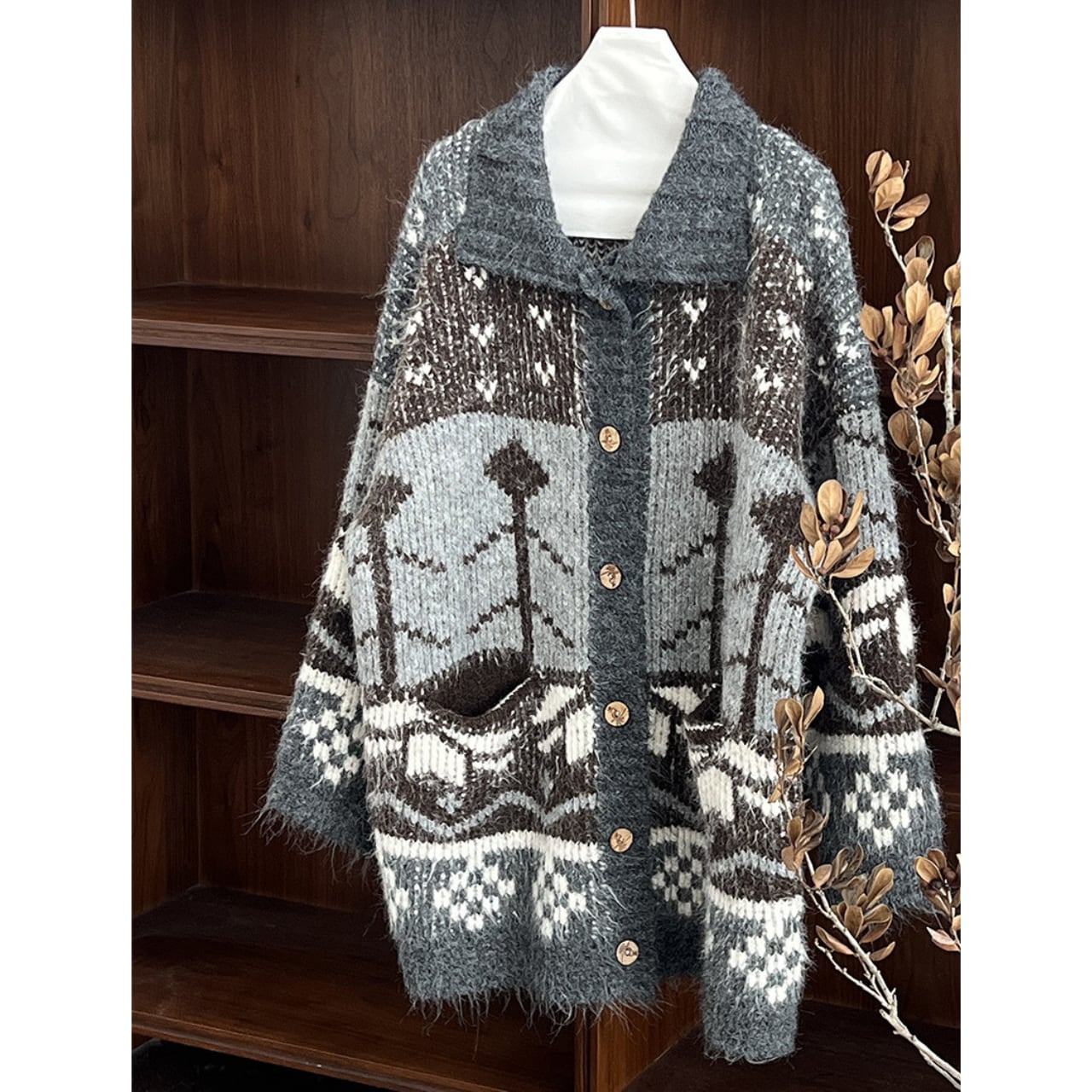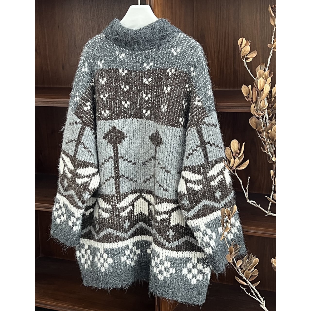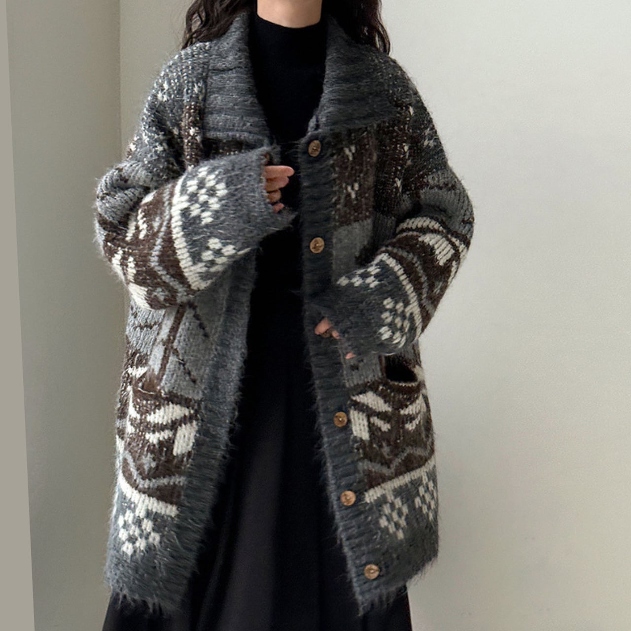 落ち着いた色合いと個性的な柄が、コーディネートに深みを加えます。