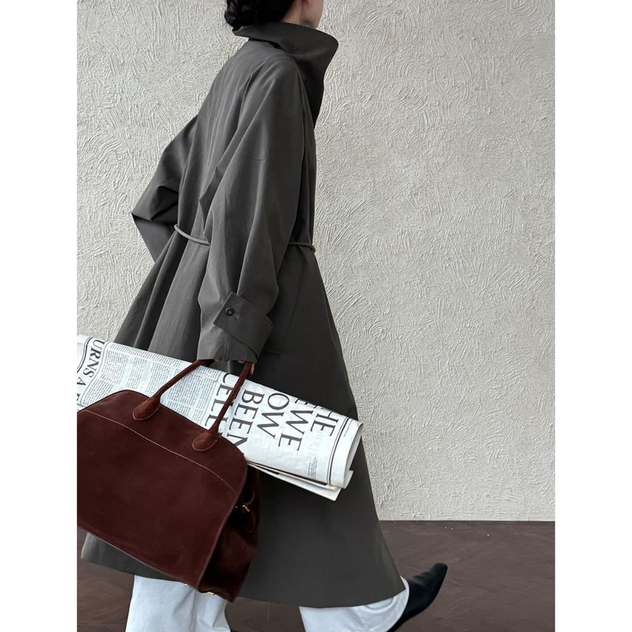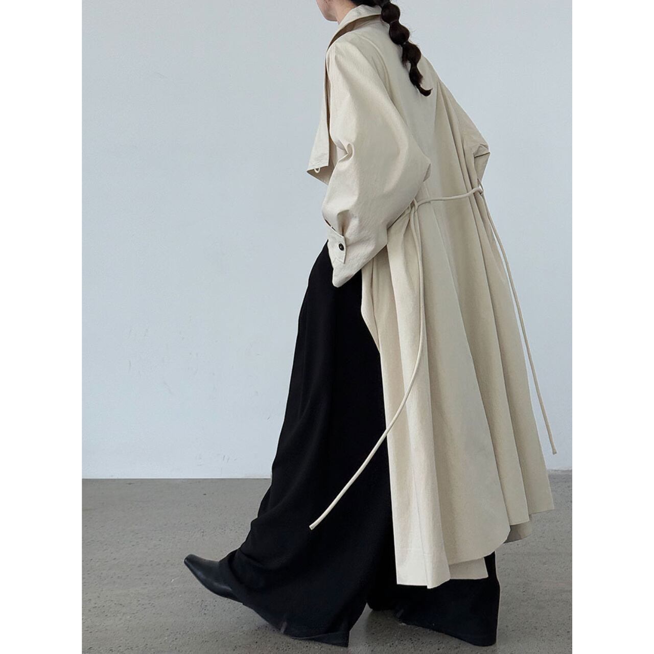 ベルトを締めれば、シルエットの変化を楽しめます。