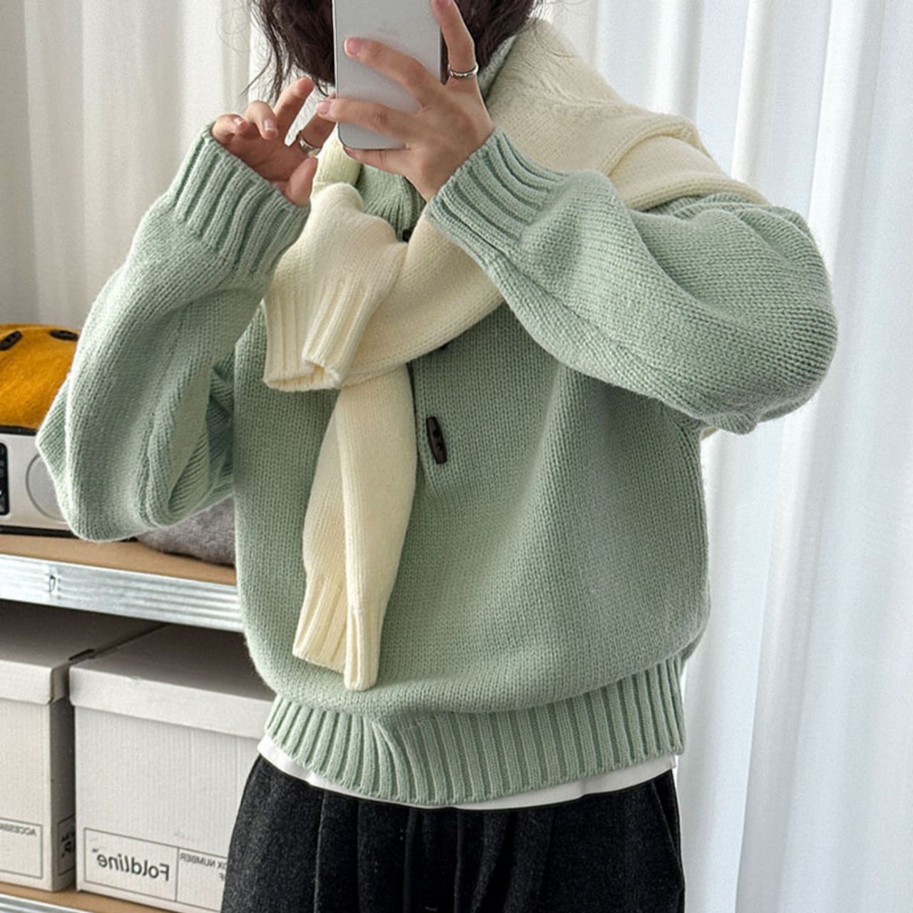 首元まで暖かく、シンプルながらも洗練されたデザインが魅力です。