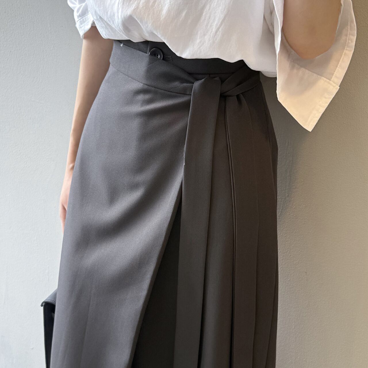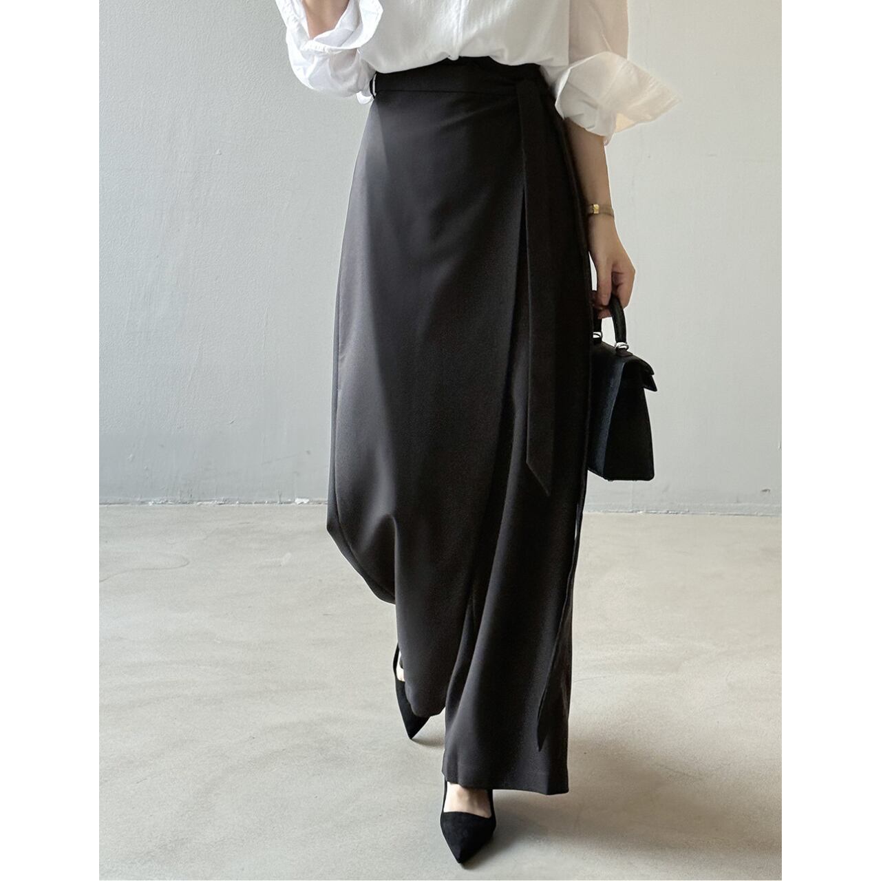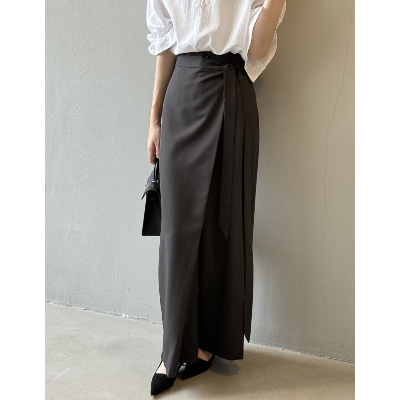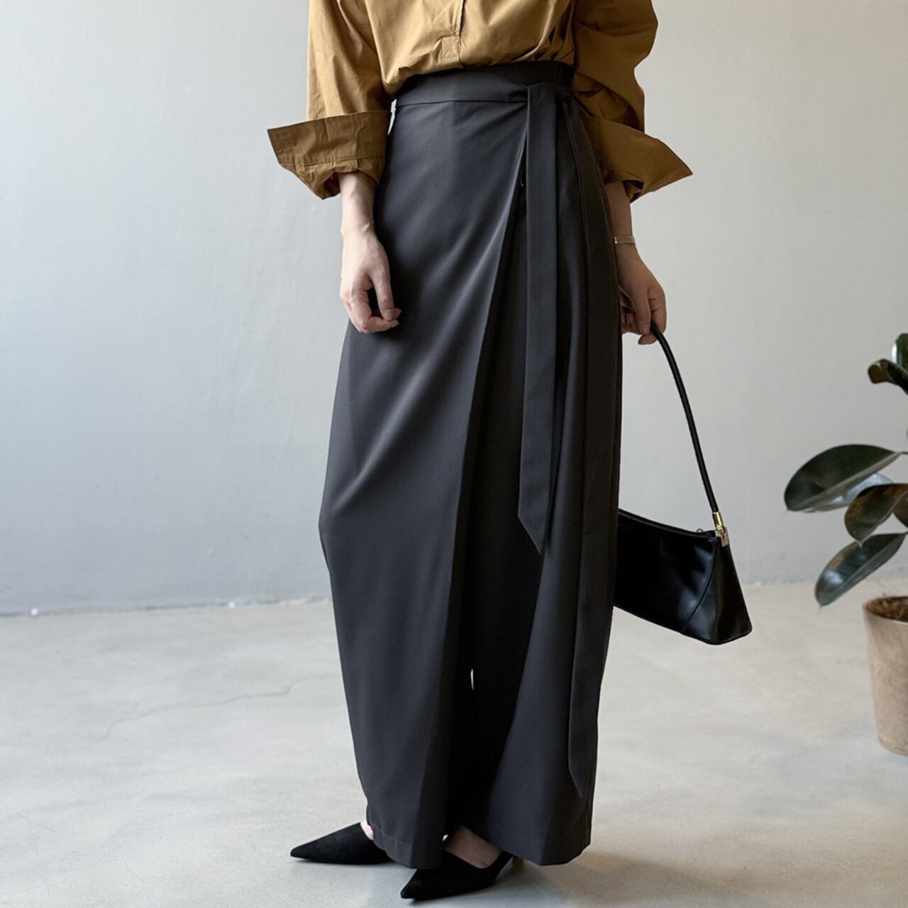 ベルトがアクセントになり、シンプルなトップスとの相性も抜群です。