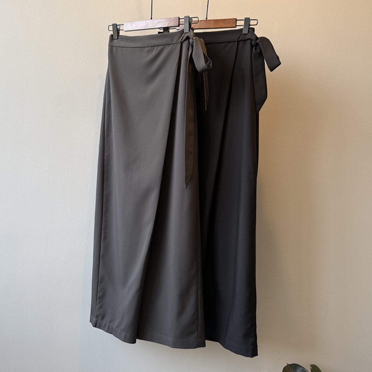 流れるようなドレープが魅力のスーツパンツ。