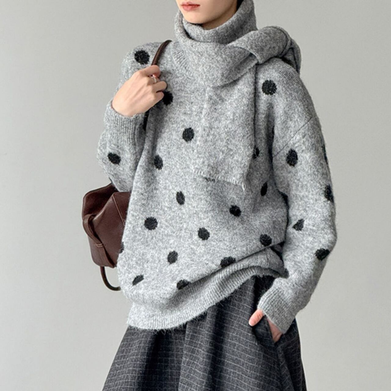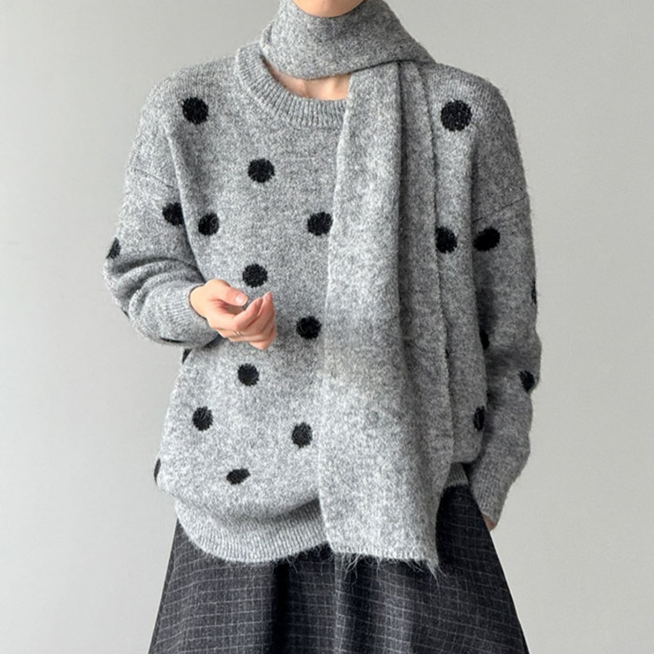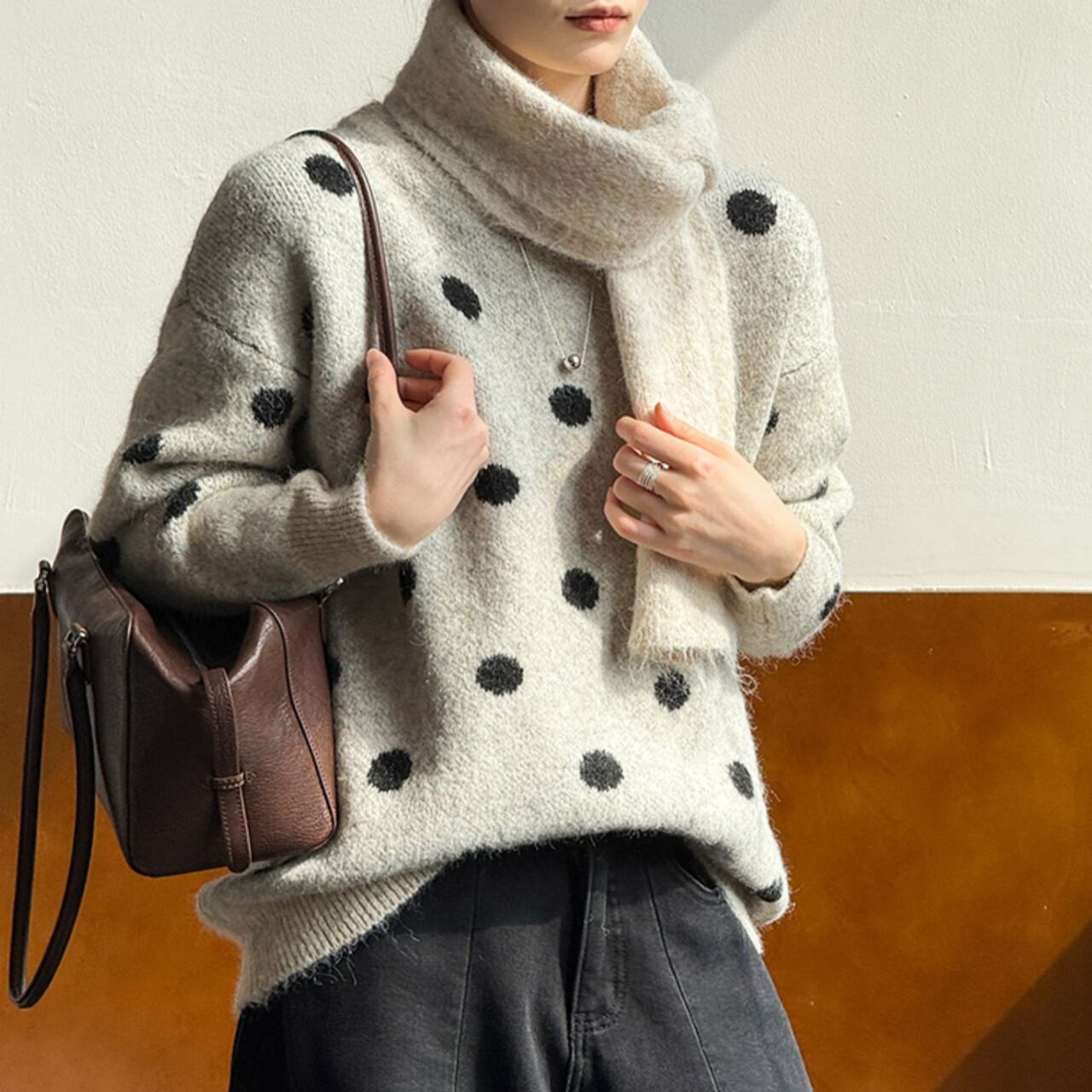 着るだけで気分が上がる、ドット柄ニット。