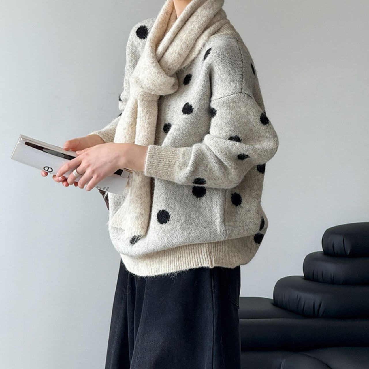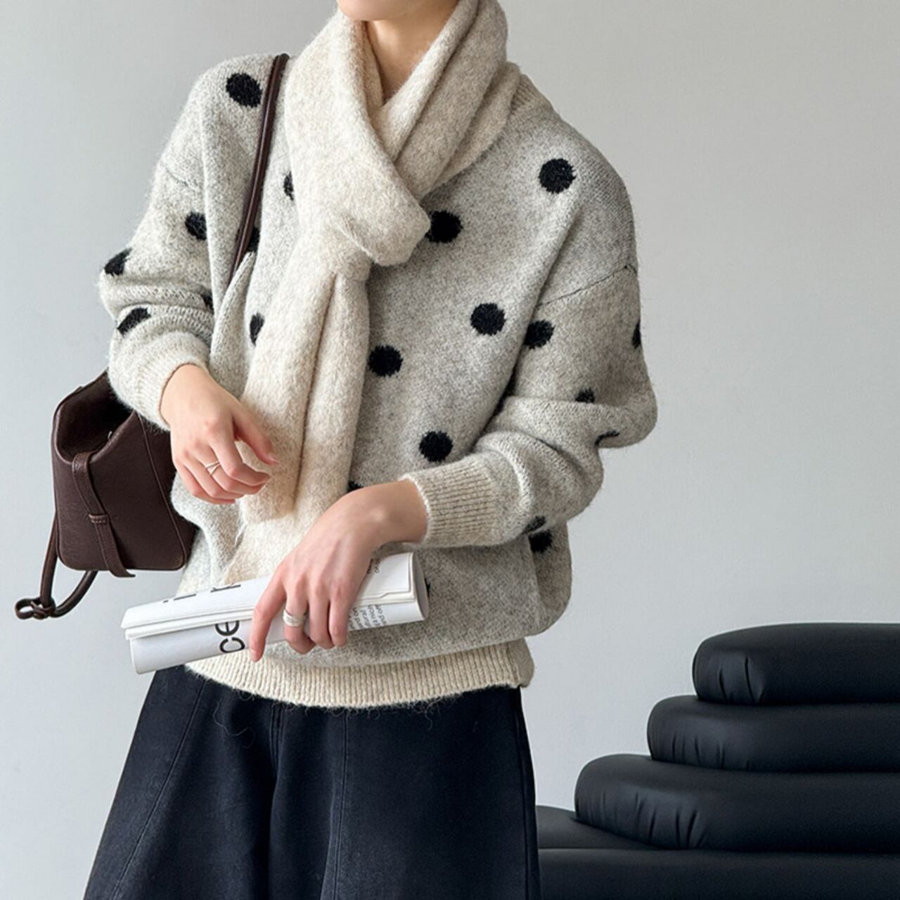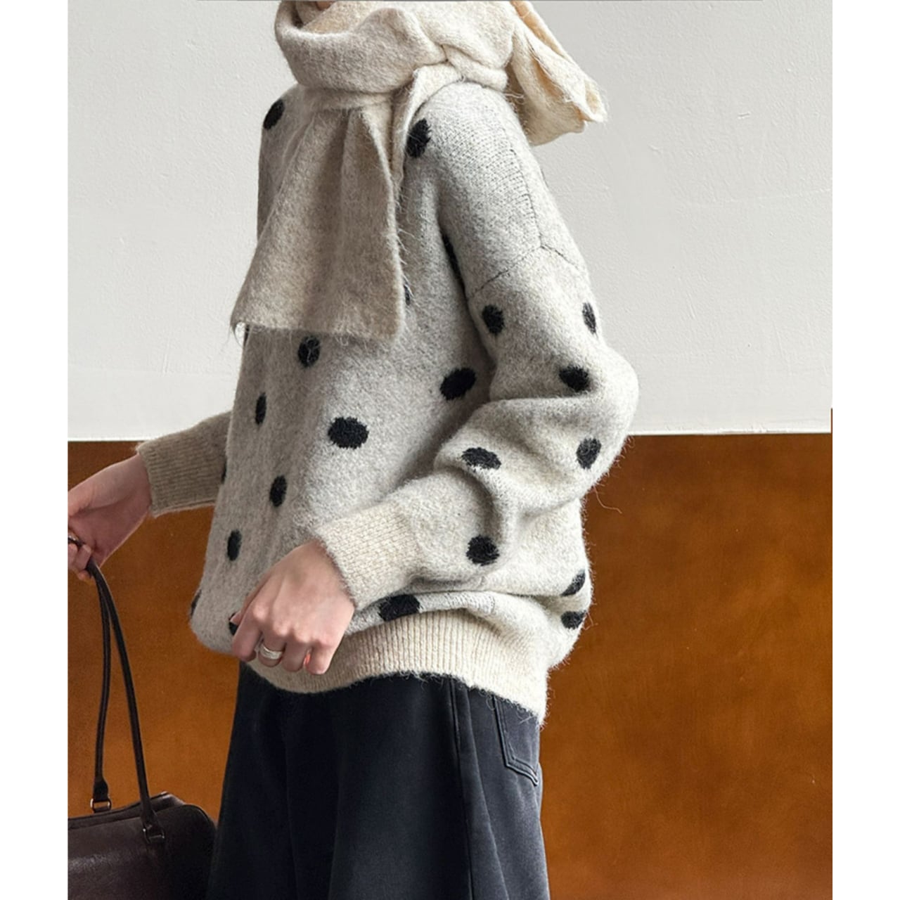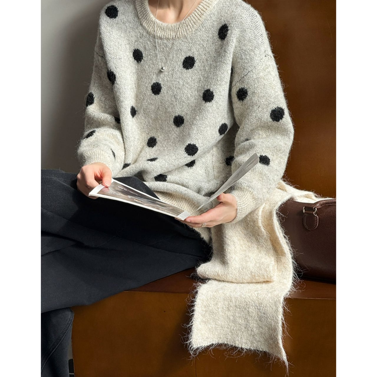着るだけで気分が上がる、ドット柄ニット。