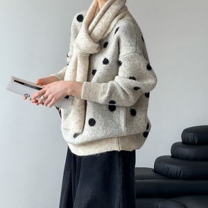 ドット柄 クルーネックニット N00172