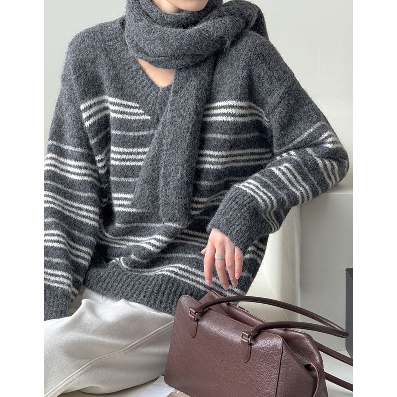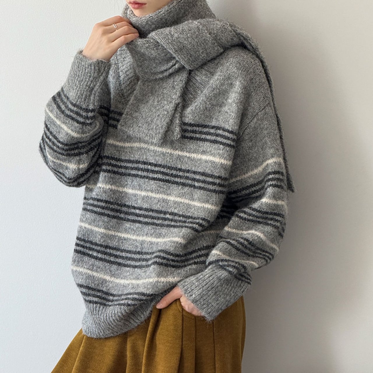 セットのマフラーでアレンジして、秋口から春先まで長く着用可能。