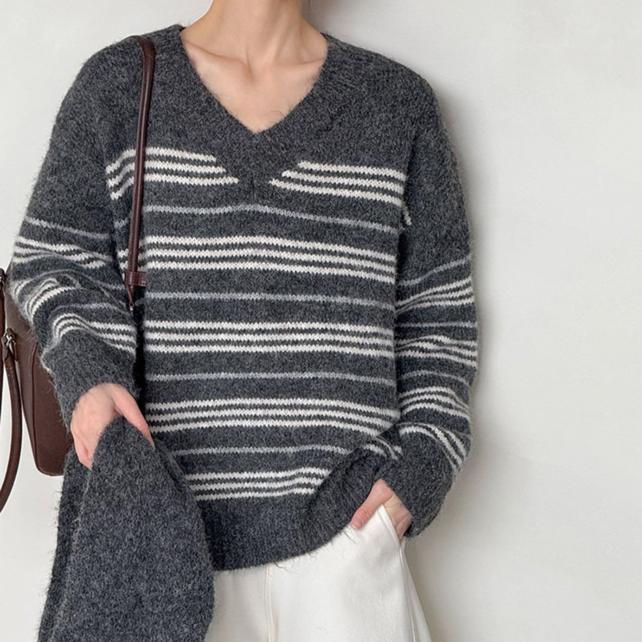 シンプルなボーダー柄が、カジュアルながらも洗練された印象を与えます。