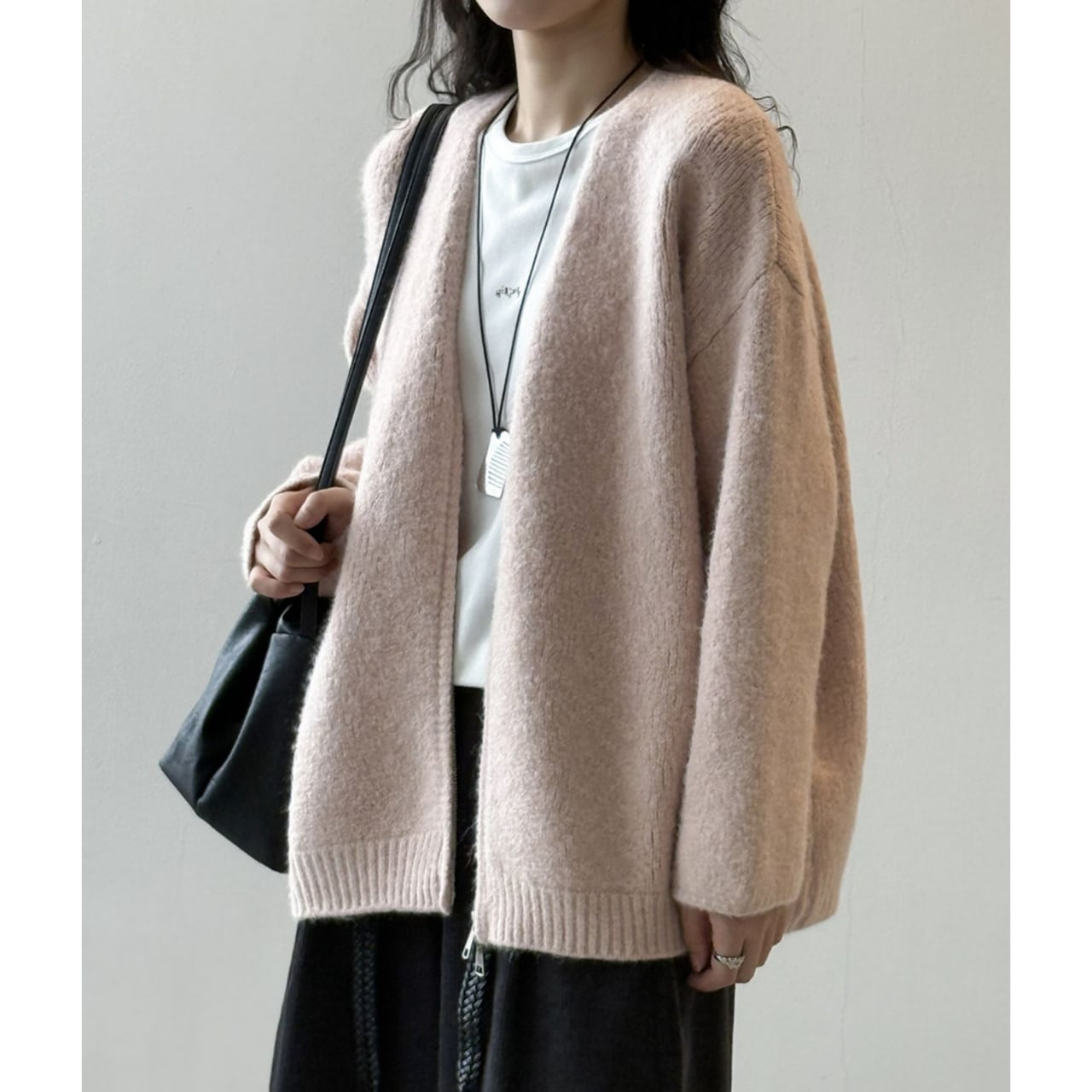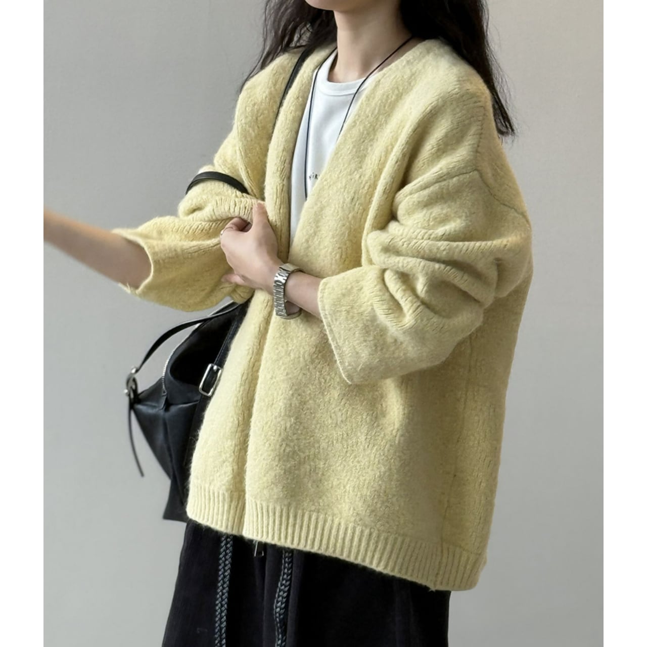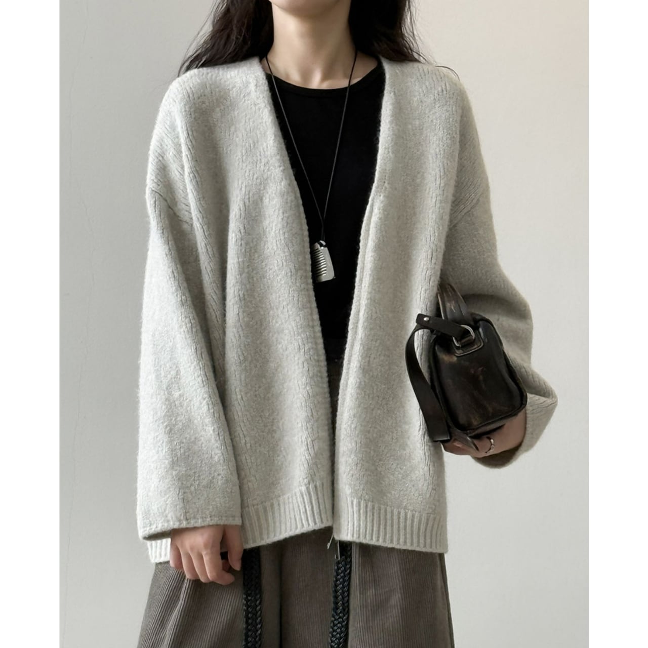 ゆったりとしたシルエットがこなれ感を演出し、リラックスした着心地を提供するカーディガン。