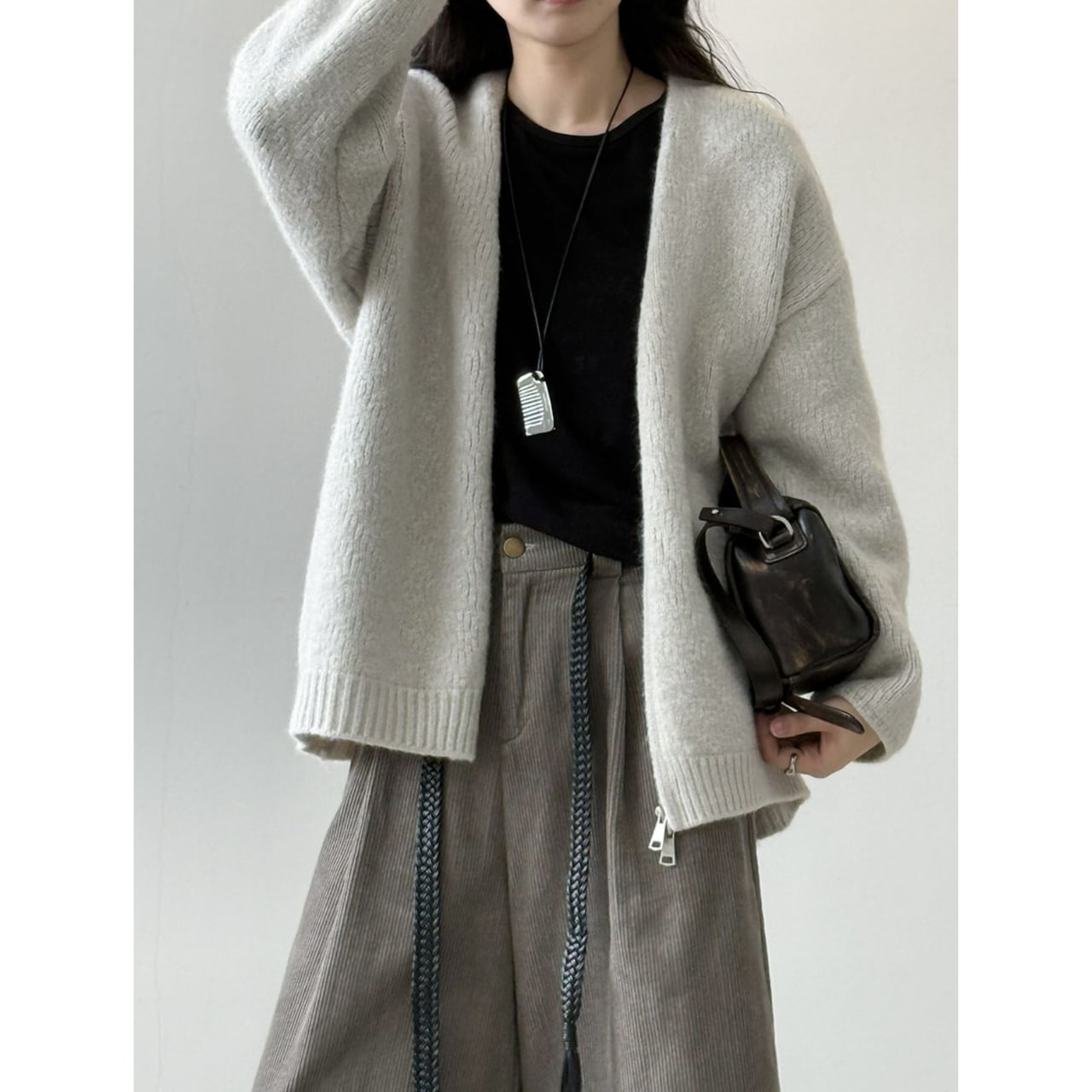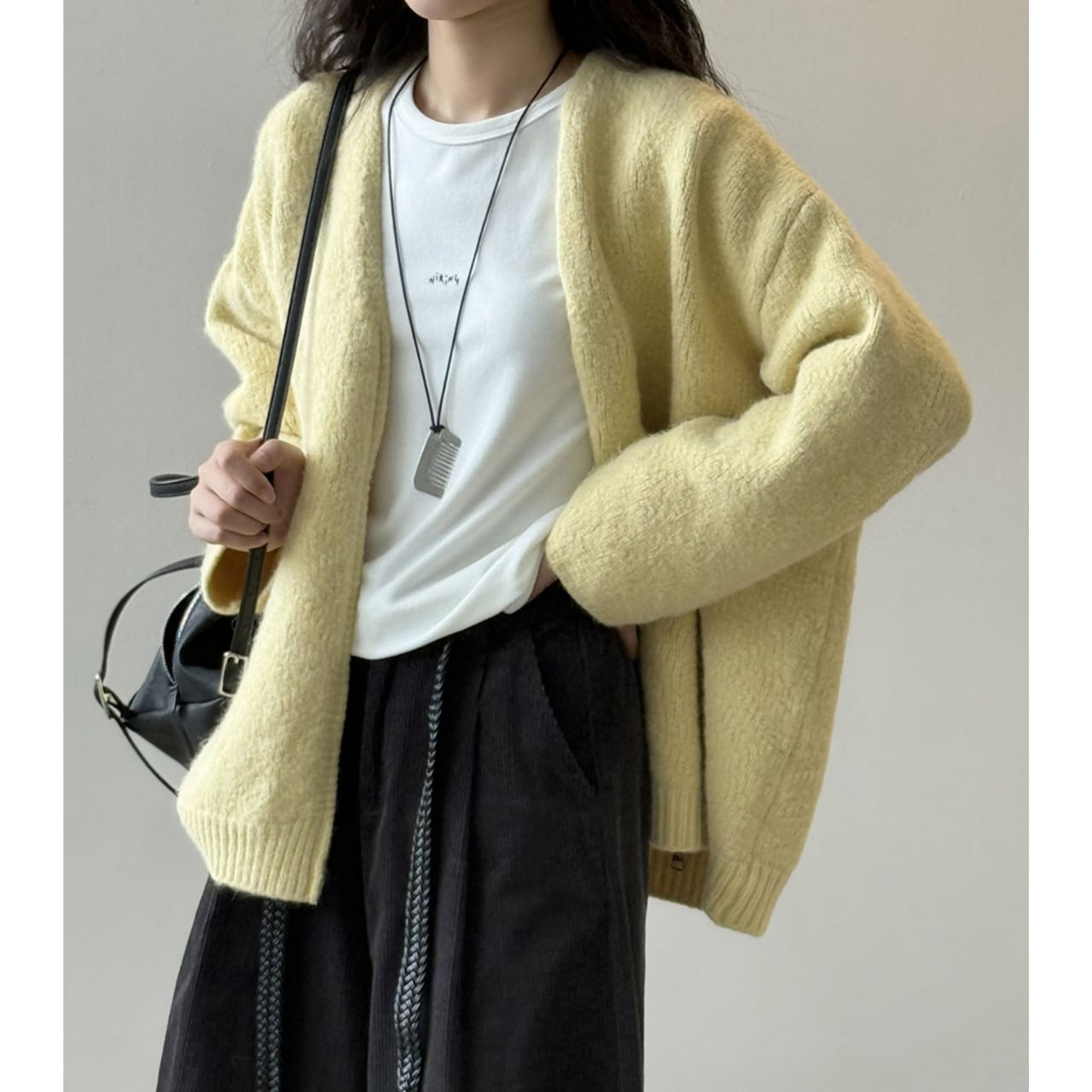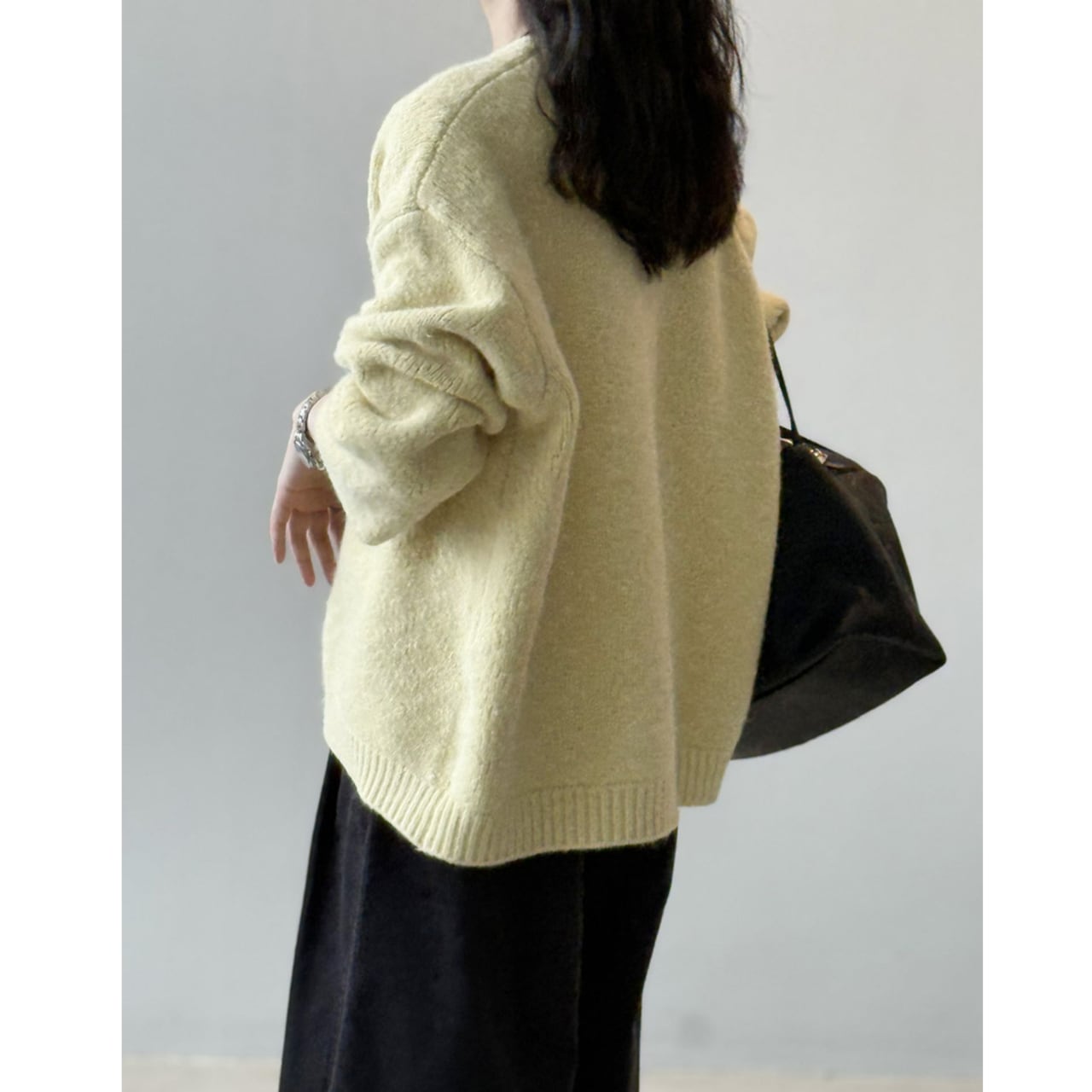 ゆったりとしたシルエットがこなれ感を演出し、リラックスした着心地を提供するカーディガン。