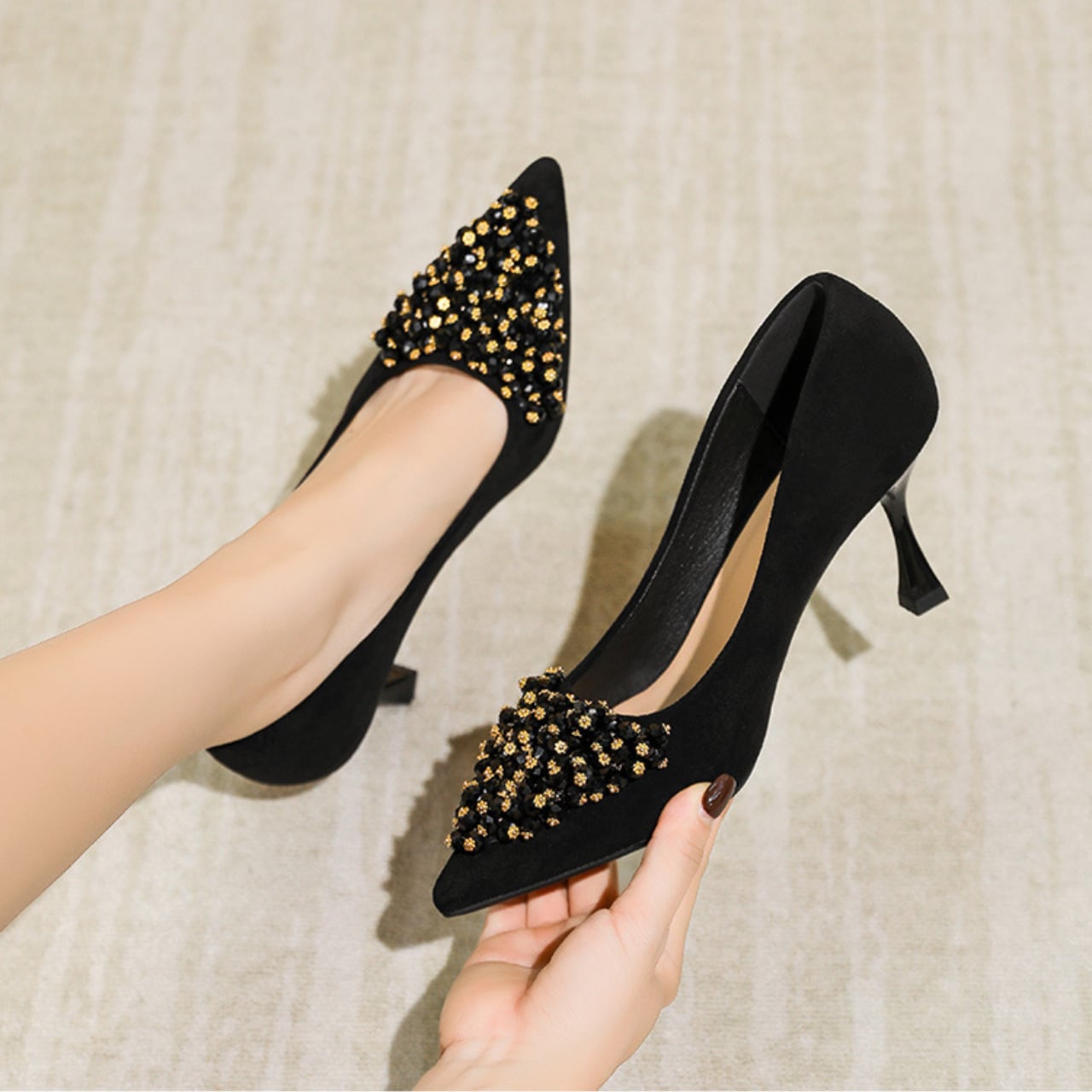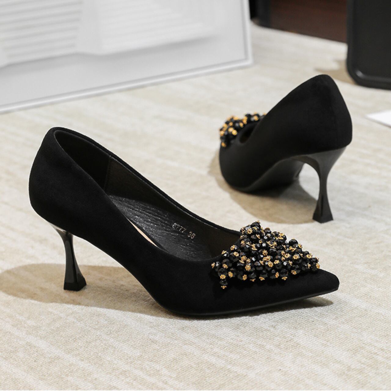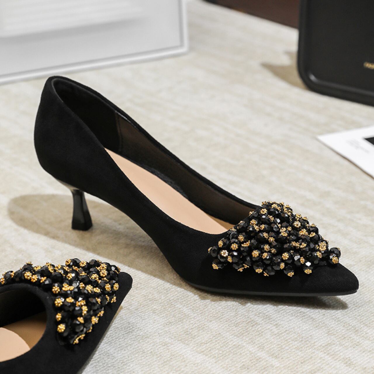 さりげないビーズの装飾が、普段のスタイルに華やかさをプラスします。