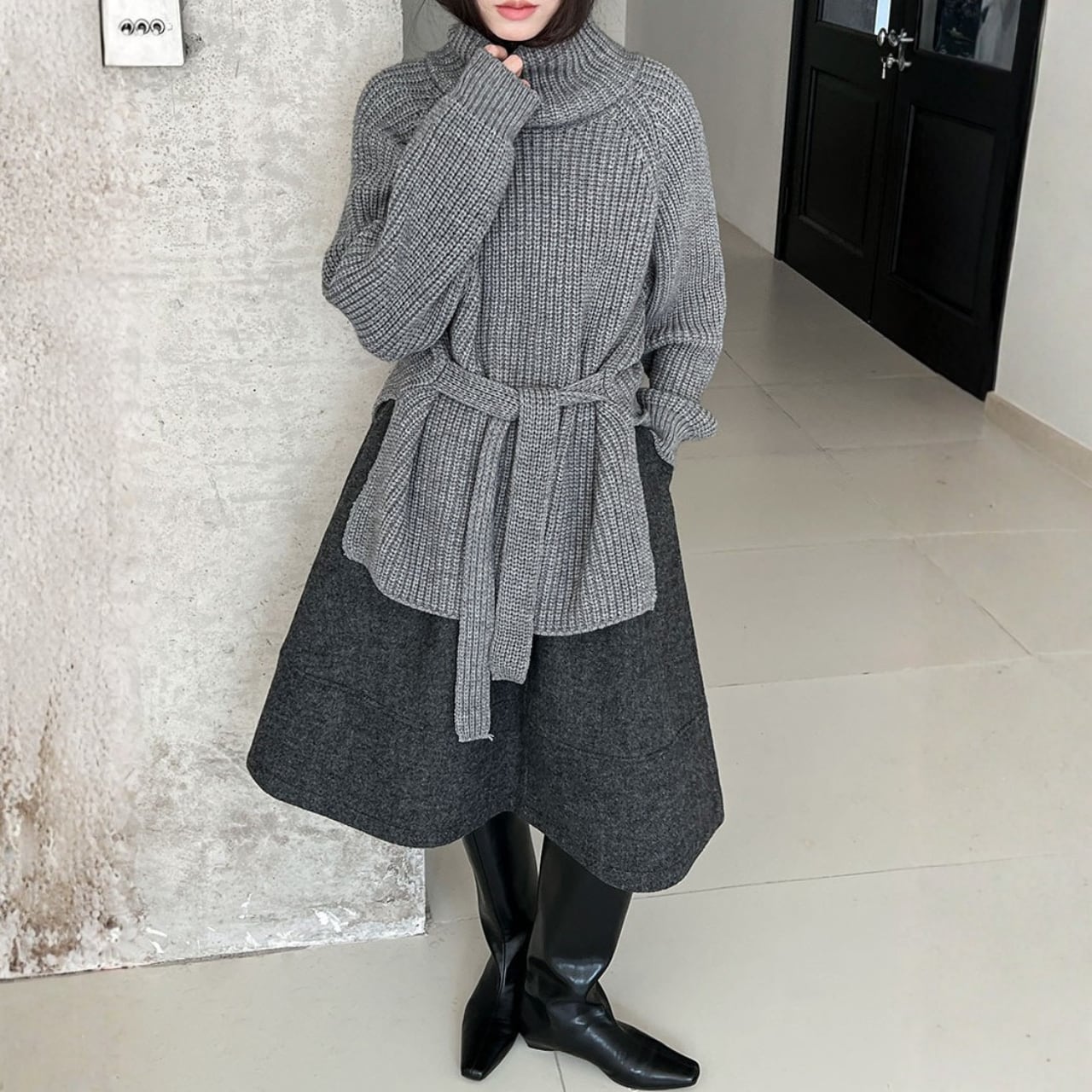 ベルトを締めれば、メリハリのあるシルエットに。