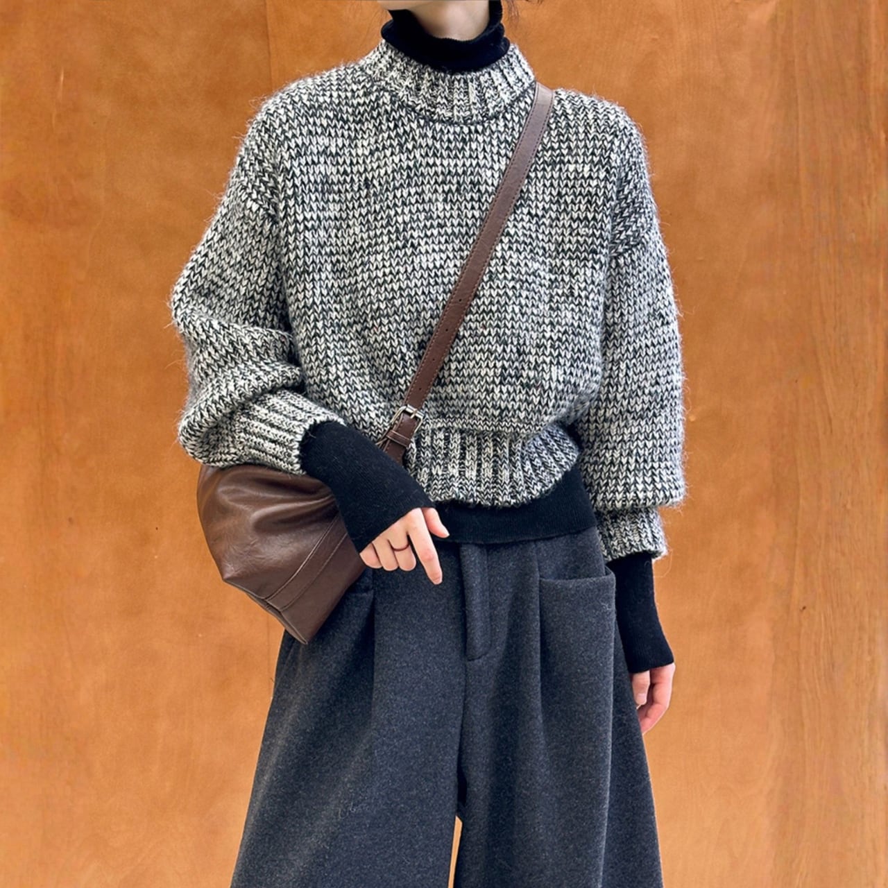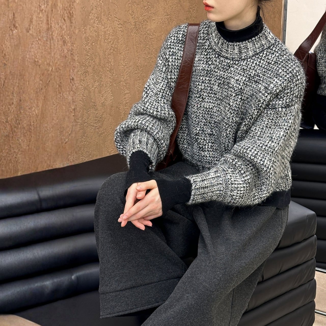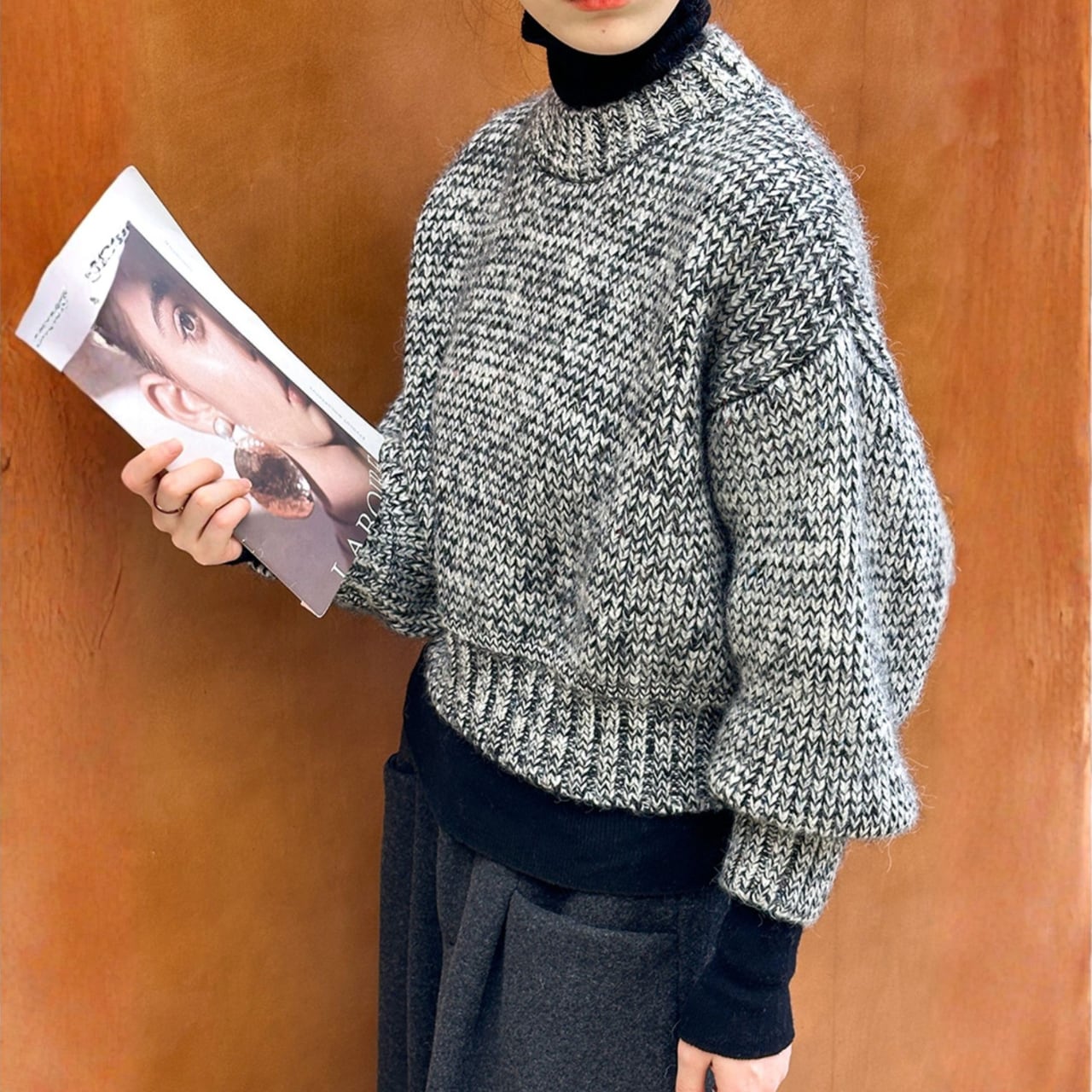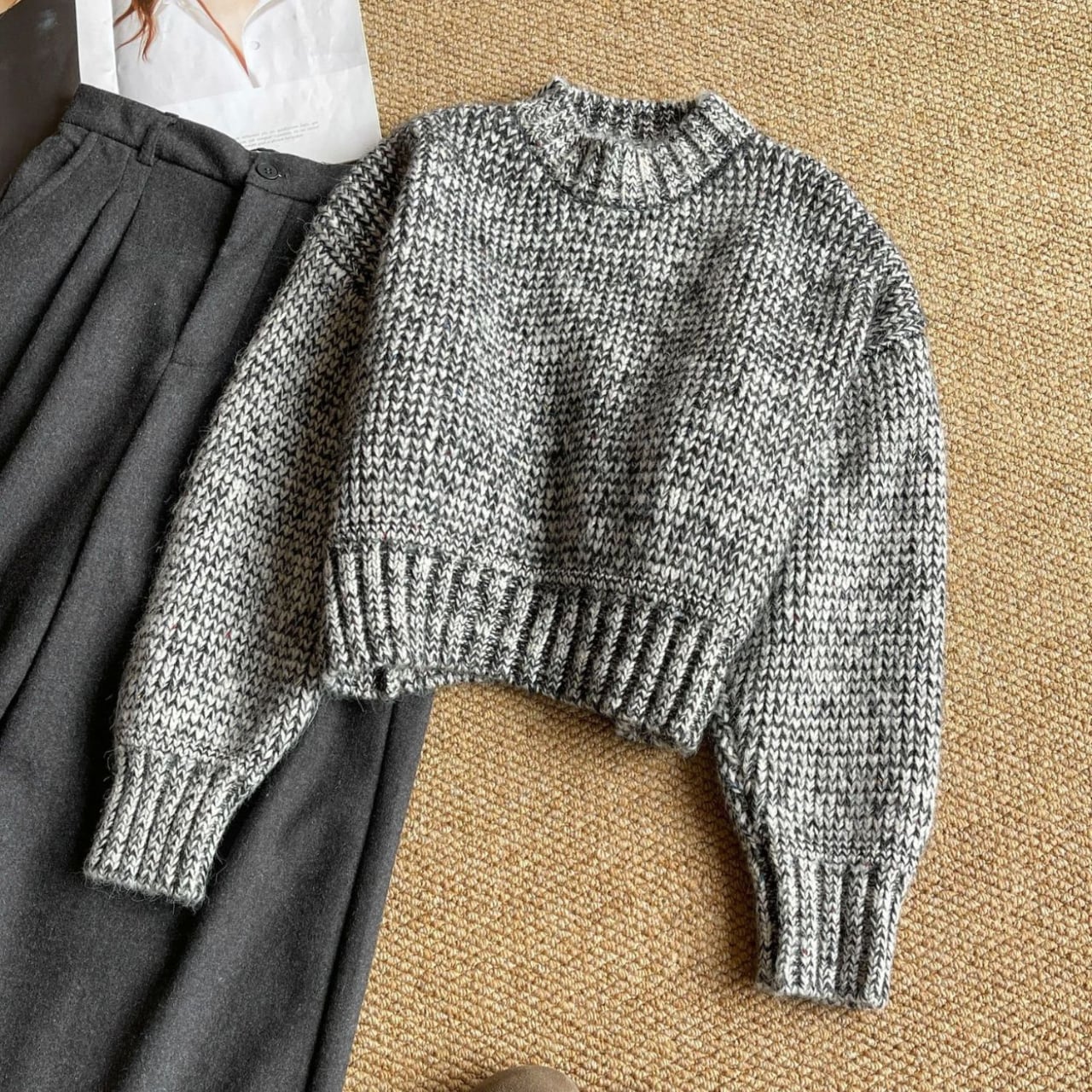 いつものコーディネートに新鮮さをプラスするクロップド丈ニット。