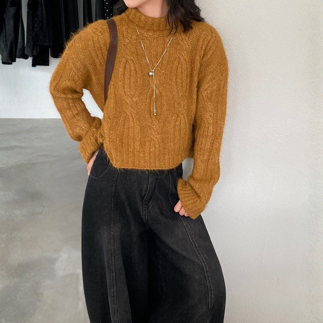 ショート丈 ケーブルニット N00215