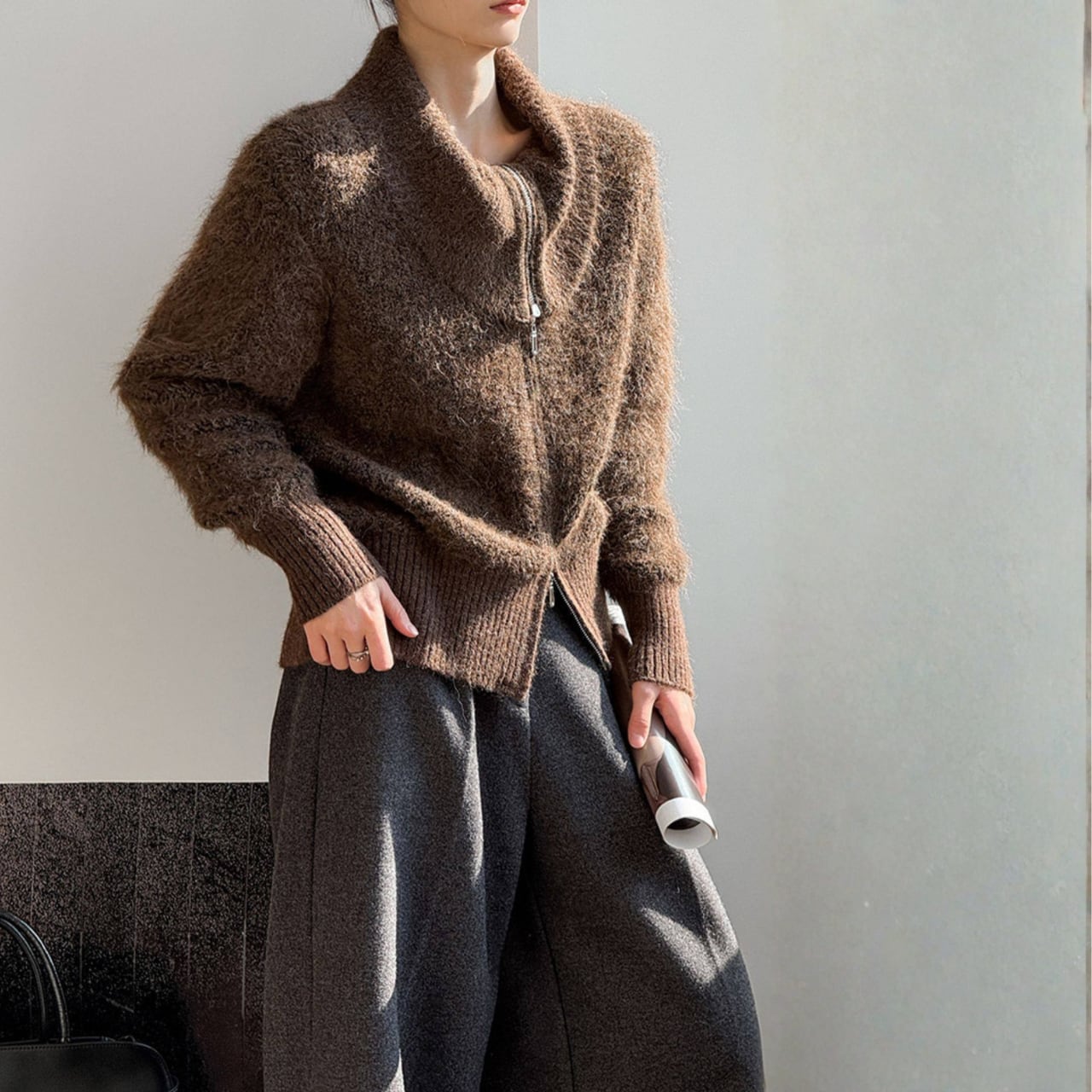 羽織るだけでコーディネートを格上げするニットカーディガン。