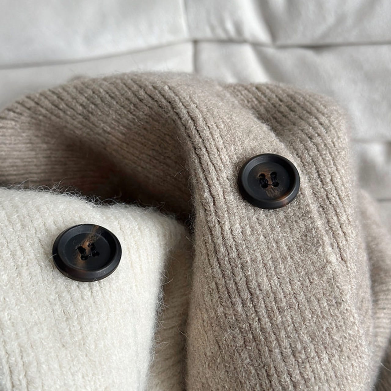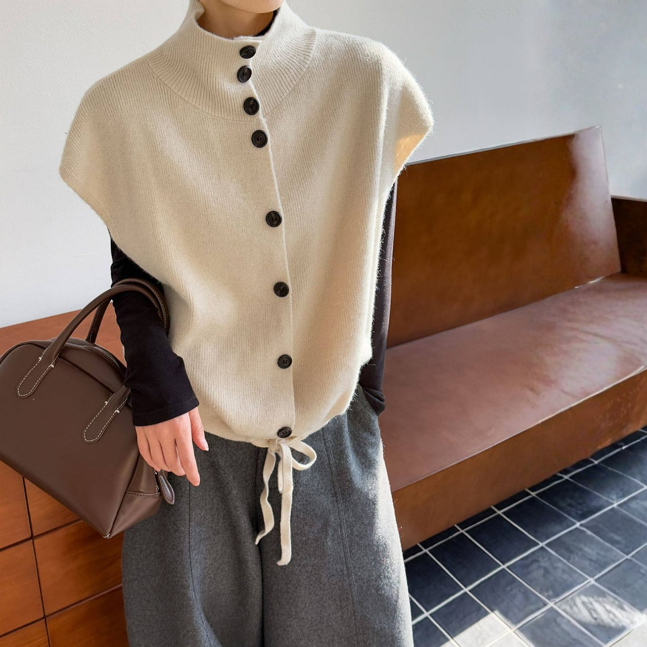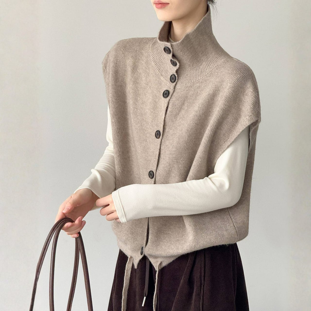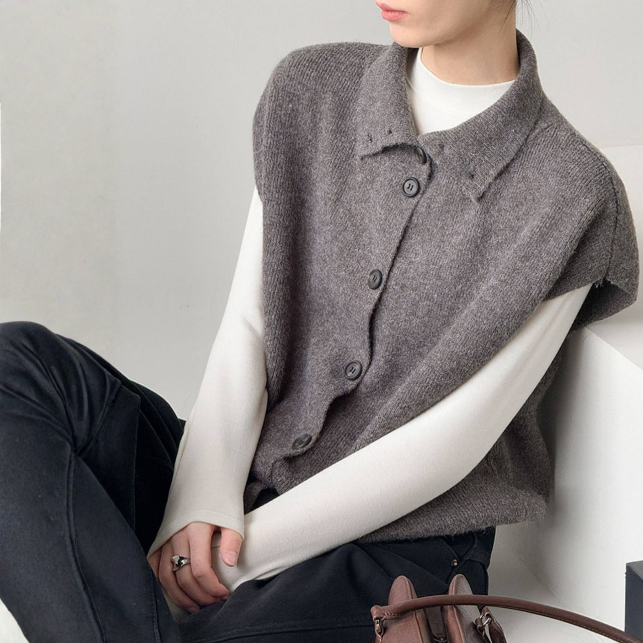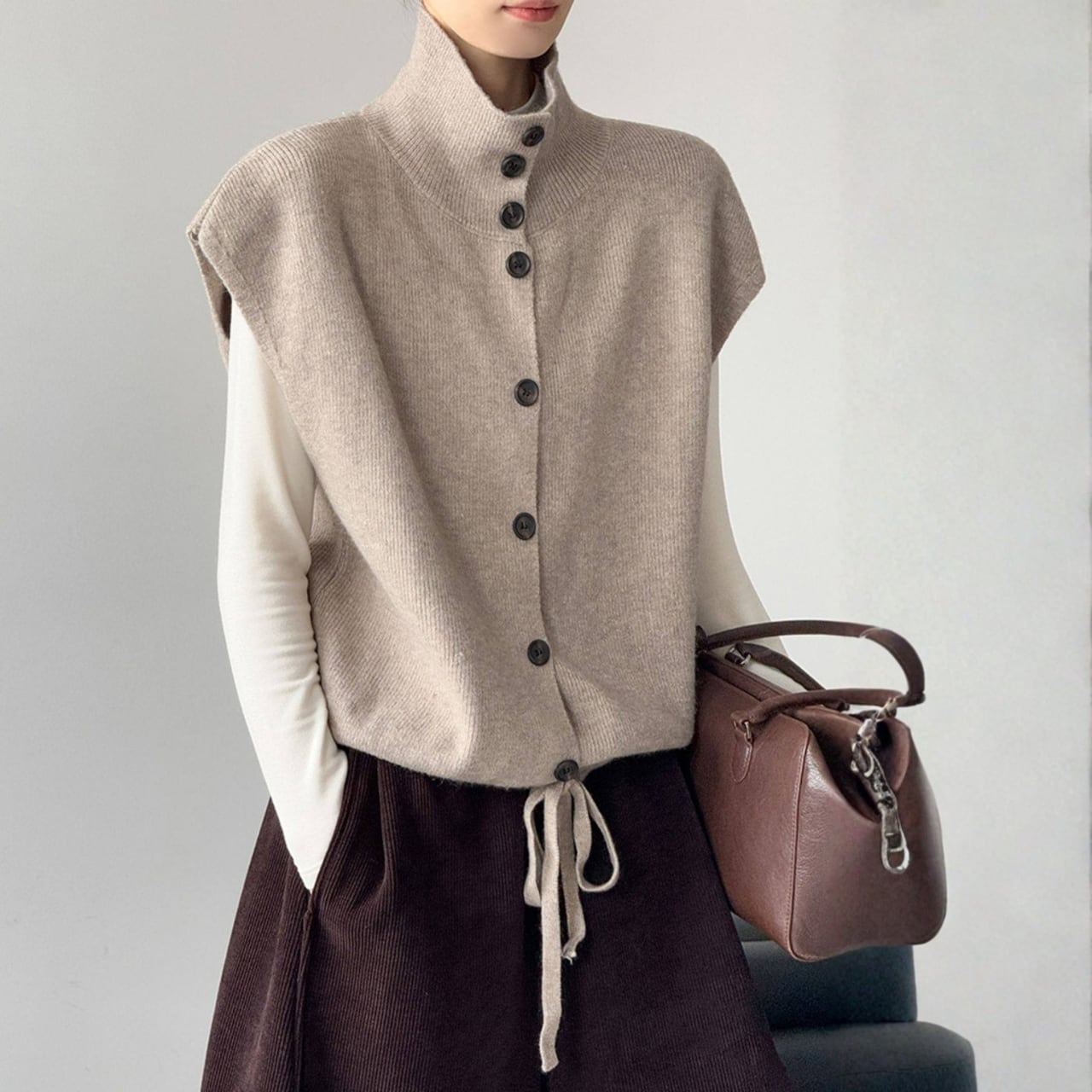 シャツやカットソーに重ねるだけで、コーディネートに奥行きが生まれ、洗練された印象に。