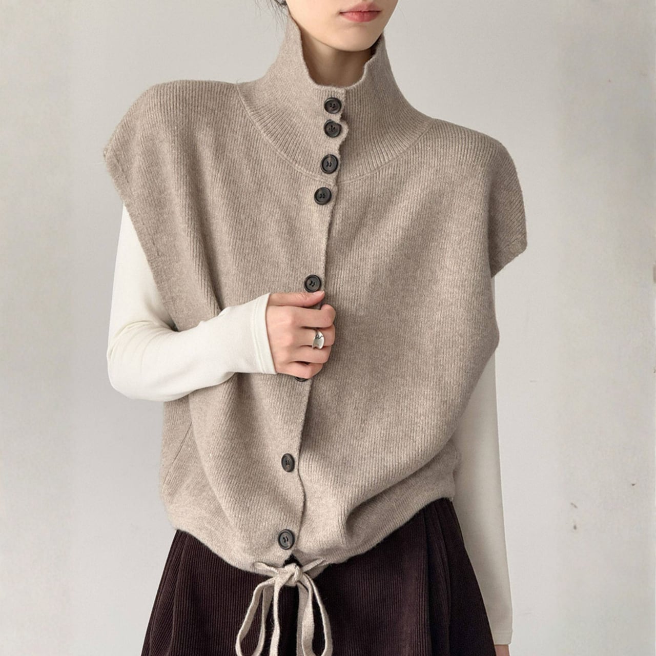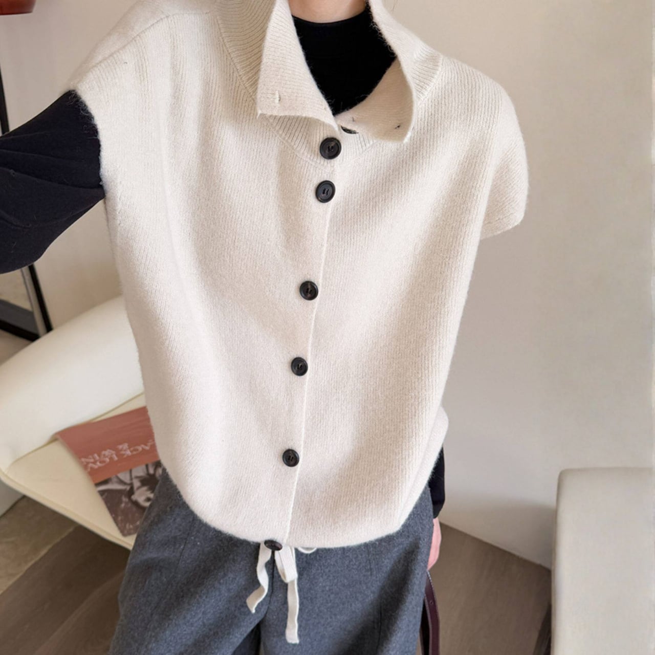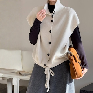 ボタンアップ ノースリーブニットベスト N00218