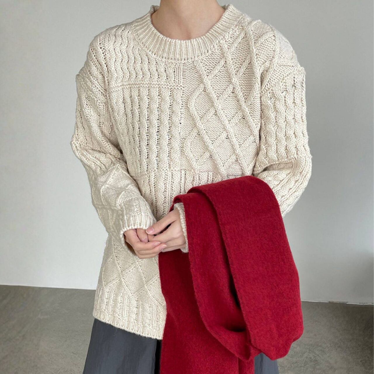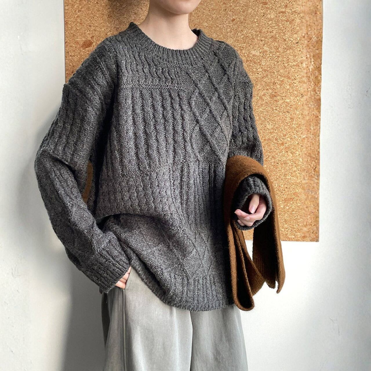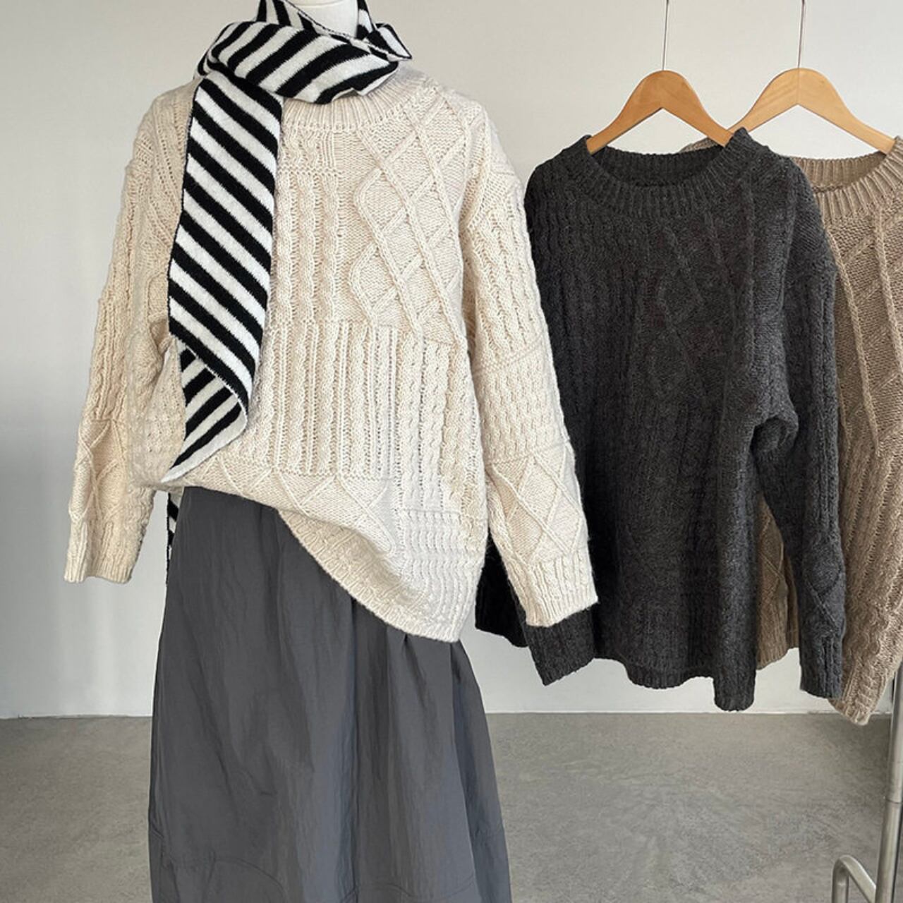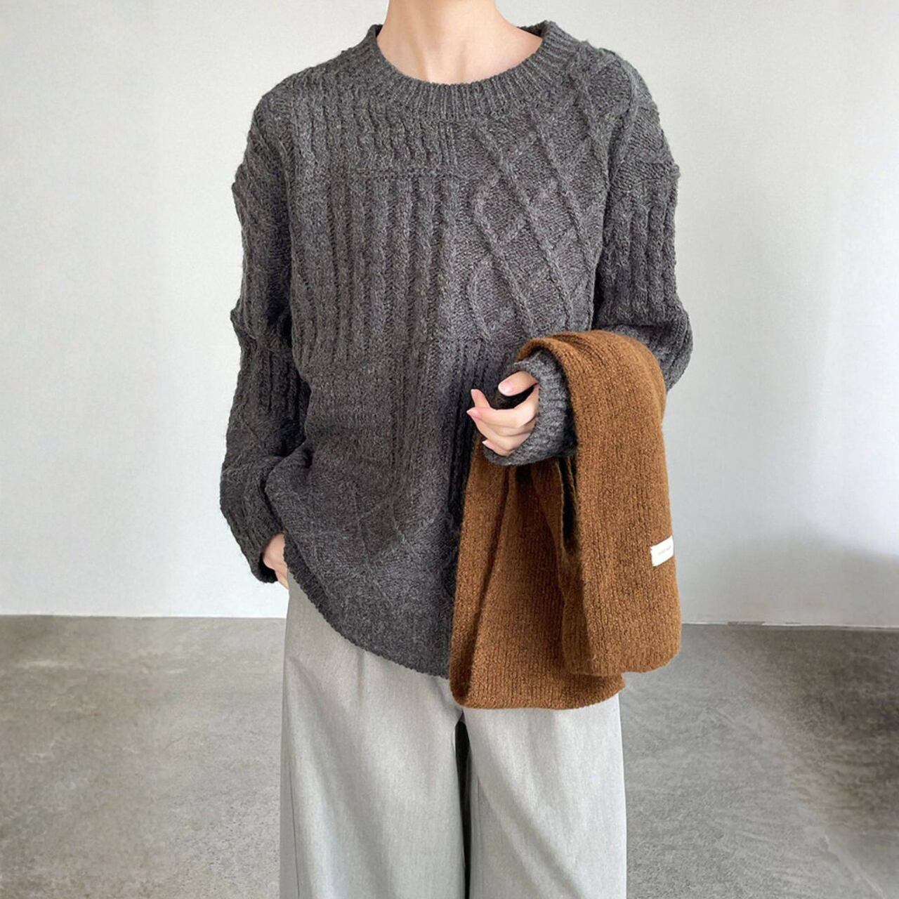 リラックス感漂うケーブルニット。